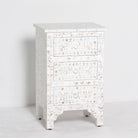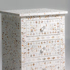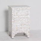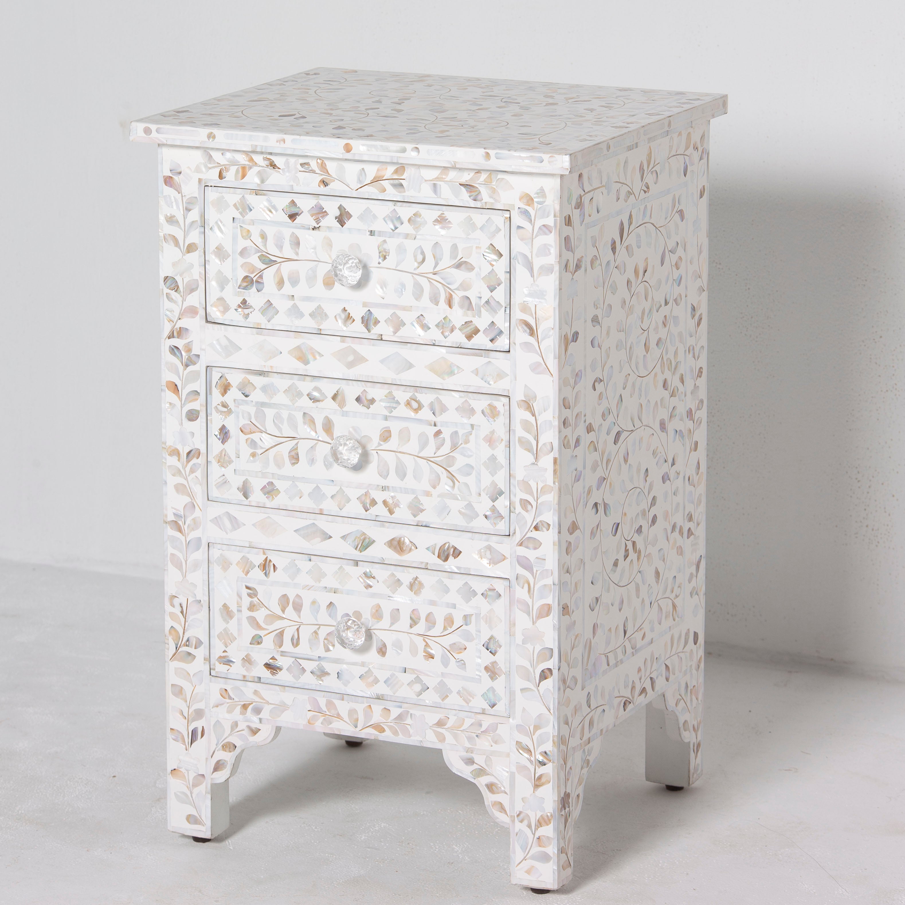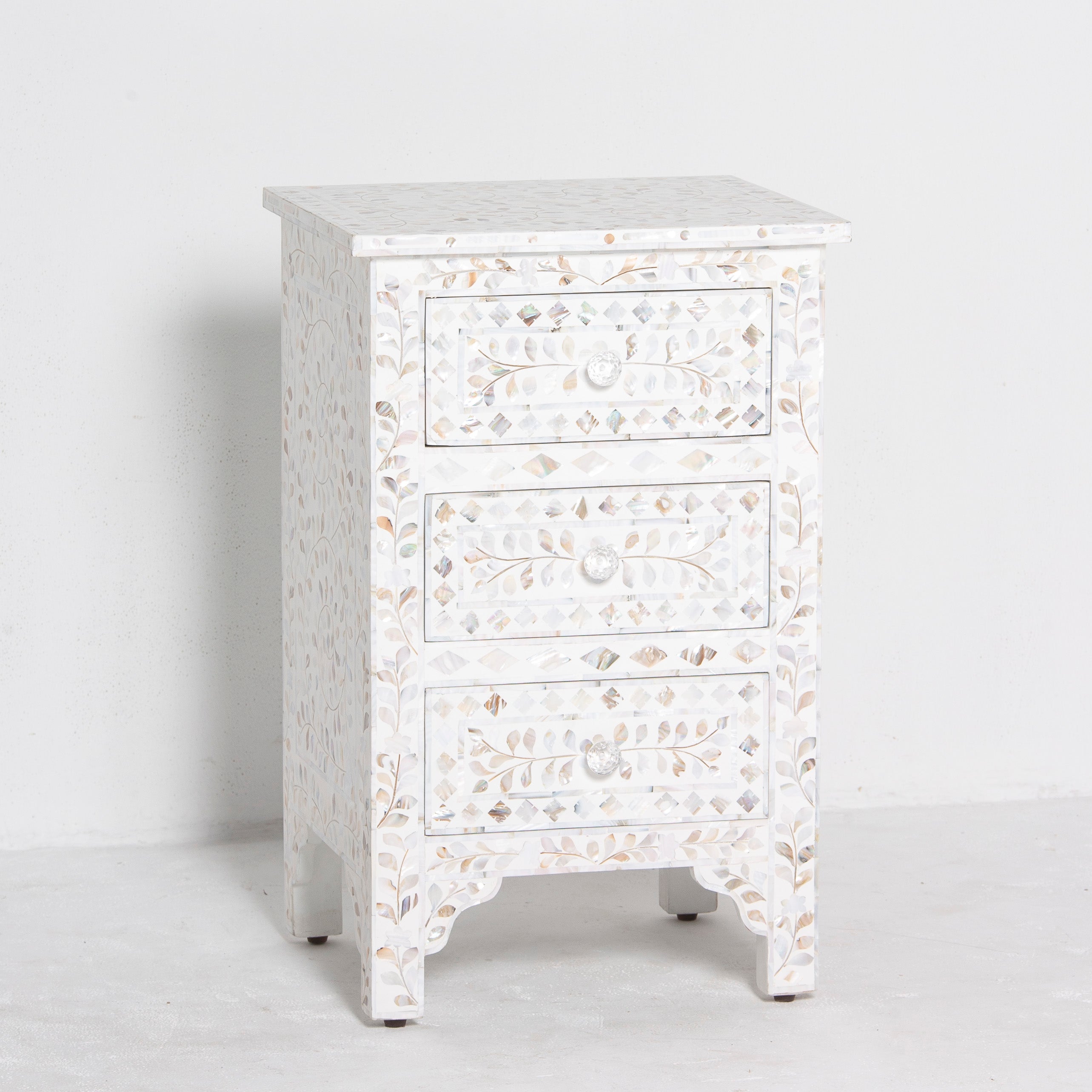 OCEAN PEARL WHITE THREE DRAWER BEDSIDE TABLE