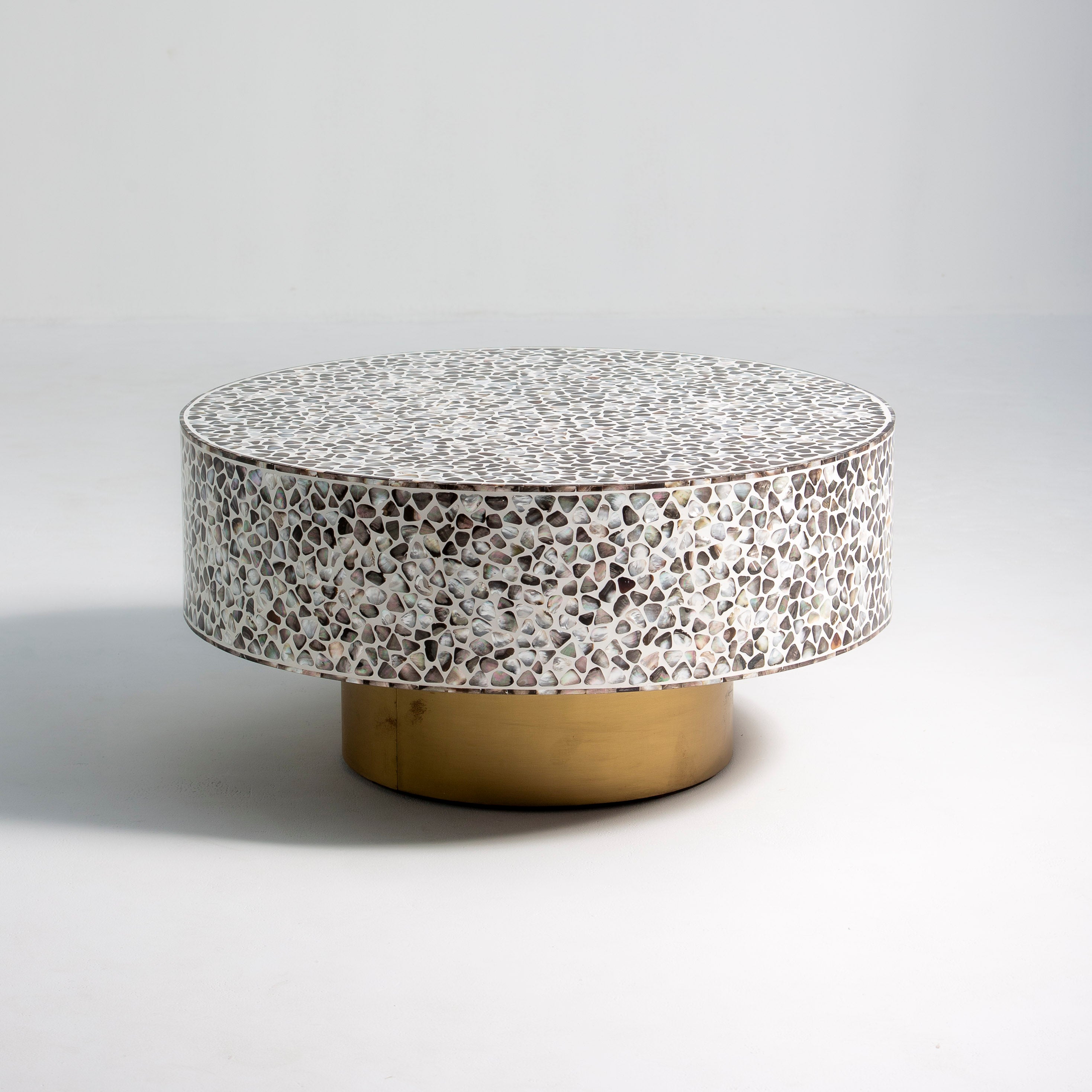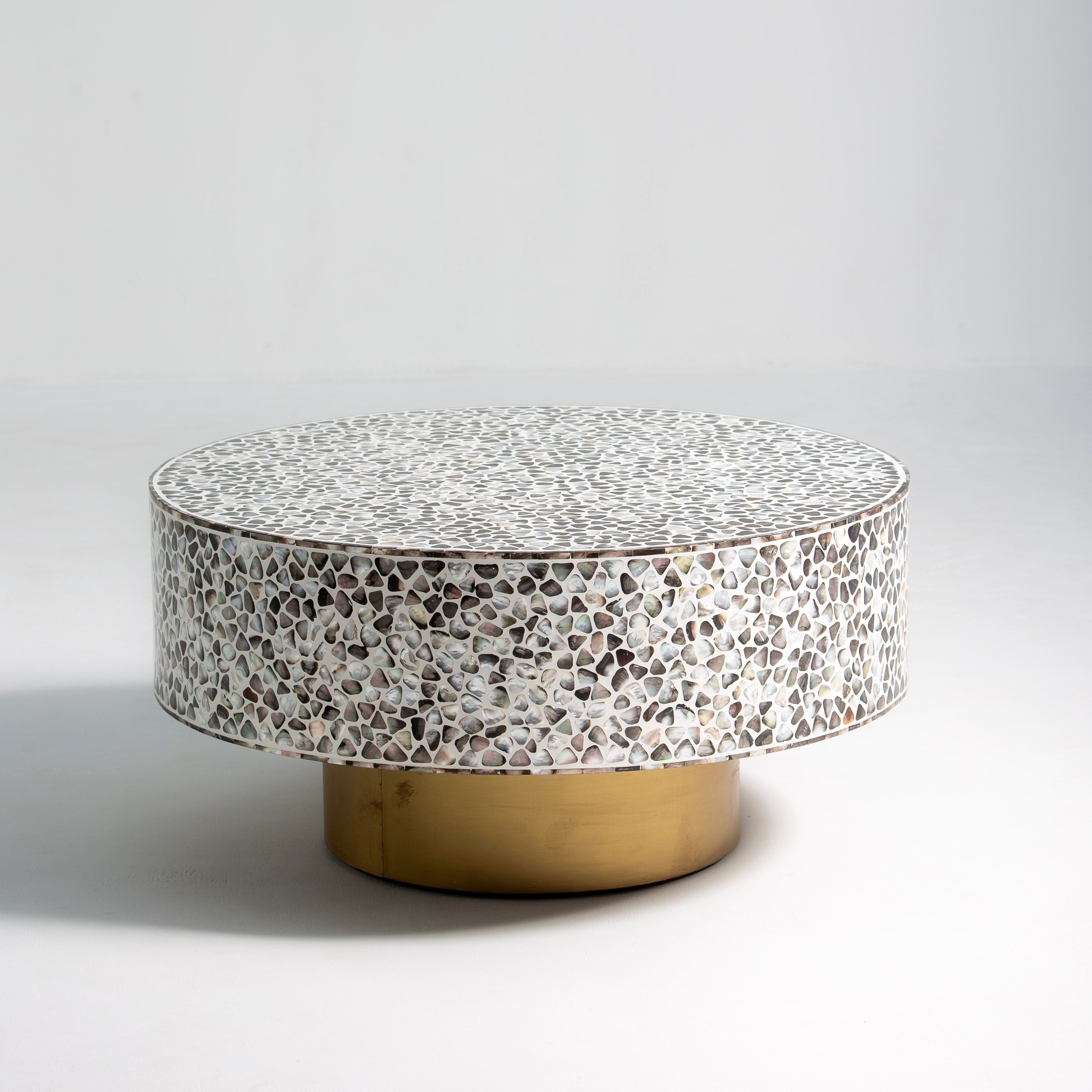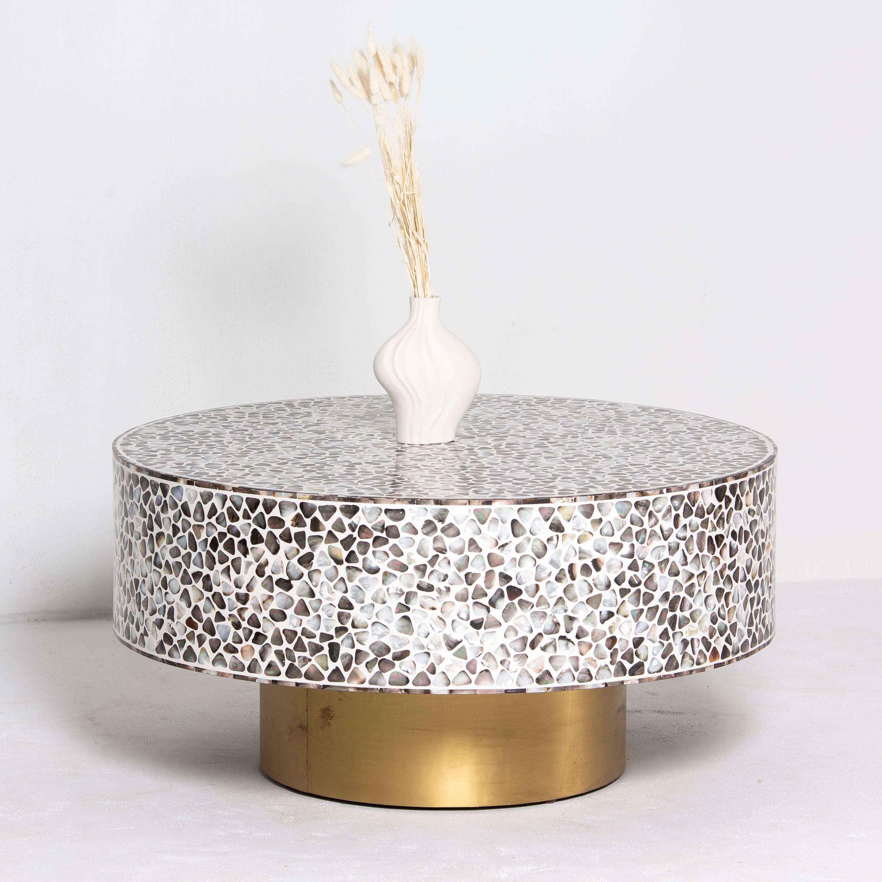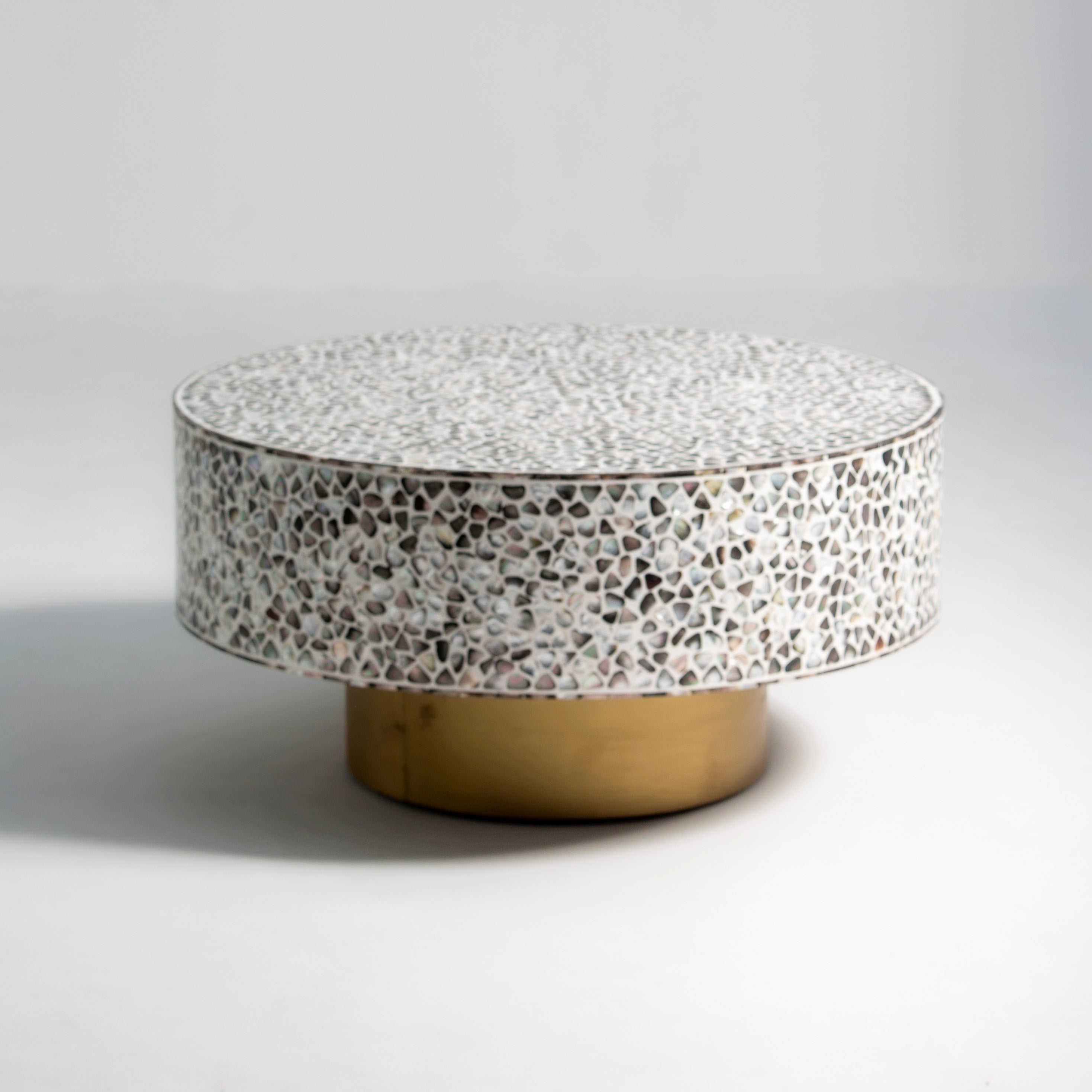 Illuminate your living space with this exquisite, handcrafted coffee table, where traditional Indian artistry meets timeless elegance. Each piece features intricate mother-of-pearl inlays set against a luminous white backdrop, creating mesmerizing patterns that catch the light beautifully. Meticulously crafted by skilled artisans, this functional work of art brings warmth and sophistication to any room. A stunning centerpiece that celebrates heritage craftsmanship and natural beauty.