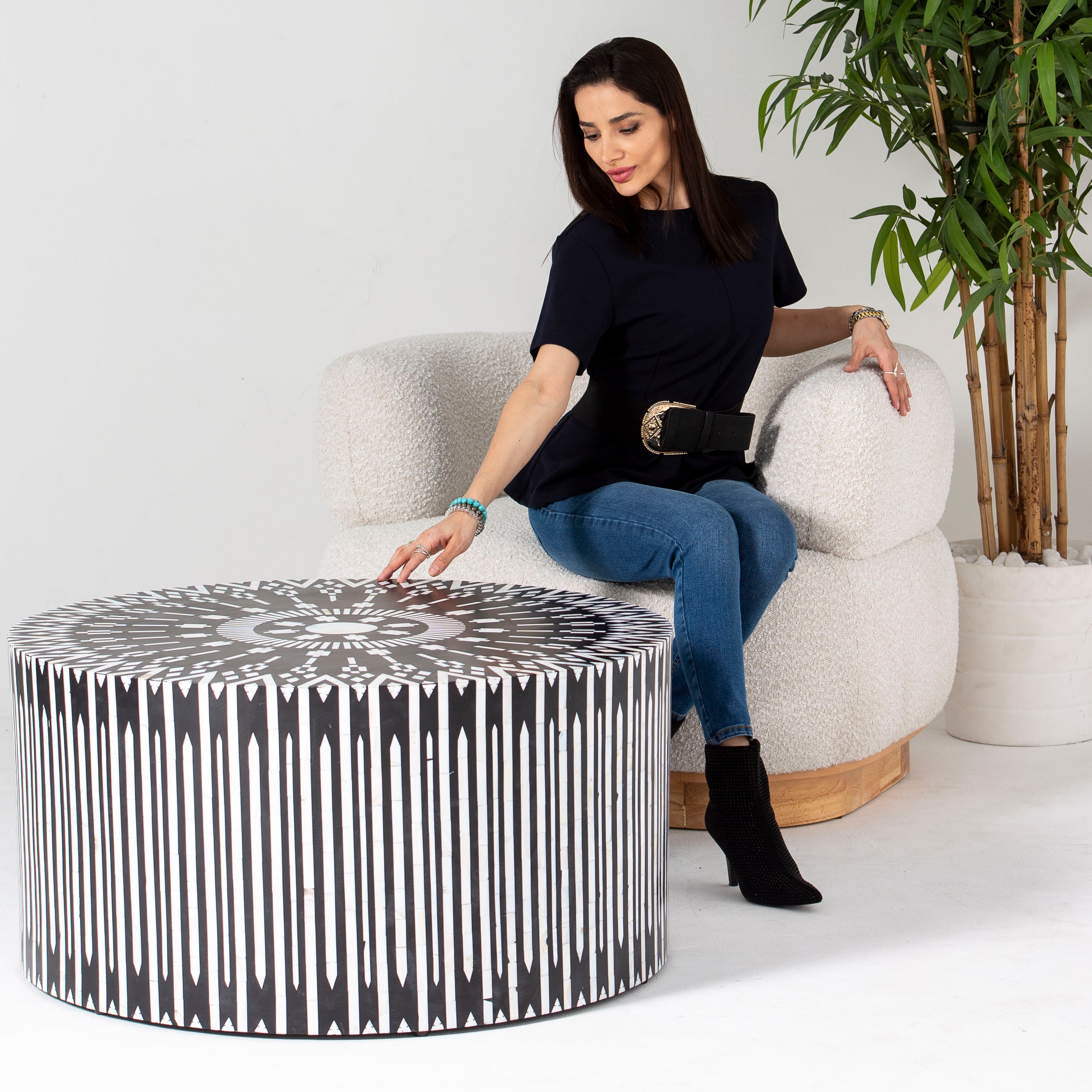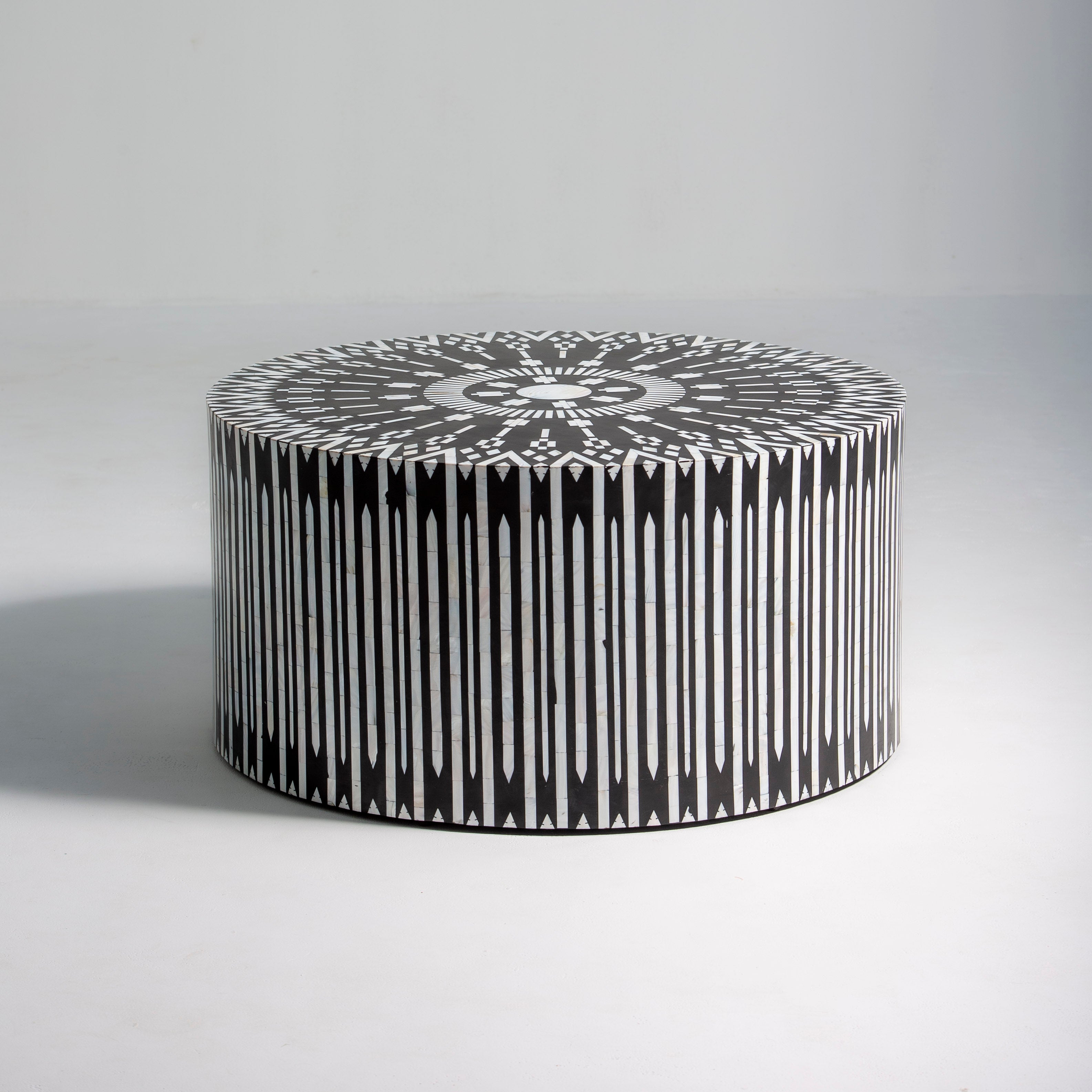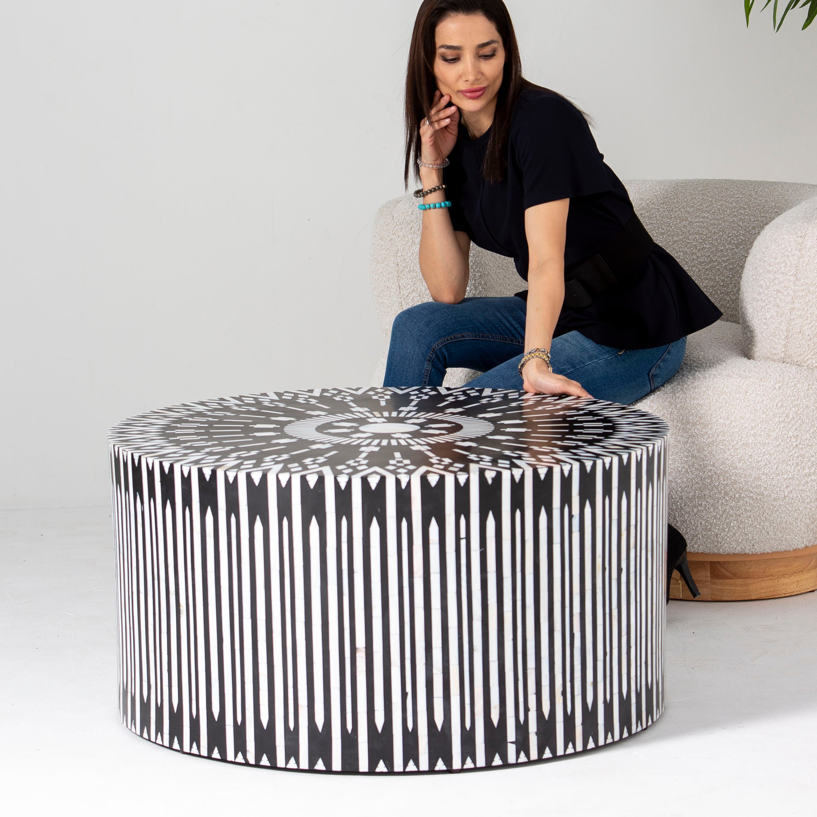 Crafted with meticulous attention to detail, this striking coffee table marries contemporary design with artisanal craftsmanship. The moonlit black finish creates a sophisticated focal point, while the distinctive strip mop detailing adds textural depth and visual intrigue. Perfect for those who appreciate furniture that tells a story, this piece elevates any living space with its unique character and refined aesthetic. A conversation starter that seamlessly blends form and function.