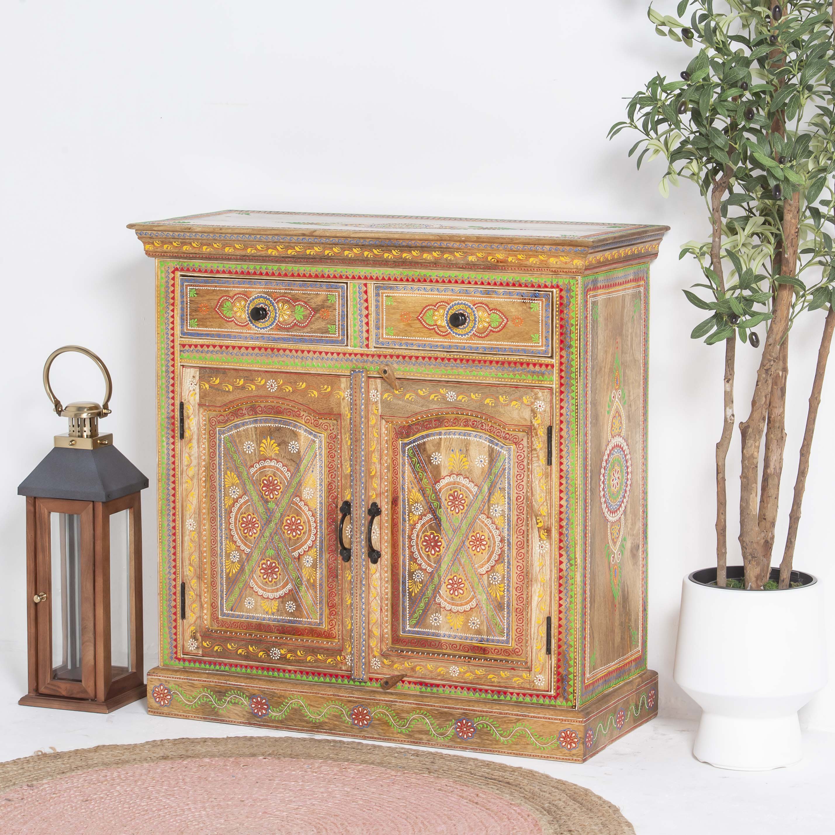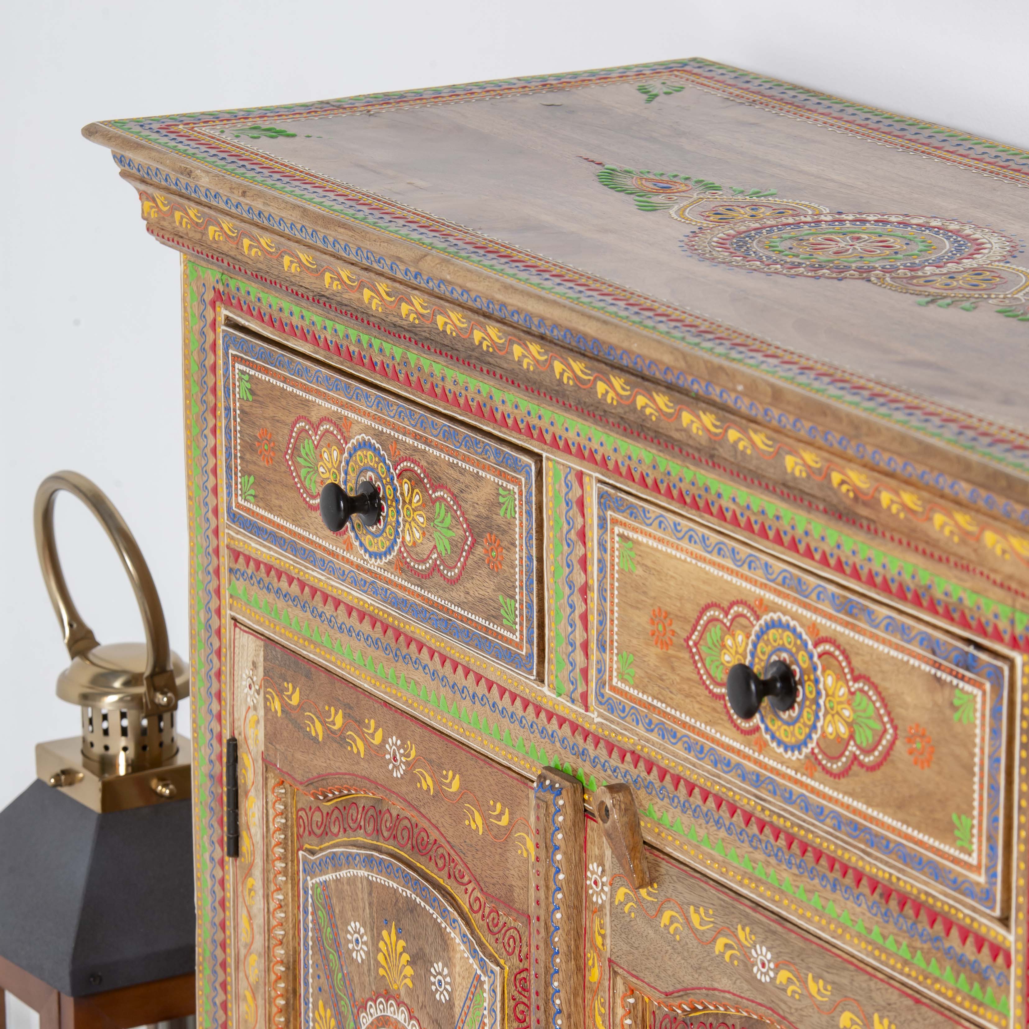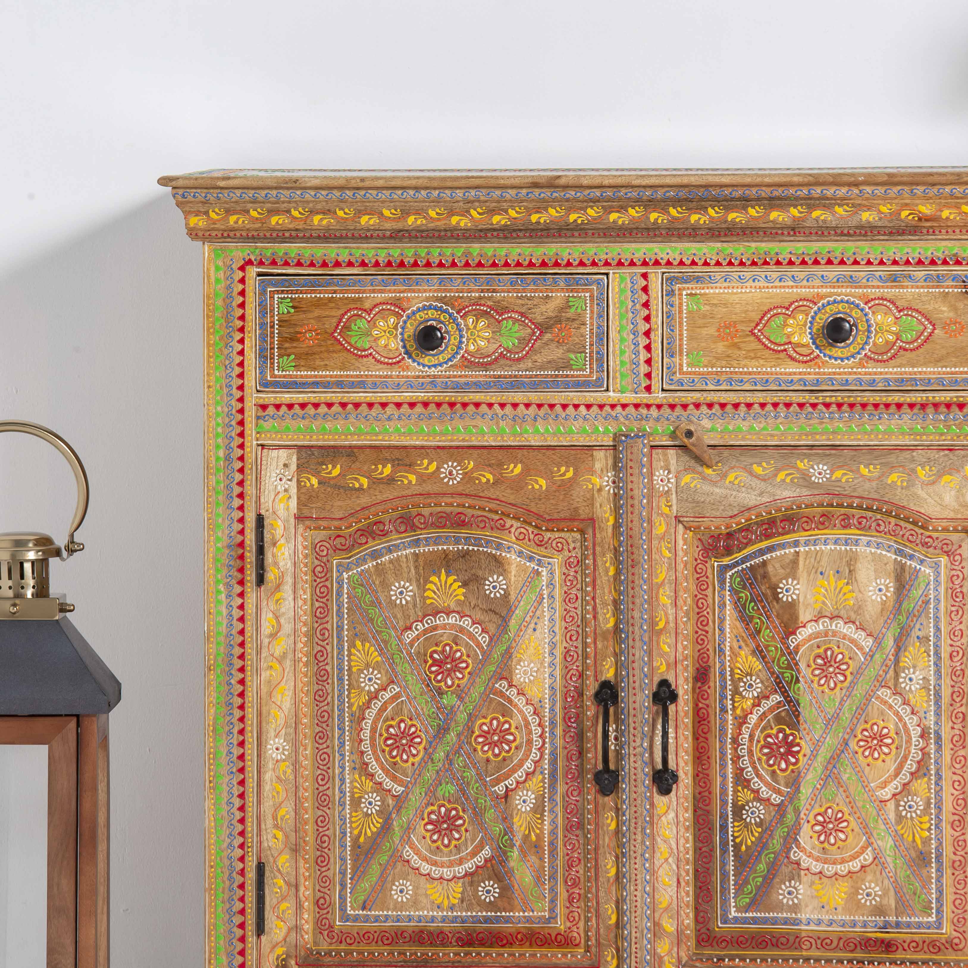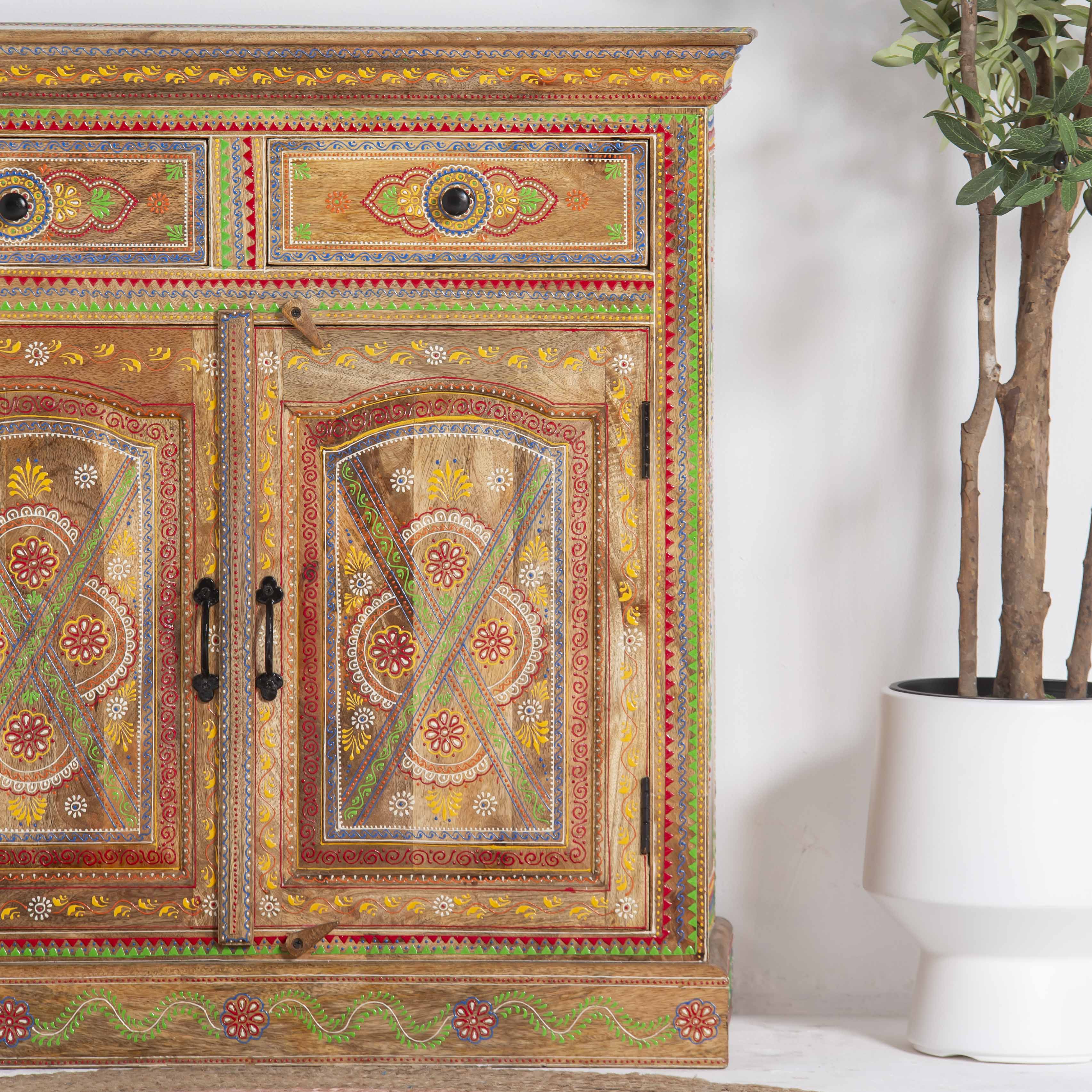 The ELMORA Painting Wooden Sideboard brings handcrafted elegance to your living space. This artisanal piece features carefully painted wooden surfaces that showcase traditional craftsmanship and artistic detail. With its generous storage capacity and distinctive painted finish, it serves as both a functional storage solution and a striking focal point. Perfect for those who appreciate unique, handmade furniture that tells a story. Each sideboard reflects the care and skill of its makers, making it an ideal choice for collectors of authentic, artisan-crafted home furnishings.