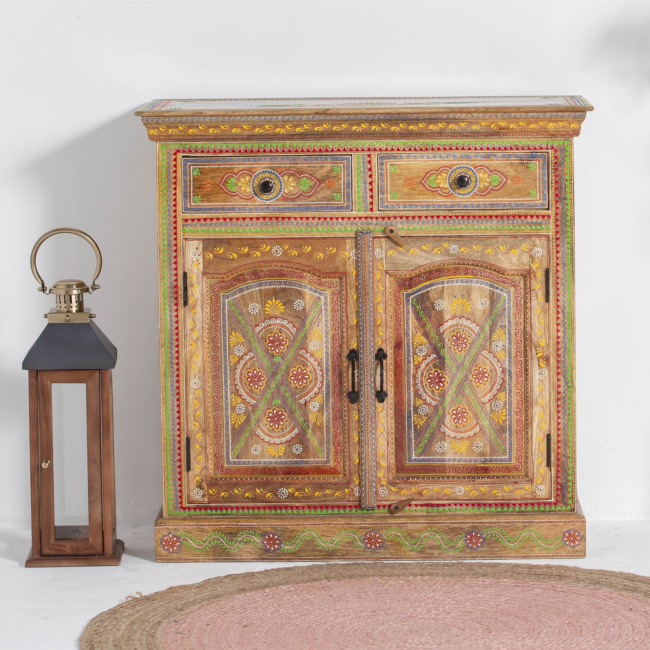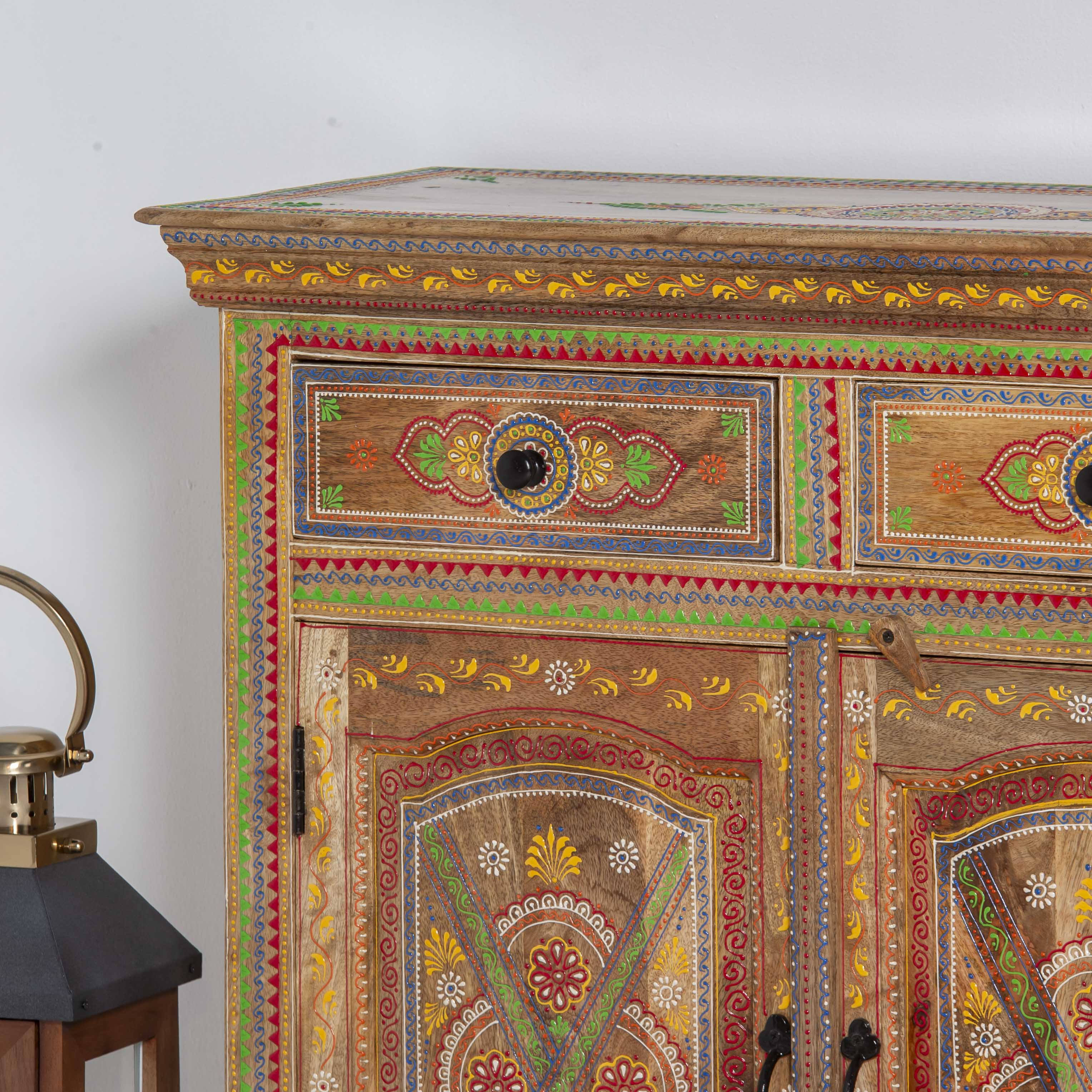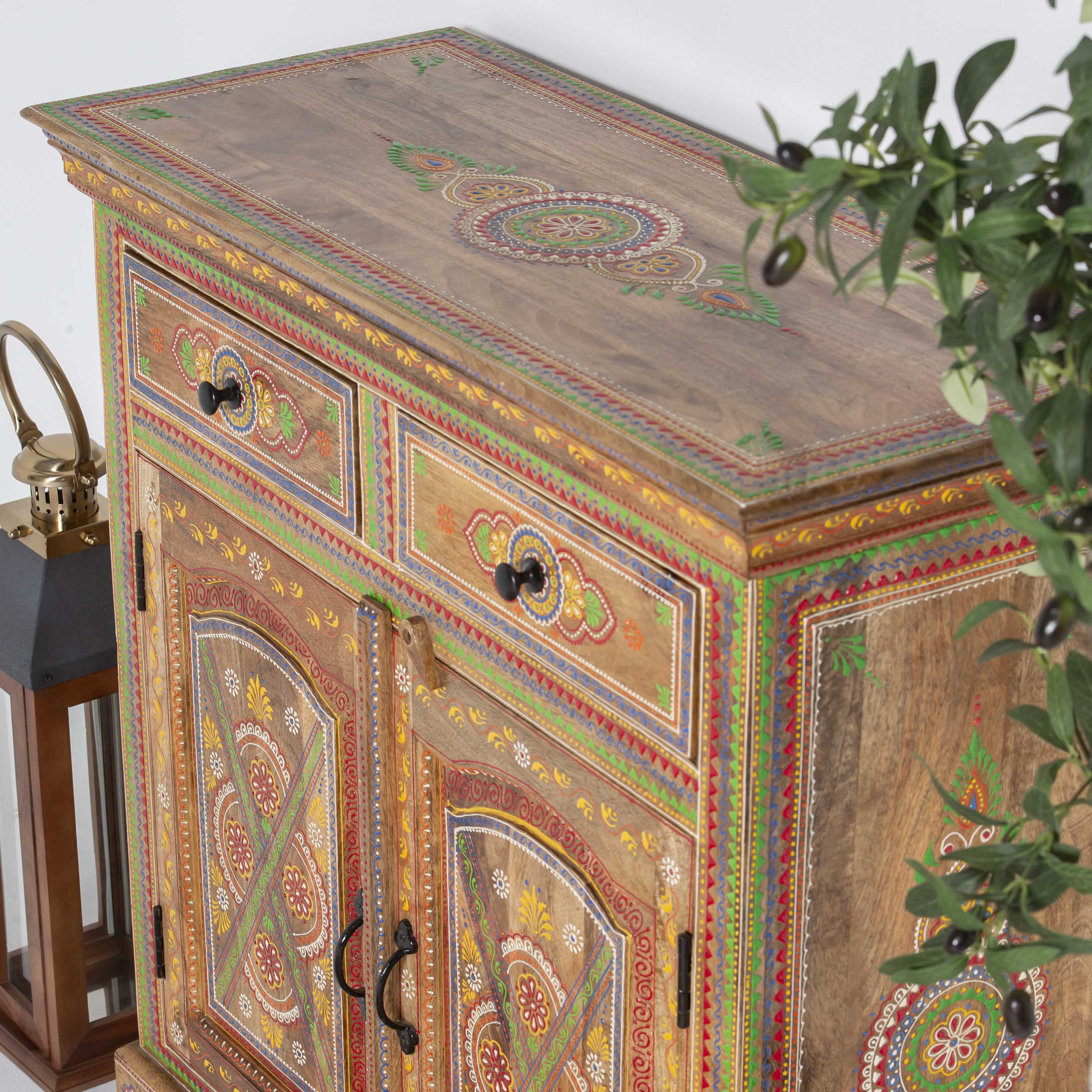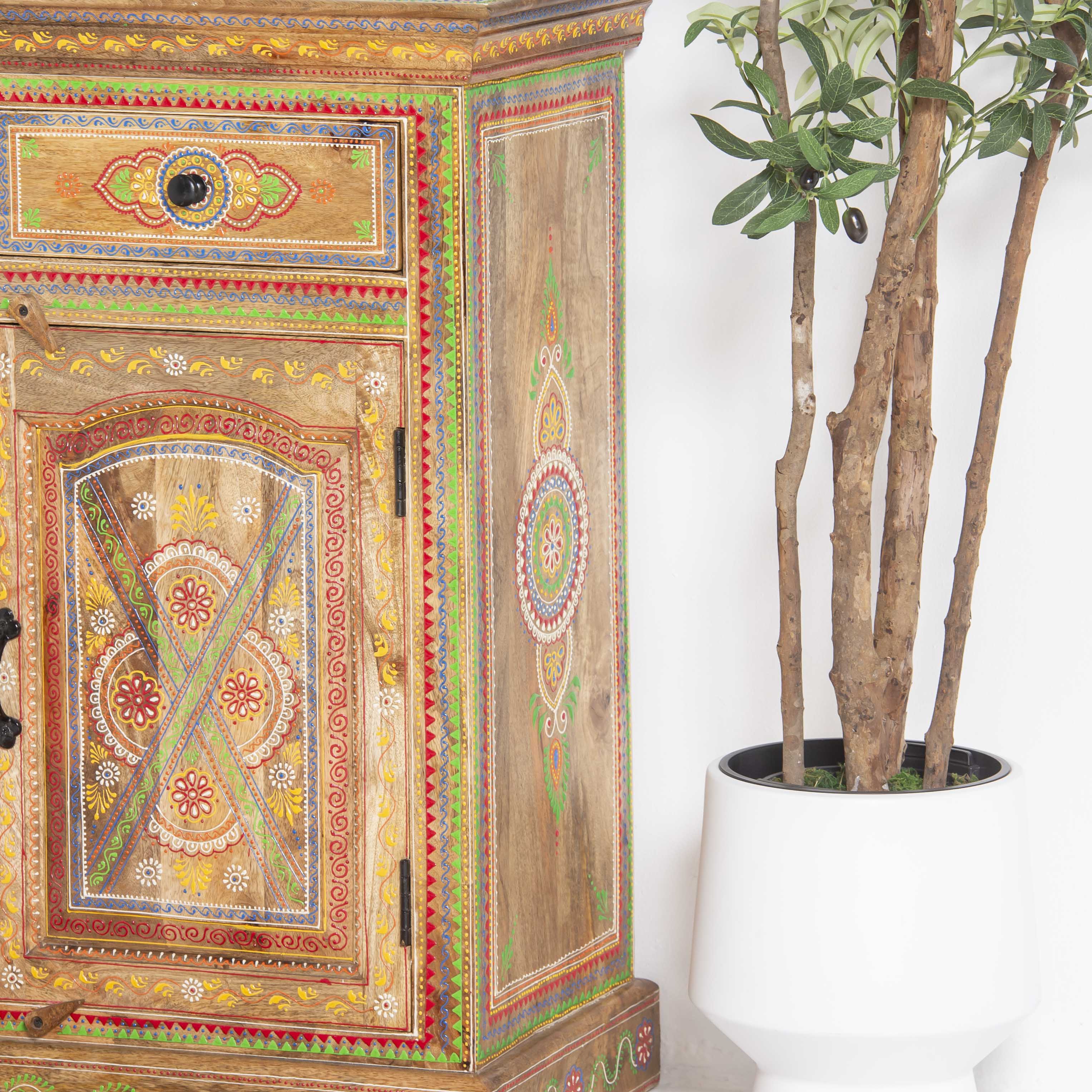 The ELMORA Painting Wooden Sideboard brings handcrafted elegance to your living space. This artisanal piece features carefully painted wooden surfaces that showcase traditional craftsmanship and artistic detail. With its generous storage capacity and distinctive painted finish, it serves as both a functional storage solution and a striking focal point. Perfect for those who appreciate unique, handmade furniture that tells a story. Each sideboard reflects the care and skill of its makers, making it an ideal choice for collectors of authentic, artisan-crafted home furnishings.