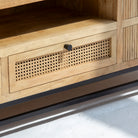 The LUWIN WDN Four Drawer Two Cane Drawer TV Stand combines traditional craftsmanship with functional design. Handcrafted from solid mango wood in India, this piece features four spacious drawers and two elegant cane-accented drawers, offering ample storage for media equipment and home essentials. The warm, natural wood tones and mixed materials create visual interest while the sturdy construction ensures lasting durability. Perfect for living rooms seeking both style and practical organization.