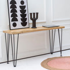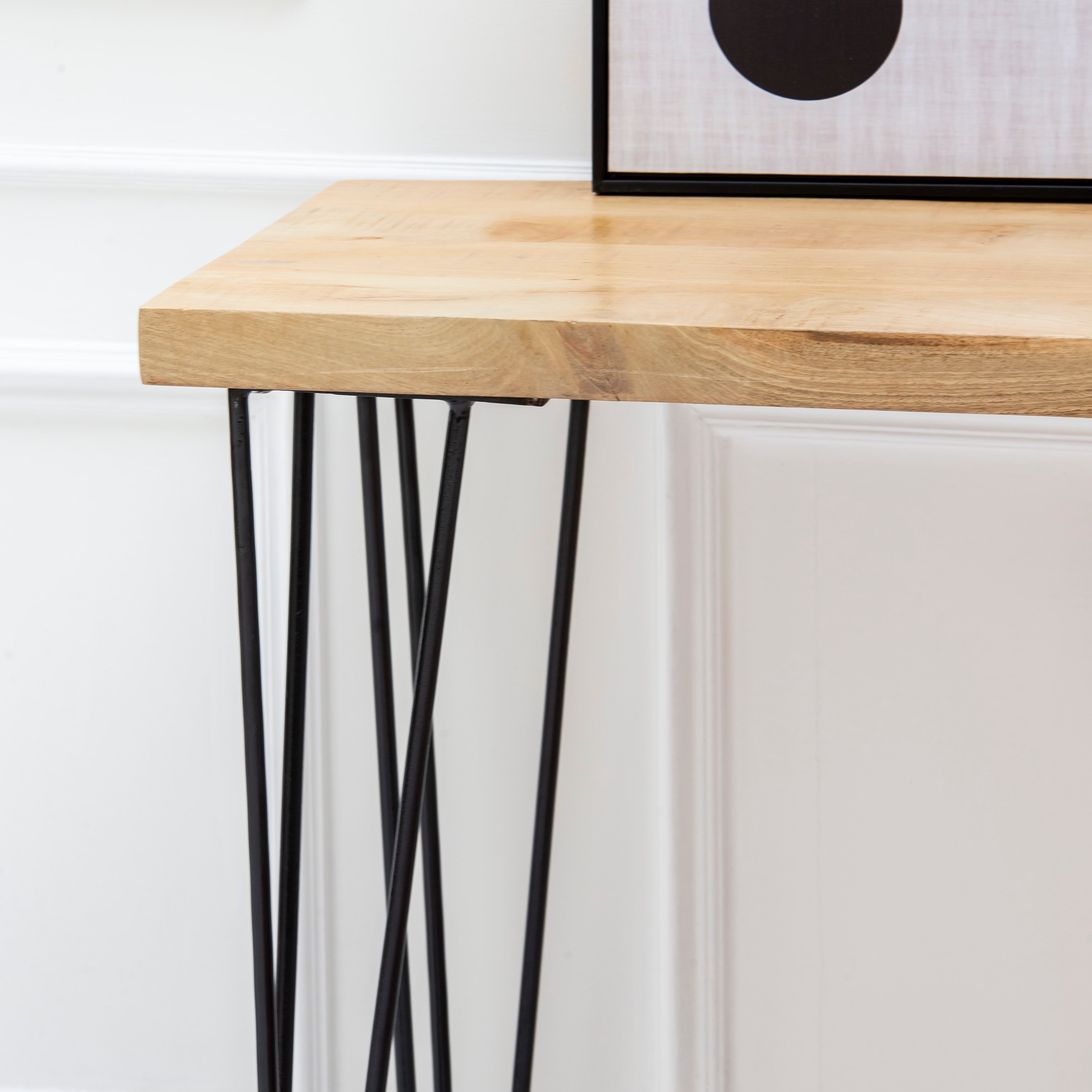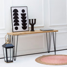 Handcrafted from solid mango wood sourced in India, this striking console table marries rustic charm with contemporary design. The distinctive U-shaped frame and V-shaped legs create an architectural silhouette that commands attention in any entryway or living space. Each piece celebrates the natural grain and warm tones inherent to mango wood, making it a conversation starter that reflects both artisanal craftsmanship and sustainable design. Perfect for displaying treasured objects or anchoring your décor with understated elegance.