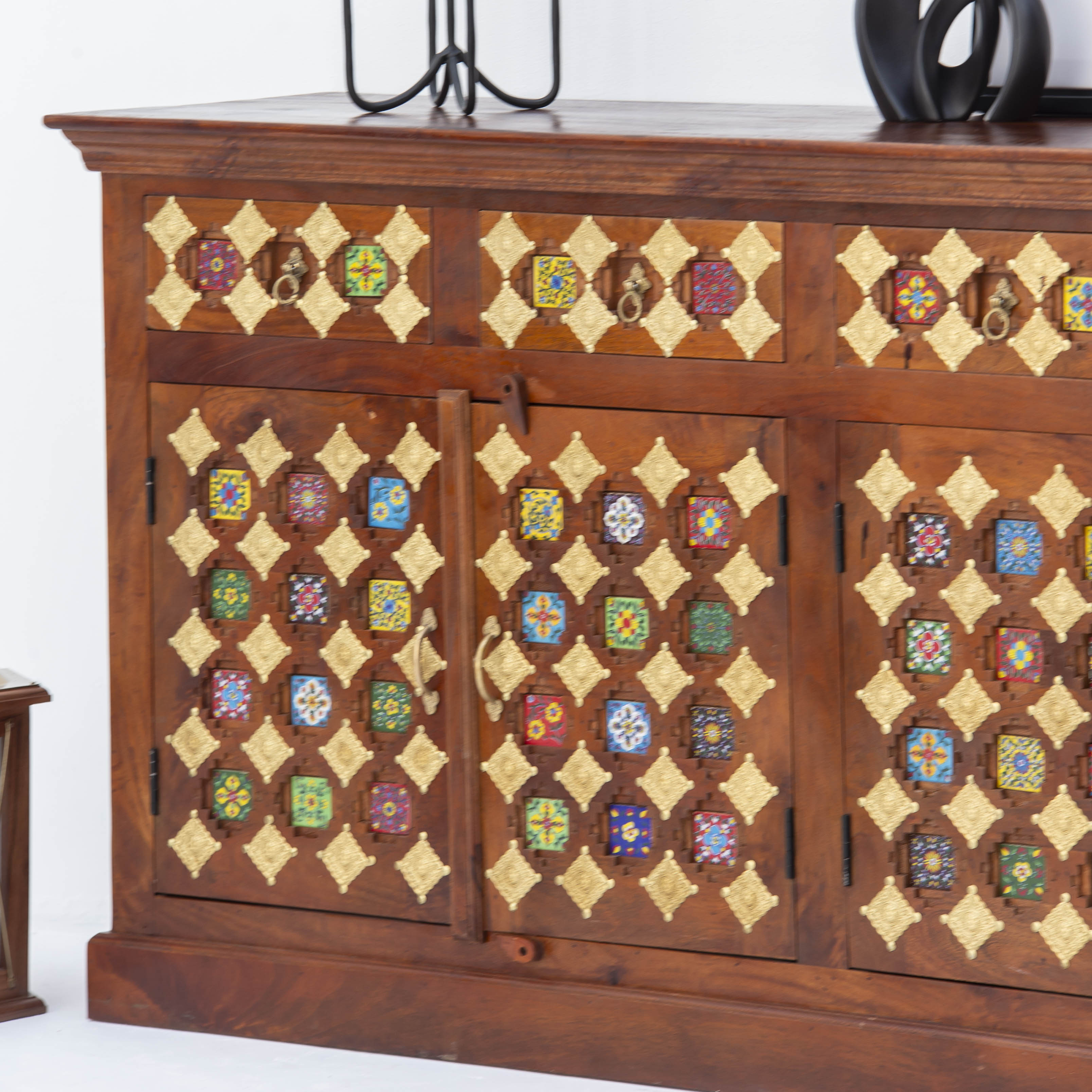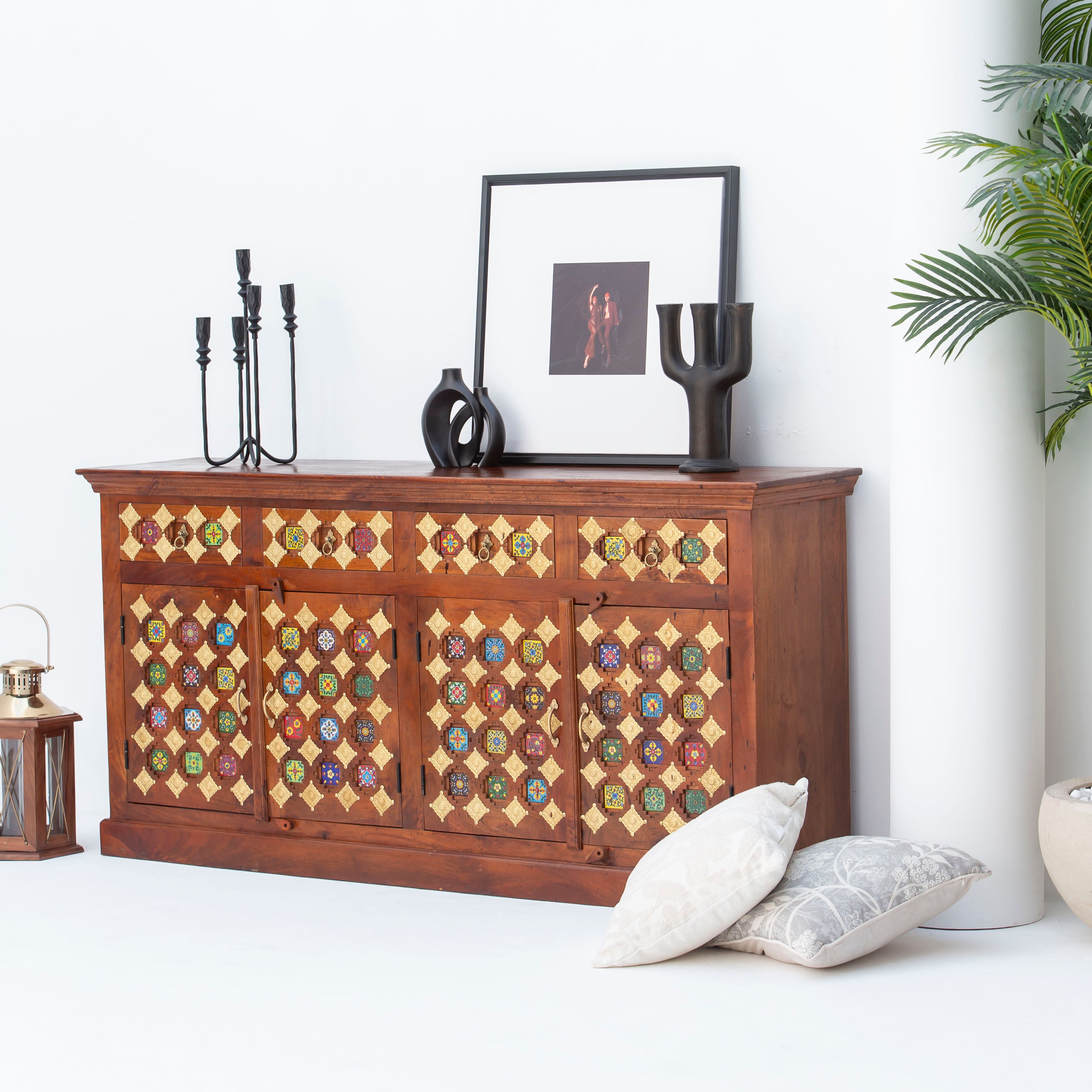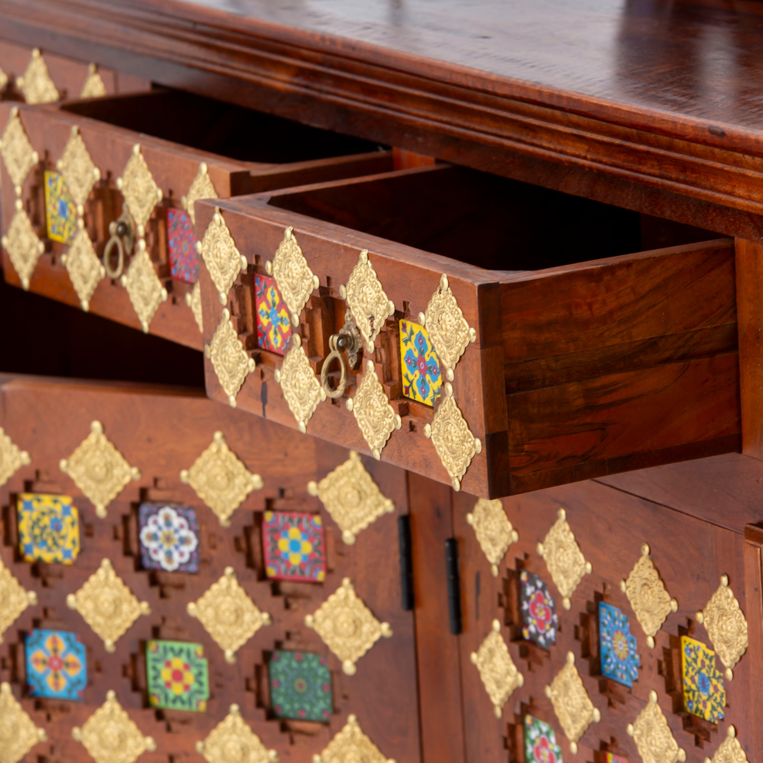 Discover the timeless elegance of our SHESTILE Wooden Four Door Sideboard, a masterpiece of Indian craftsmanship. Handcrafted from premium mango wood, this stunning piece combines traditional artistry with functional design. Four spacious doors provide ample storage for your treasures, while the rich wood grain and meticulous detailing showcase the skill of master artisans. Perfect for adding warmth and character to any room, this sideboard stands as a testament to authentic, handmade furniture that endures through generations.