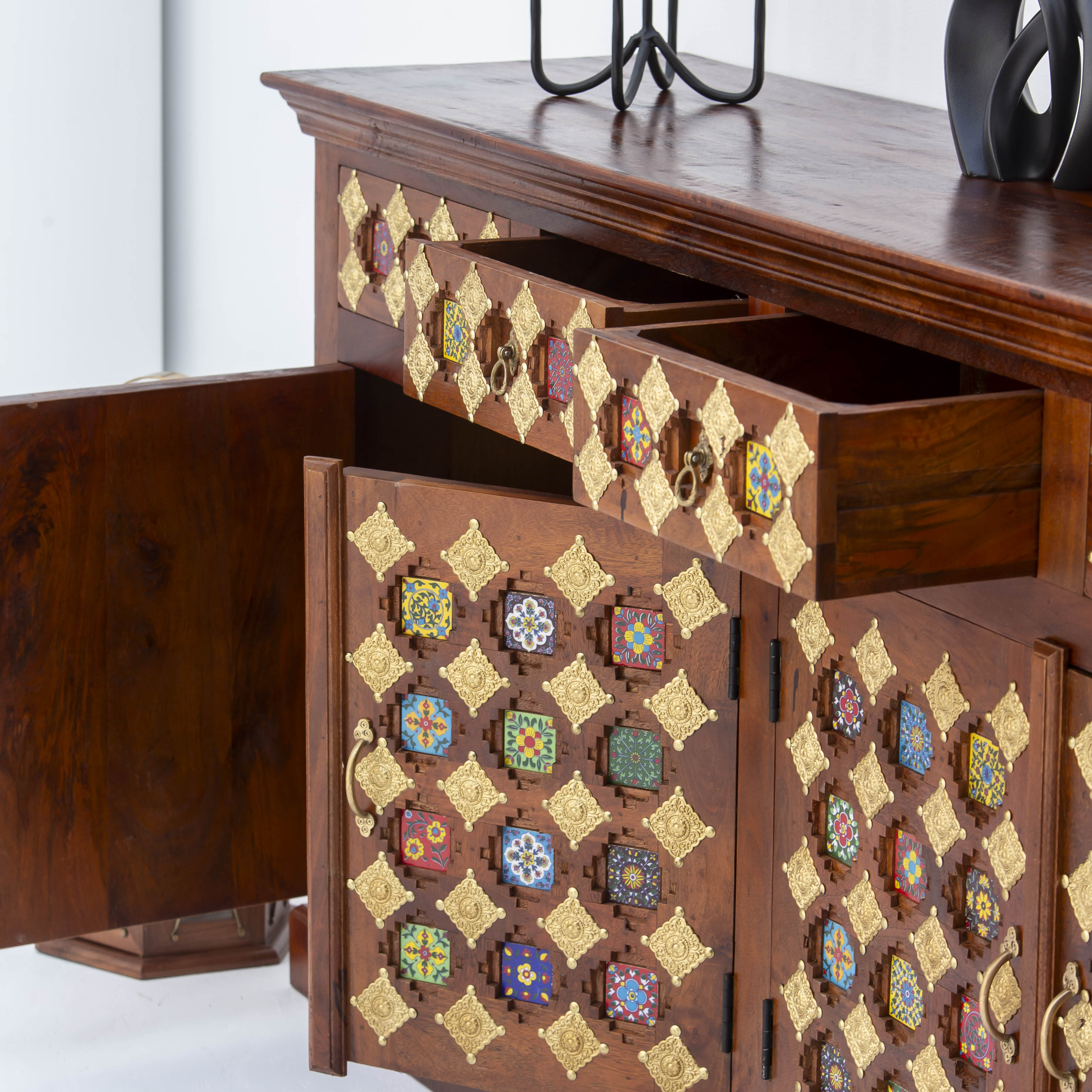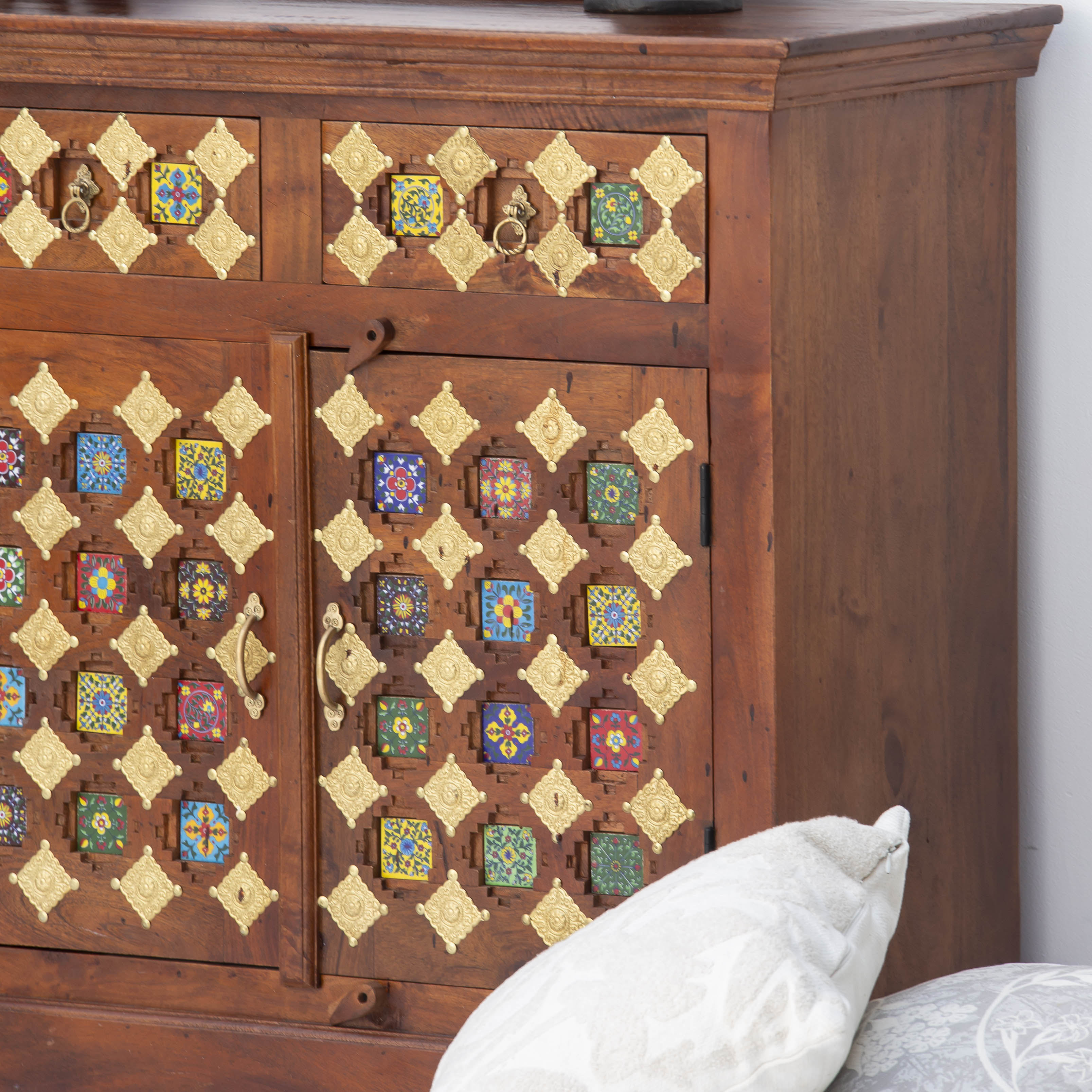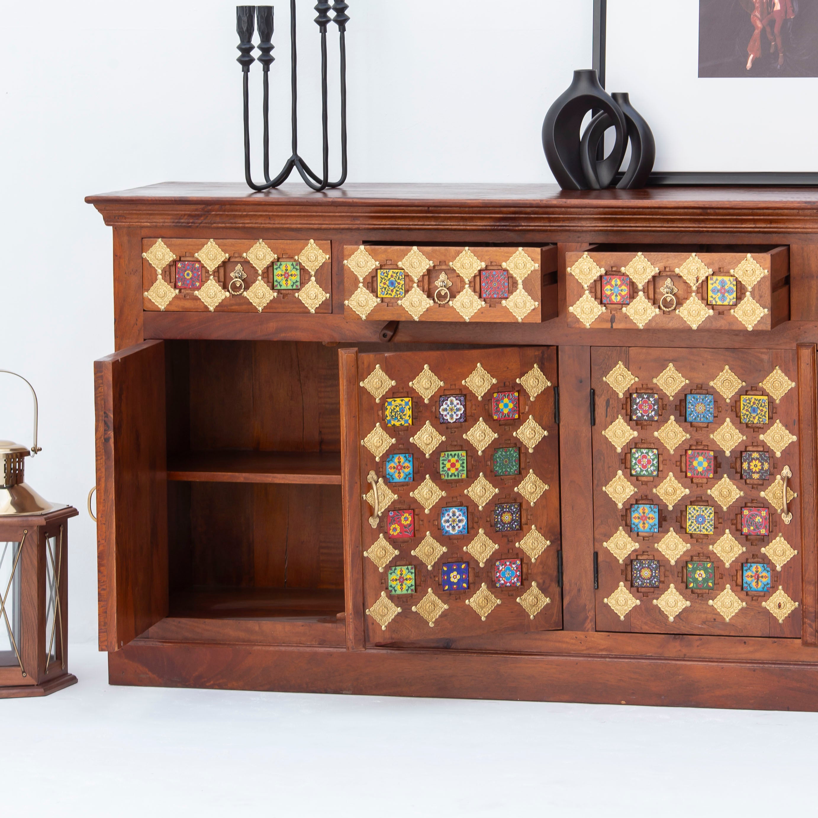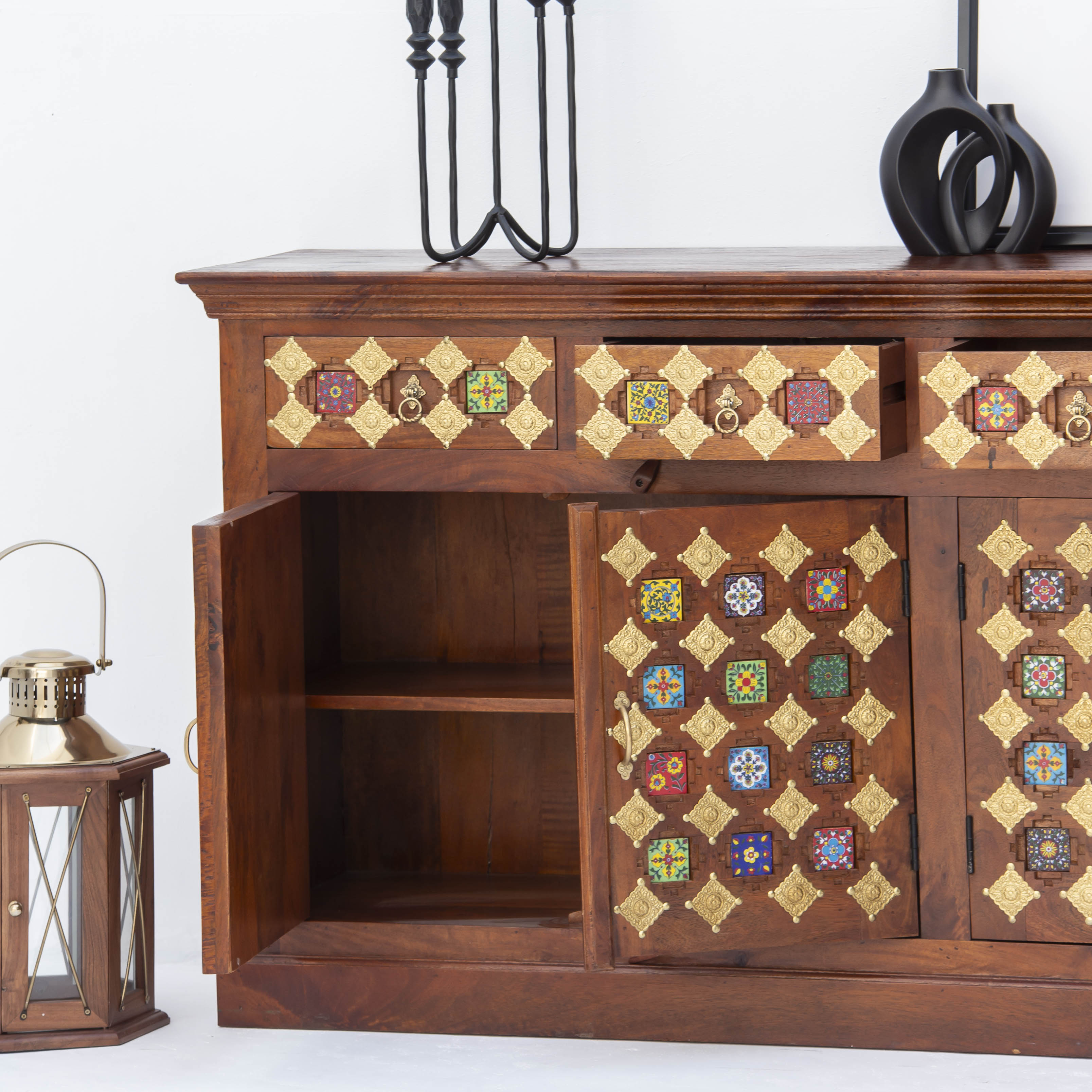 Discover the timeless elegance of our SHESTILE Wooden Four Door Sideboard, a masterpiece of Indian craftsmanship. Handcrafted from premium mango wood, this stunning piece combines traditional artistry with functional design. Four spacious doors provide ample storage for your treasures, while the rich wood grain and meticulous detailing showcase the skill of master artisans. Perfect for adding warmth and character to any room, this sideboard stands as a testament to authentic, handmade furniture that endures through generations.