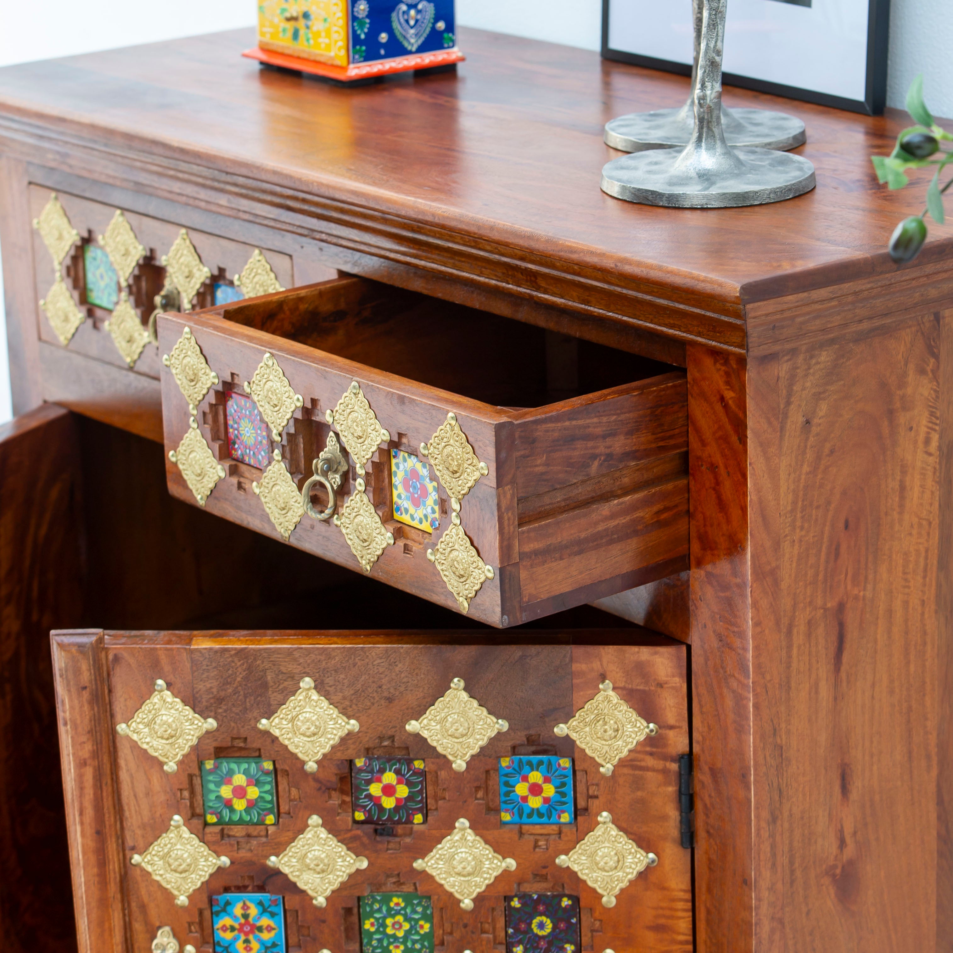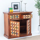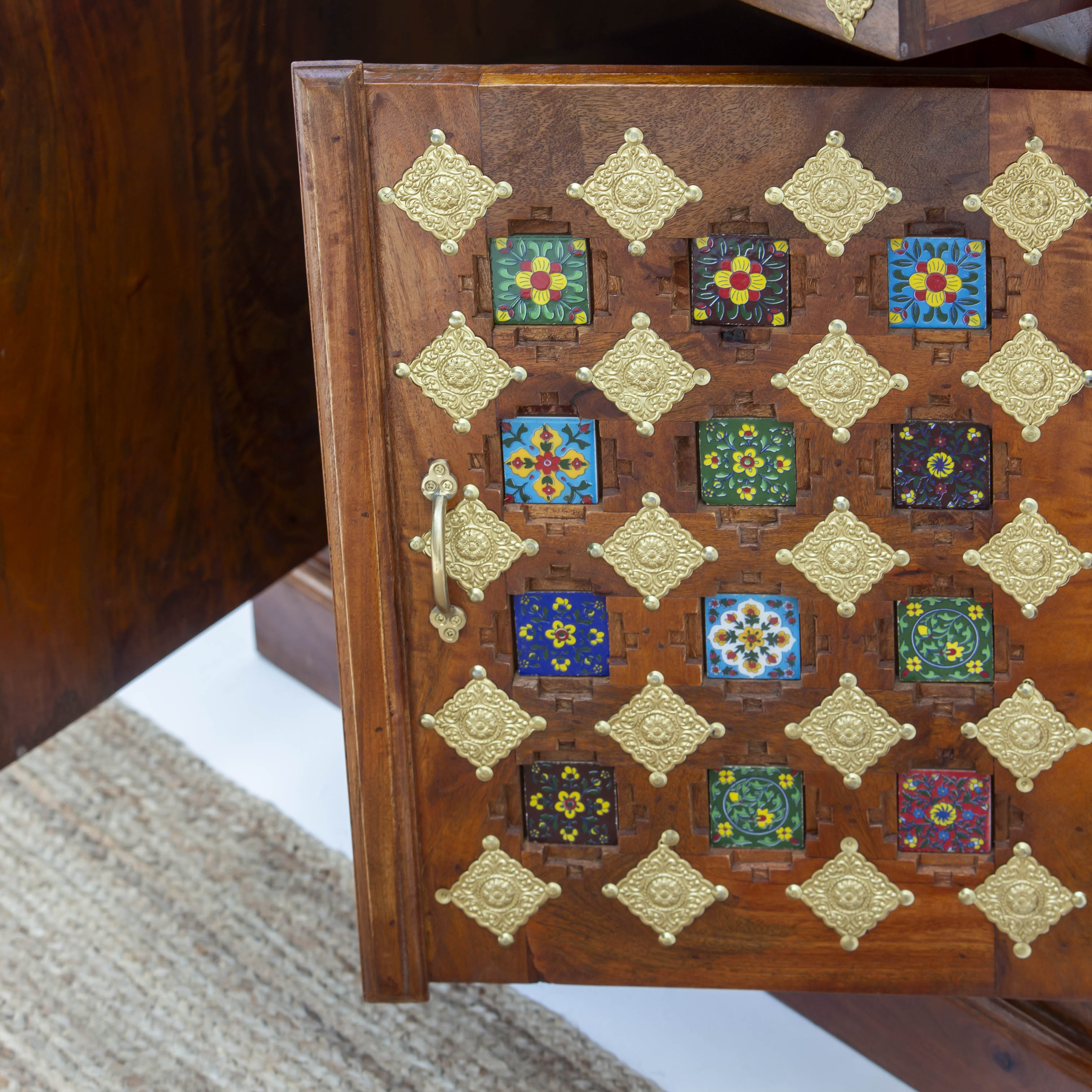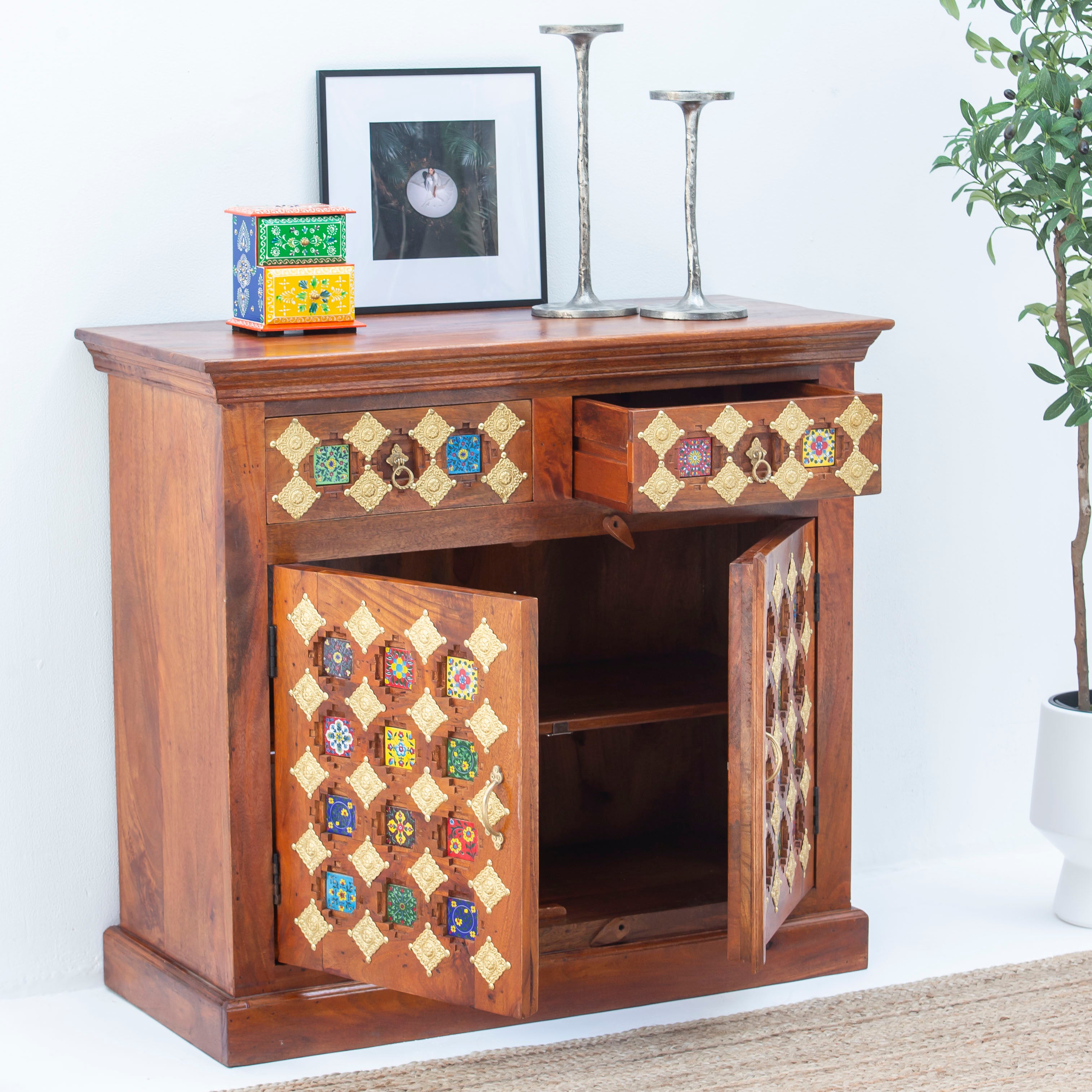 Discover the timeless elegance of our SHESTILE Wooden Two Door Sideboard, a masterpiece of Indian craftsmanship. Handcrafted from premium mango wood, this stunning piece combines traditional artistry with functional design. The two spacious doors conceal ample storage, while the rich wood grain and natural finish showcase the material's inherent beauty. Perfect for dining rooms or living spaces, this sideboard brings warmth and character to any interior, celebrating the skill of master artisans who honor time-honored woodworking techniques.