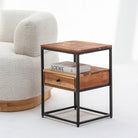 The Villeneuve Iron One Drawer Nightstand Table brings industrial elegance to your bedroom sanctuary. Crafted with sturdy iron construction, this piece marries raw metalwork with functional design, featuring a single drawer for storing essentials within arm's reach. Its minimalist silhouette complements both modern and eclectic interiors, while the weathered finish celebrates the beauty of handcrafted materials. A thoughtfully designed accent piece that transforms your nighttime routine into a moment of understated luxury.