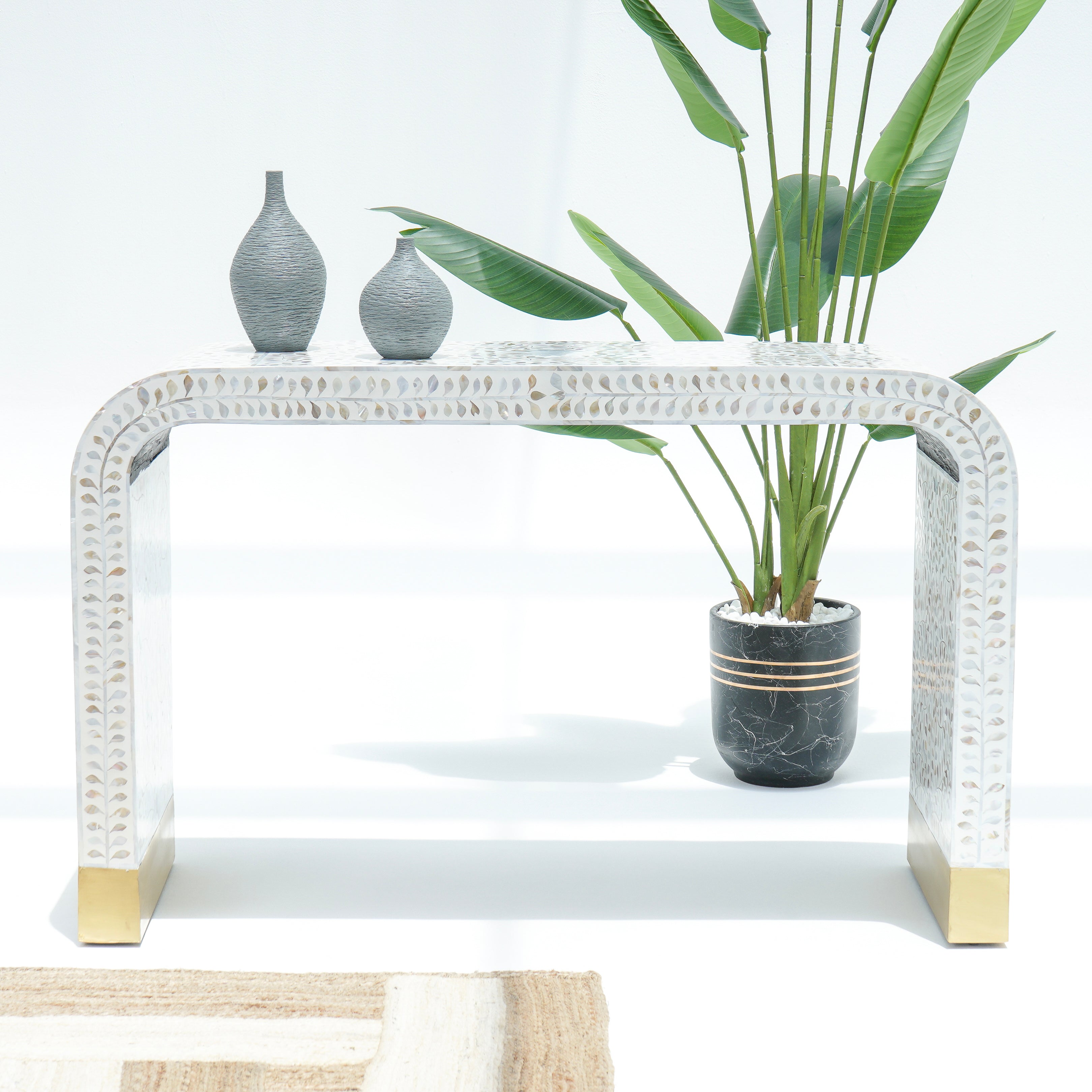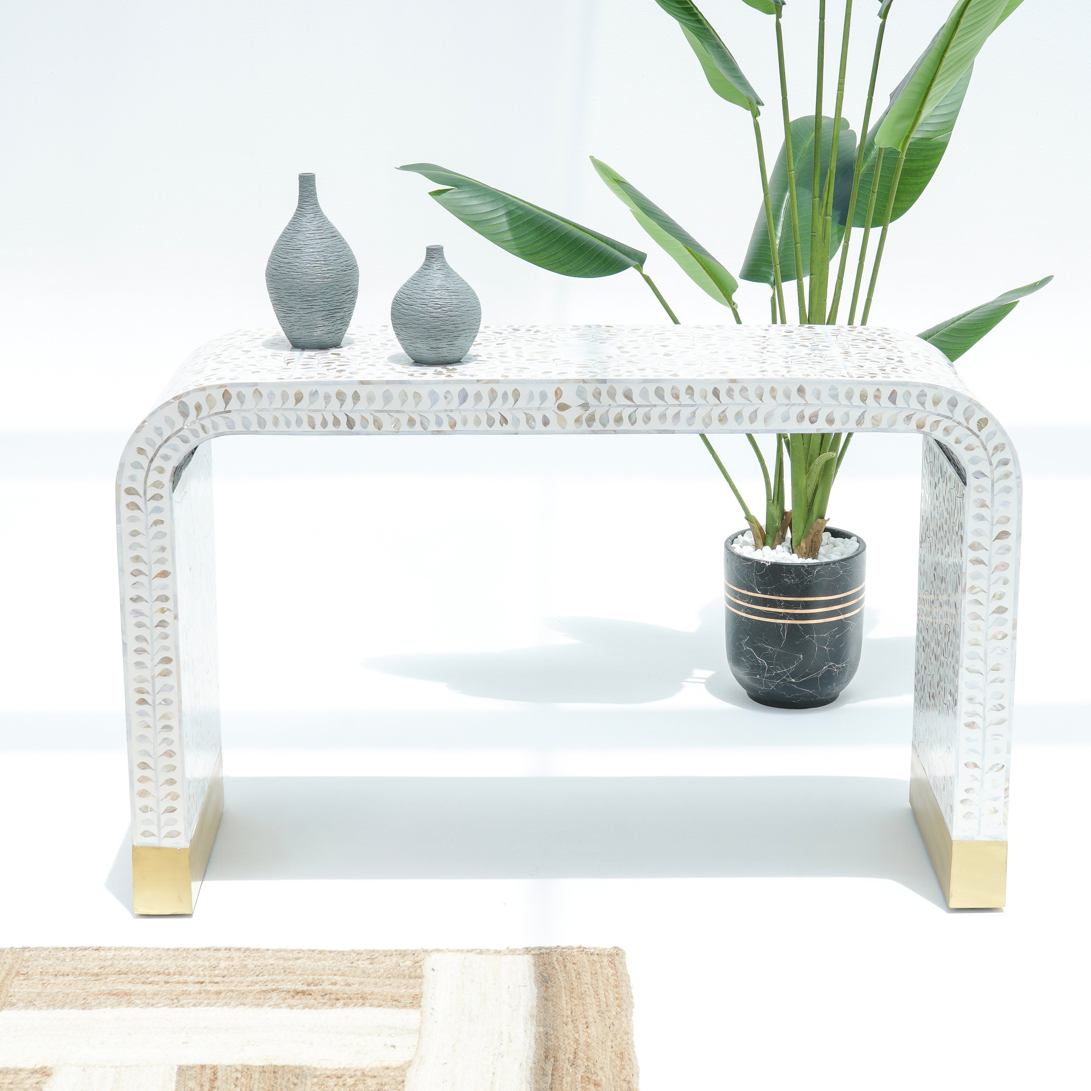 Stylishly designed, this MOP U Shape White Console is perfect for any space. Crafted in India with quality materials, it offers a 1-year warranty for peace of mind.