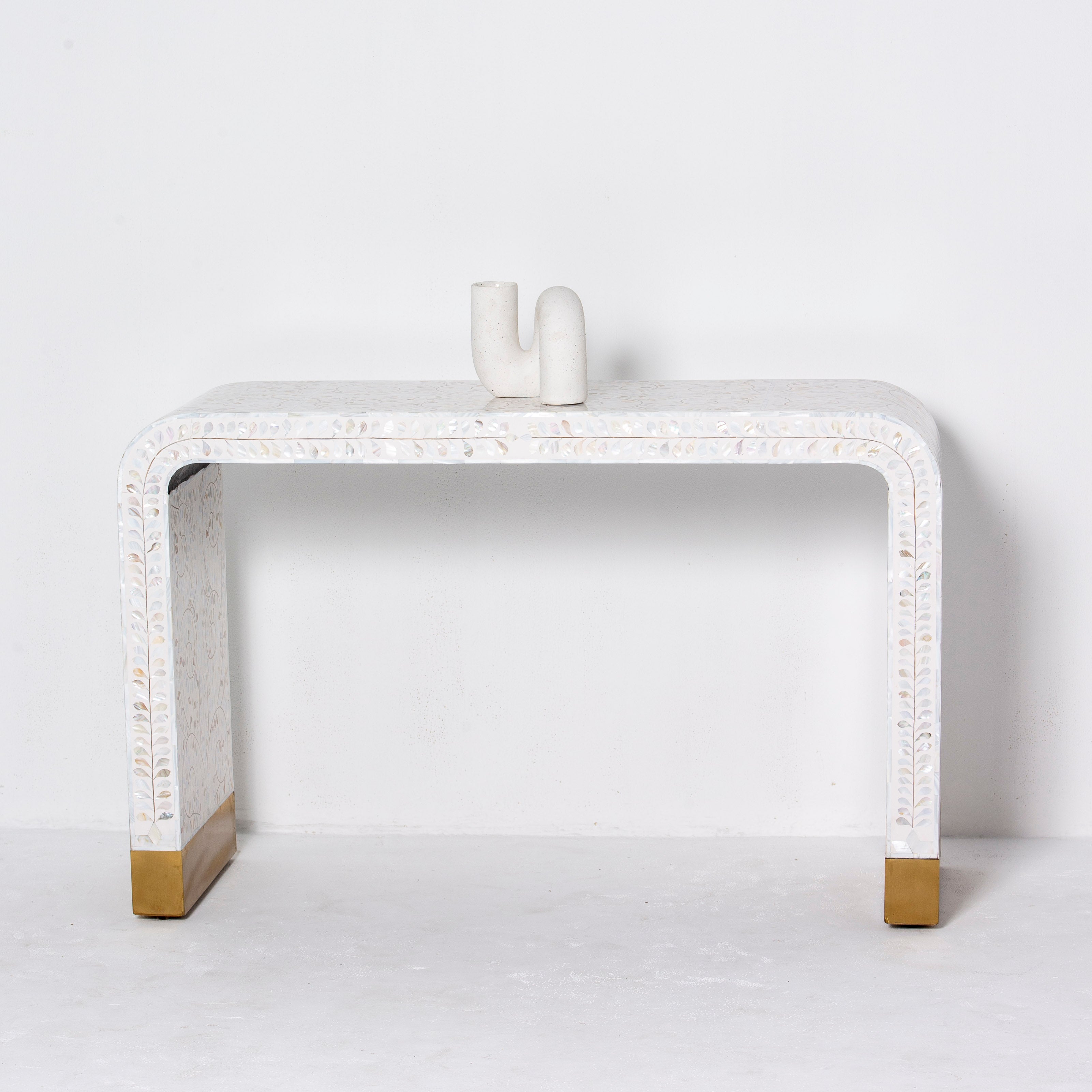 OCEAN PEARL MOP WHITE U SHAPE CONSOLE TABLE