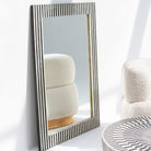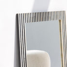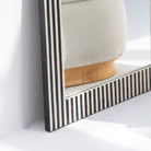 Elevate your space with this striking mirror frame, where deep black strips create an intricate inlay pattern that catches the light with understated elegance. Each geometric detail is meticulously crafted, bringing a touch of contemporary artistry to any room. The bold contrast and refined craftsmanship make this piece a statement accent—perfect for those who appreciate design that whispers rather than shouts. Transform your walls into a gallery of personal style.