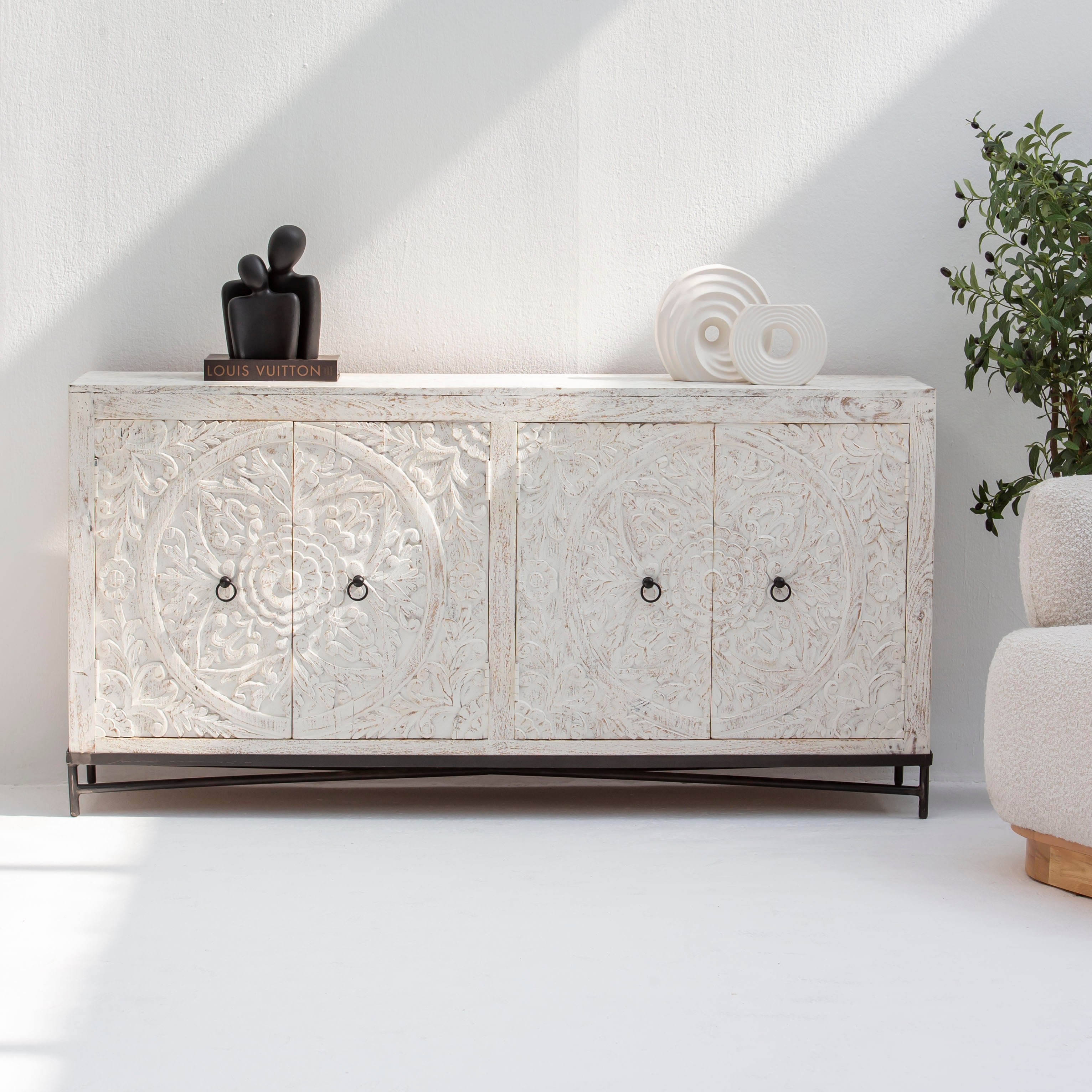 Add timeless charm and modern elegance to your living space with our Hand-Carved Sideboard & Buffet, beautifully crafted from sustainable mango wood and durable acacia wood. This piece is a seamless blend of minimalist design and antique craftsmanship, offering both function and art for your home.