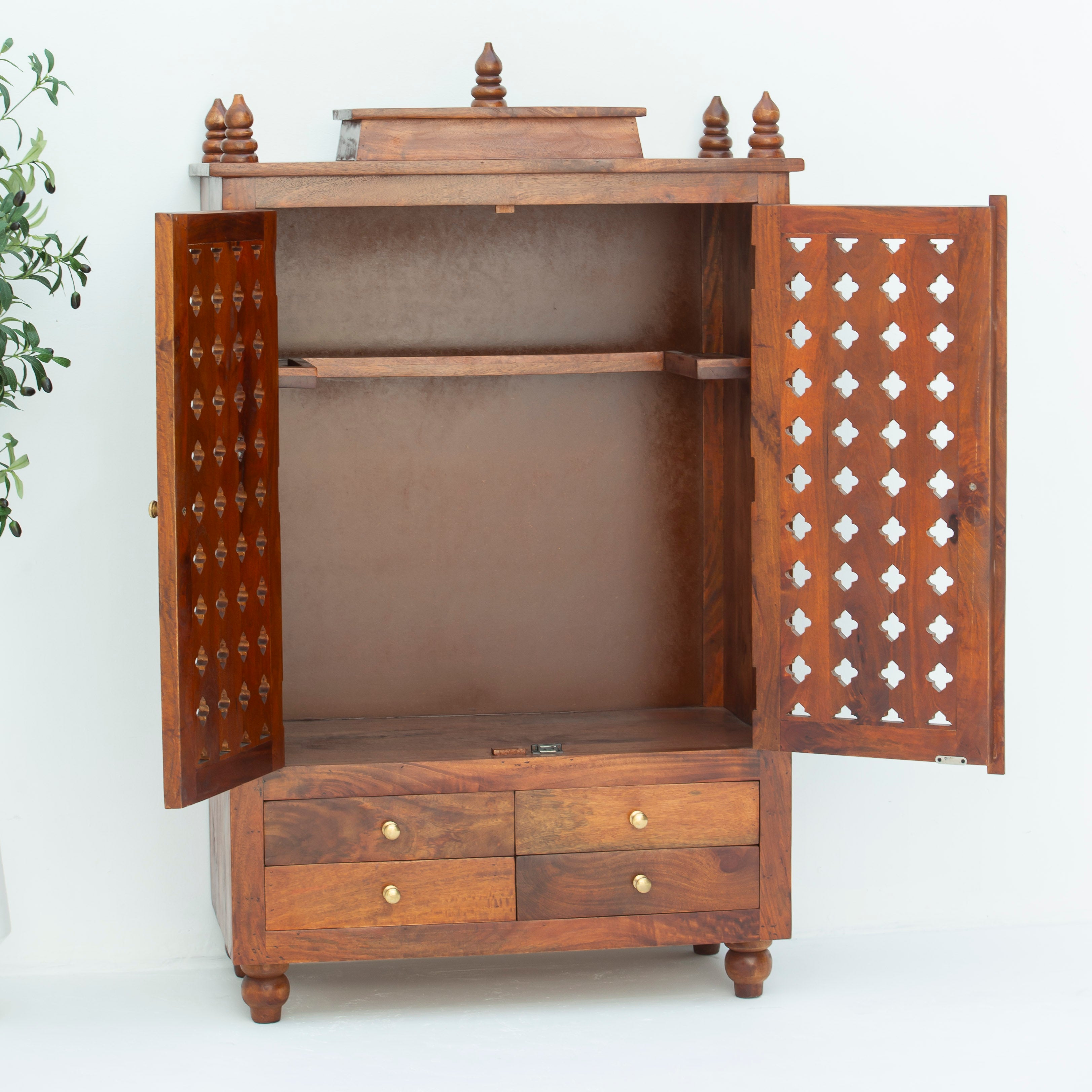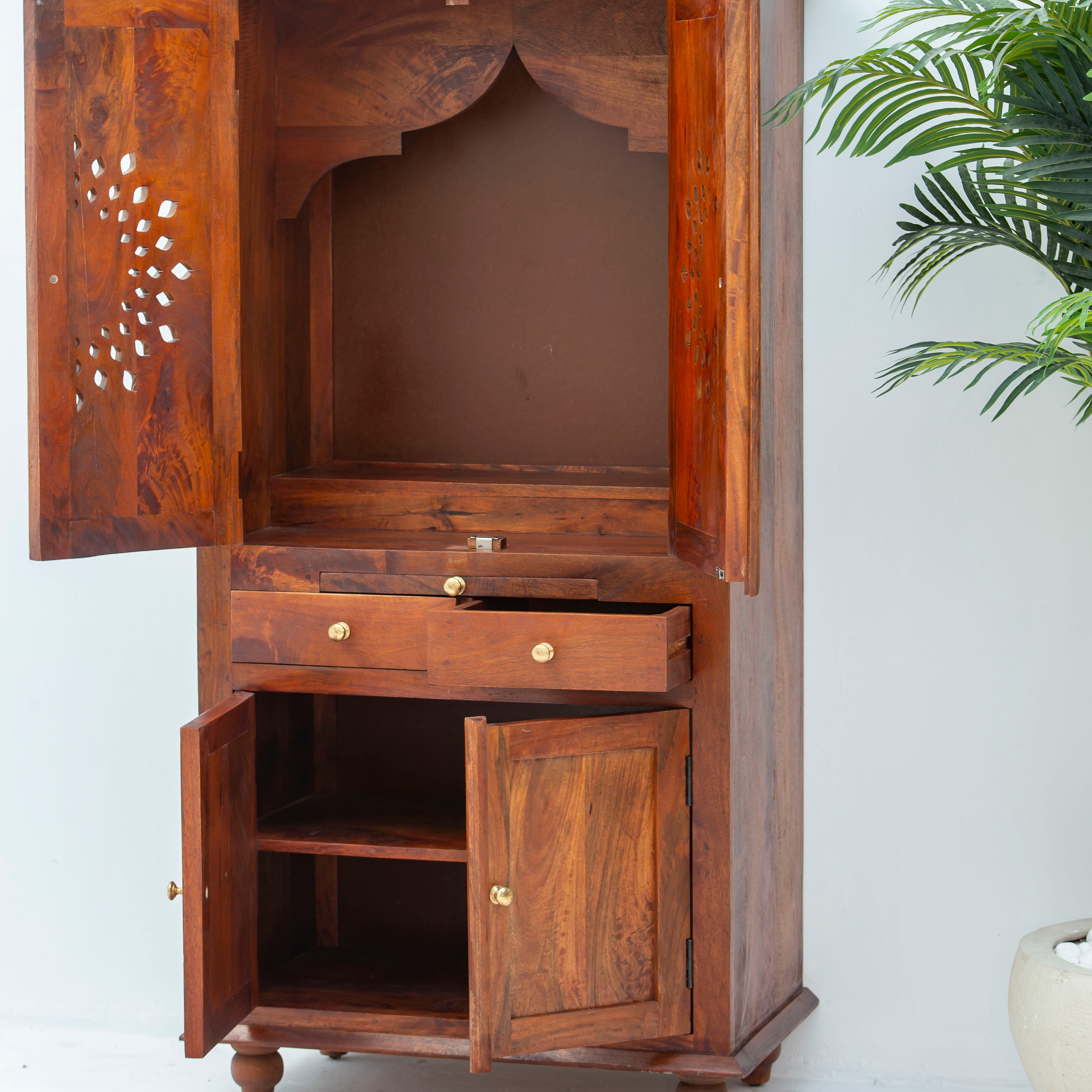 Explore artisan made solid wood temple shelves delivered across Dubai UAE with traditional craftsmanship and premium finishing.