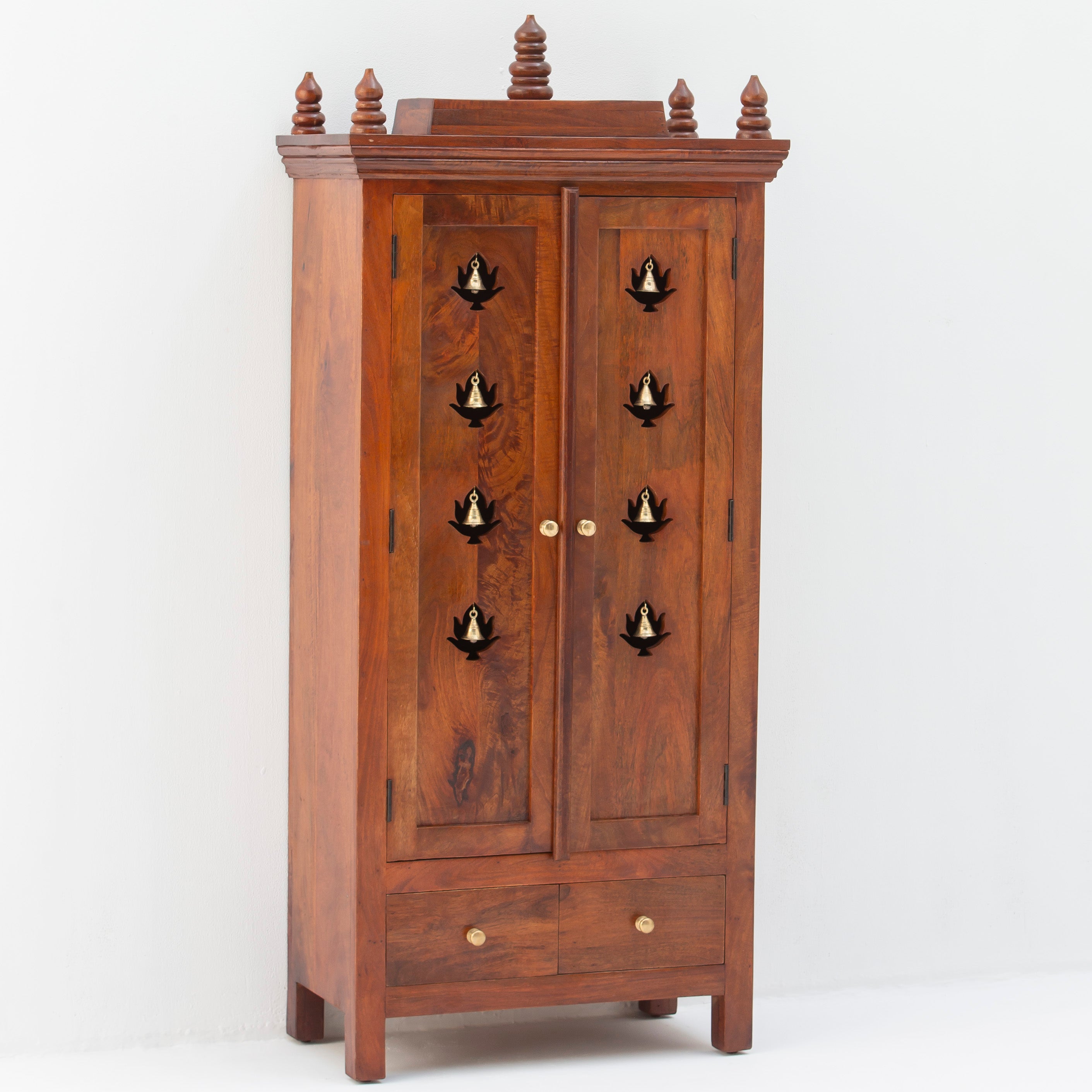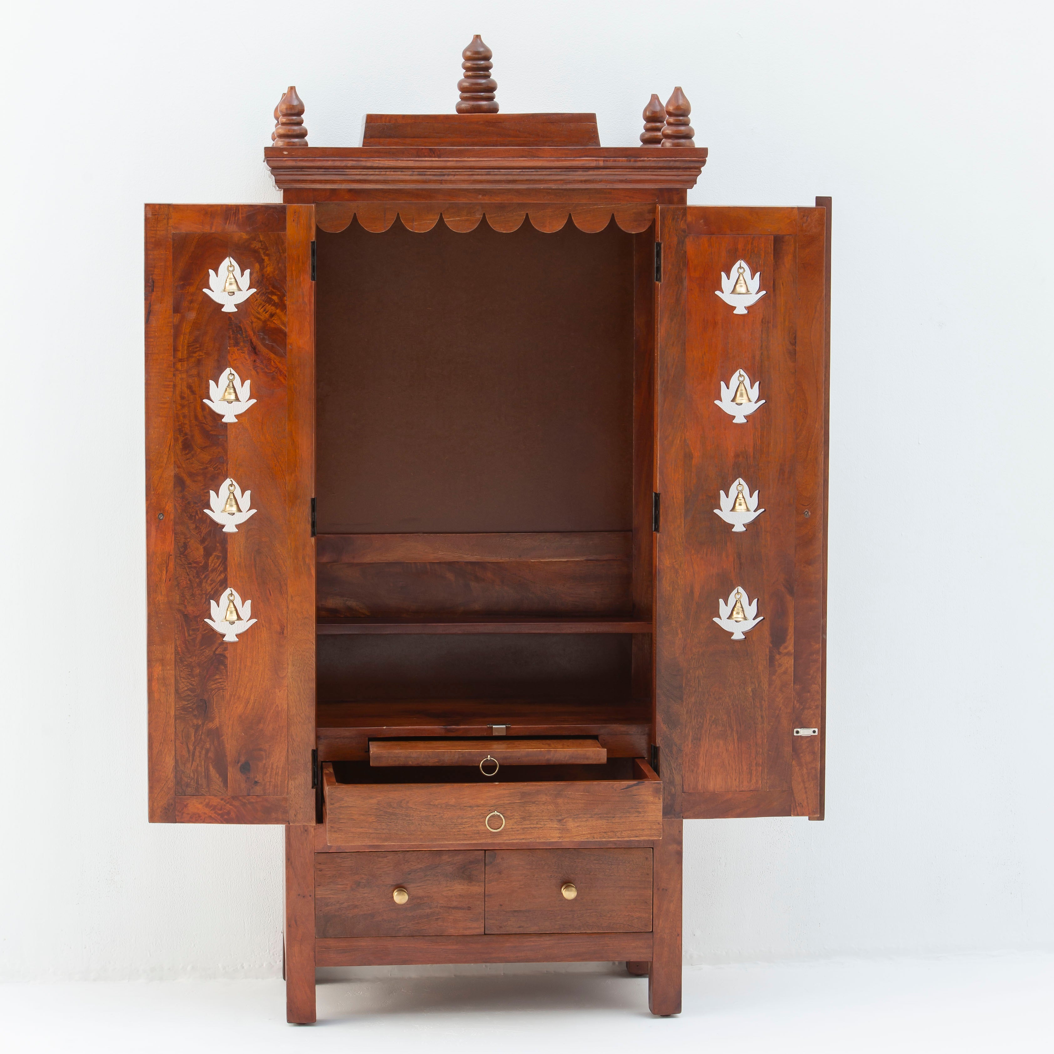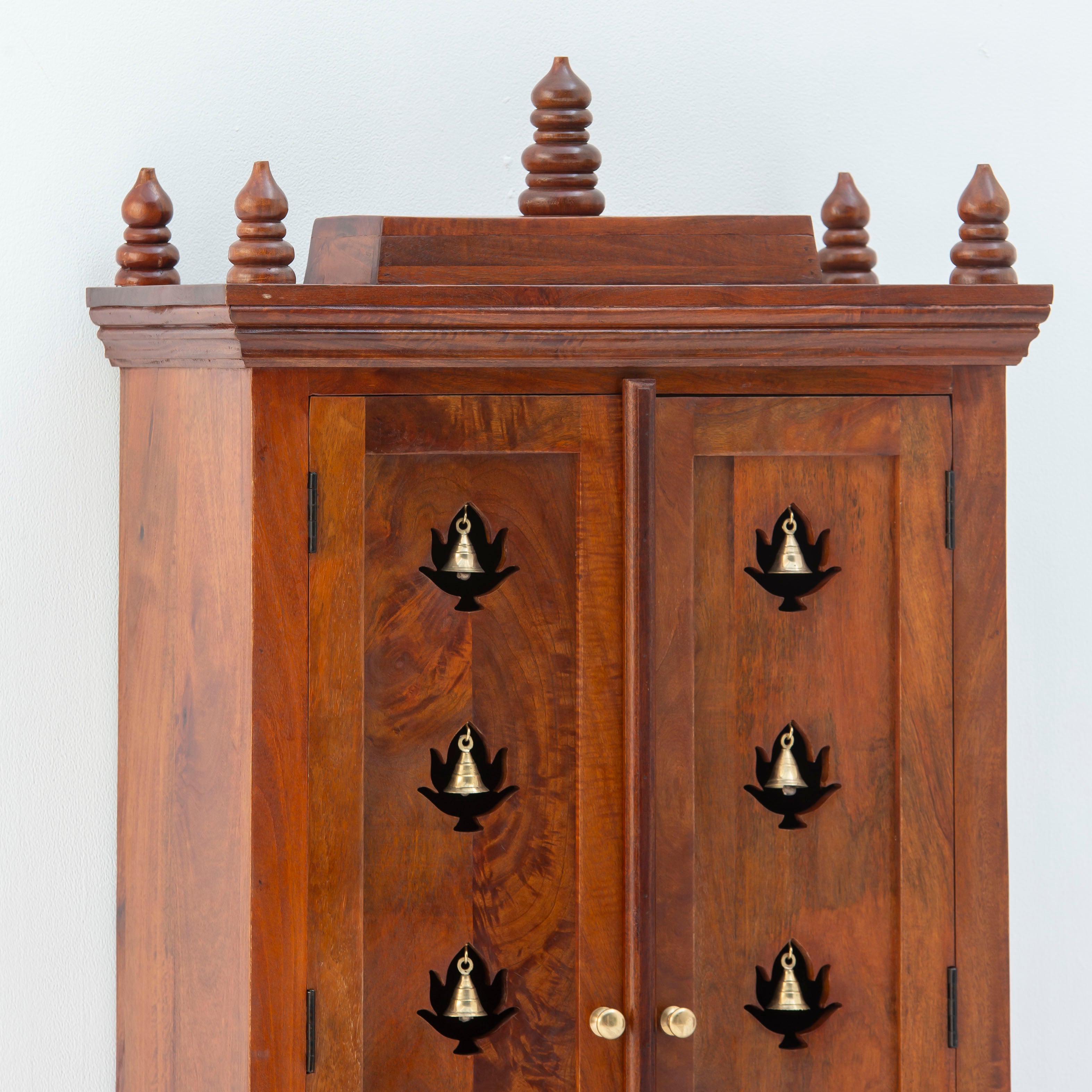 A reverent expression of Indian spiritual tradition, this handcrafted wooden temple is carved from premium mango wood by skilled artisans. Its intricate design honors classical temple architecture, with carefully detailed elements that showcase the natural beauty of the wood grain. Each piece is unique, bearing the subtle variations and character marks of authentic hand craftsmanship. Perfect for creating a sacred space in your home, this temple serves as both a functional devotional piece and a stunning work of functional art that celebrates centuries-old woodworking heritage.