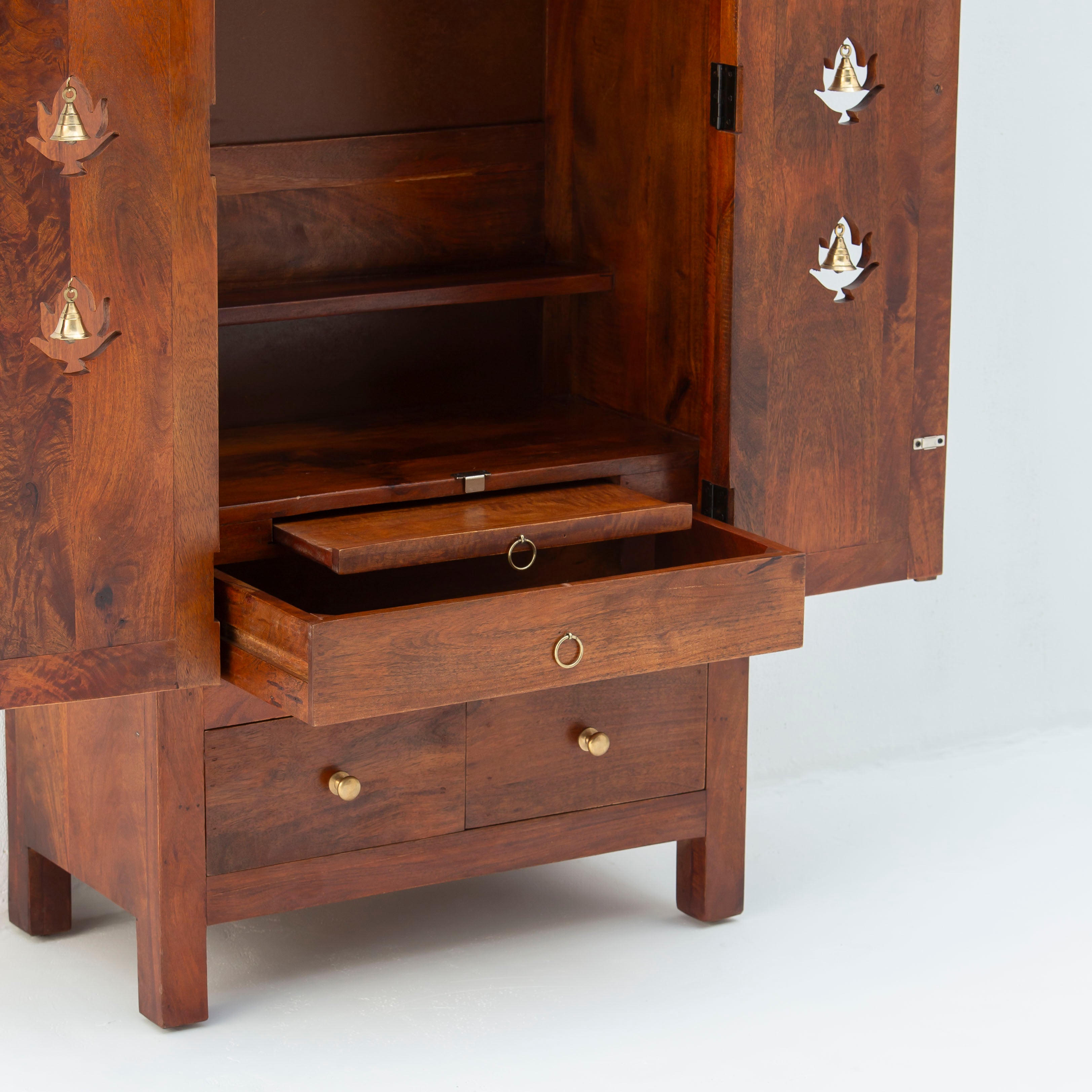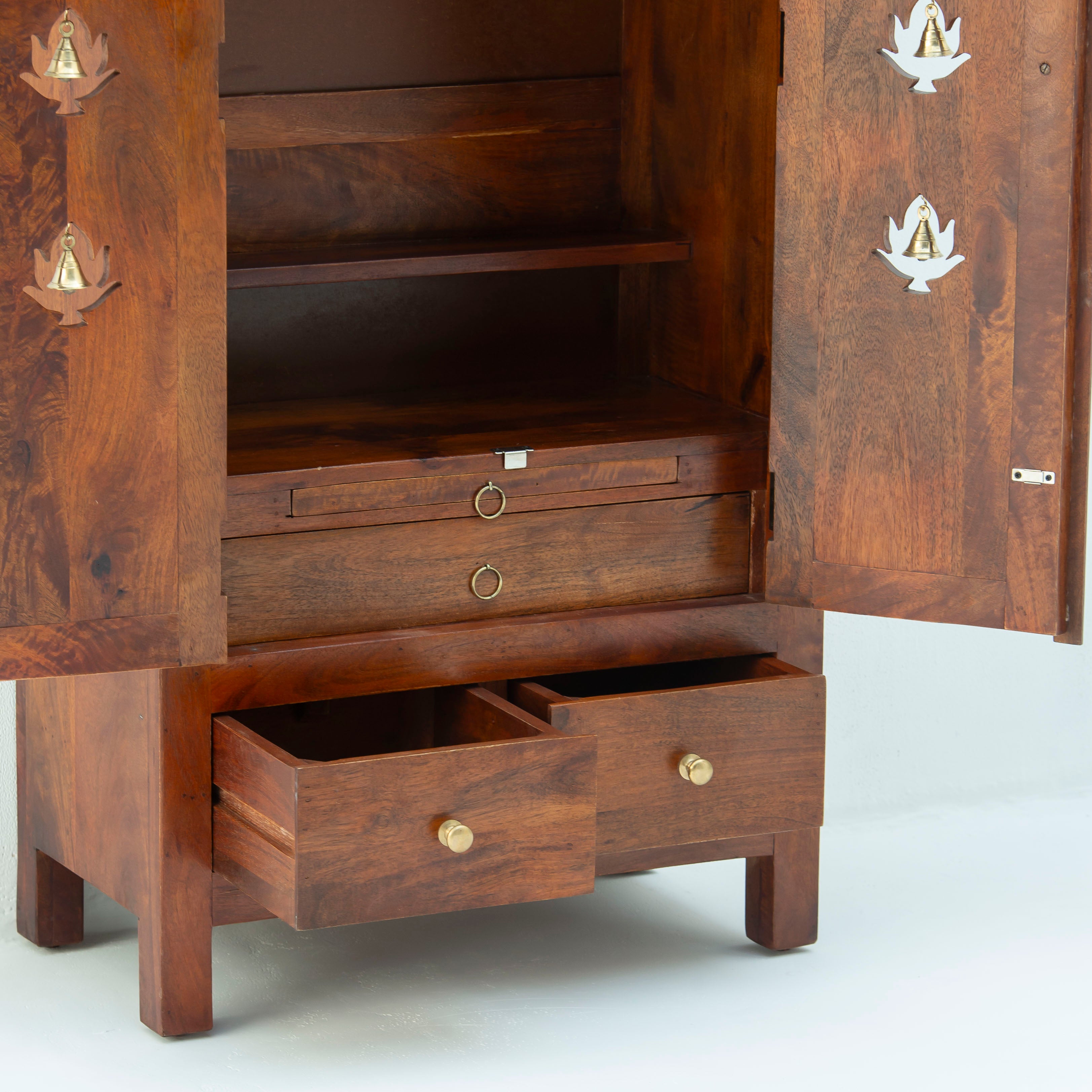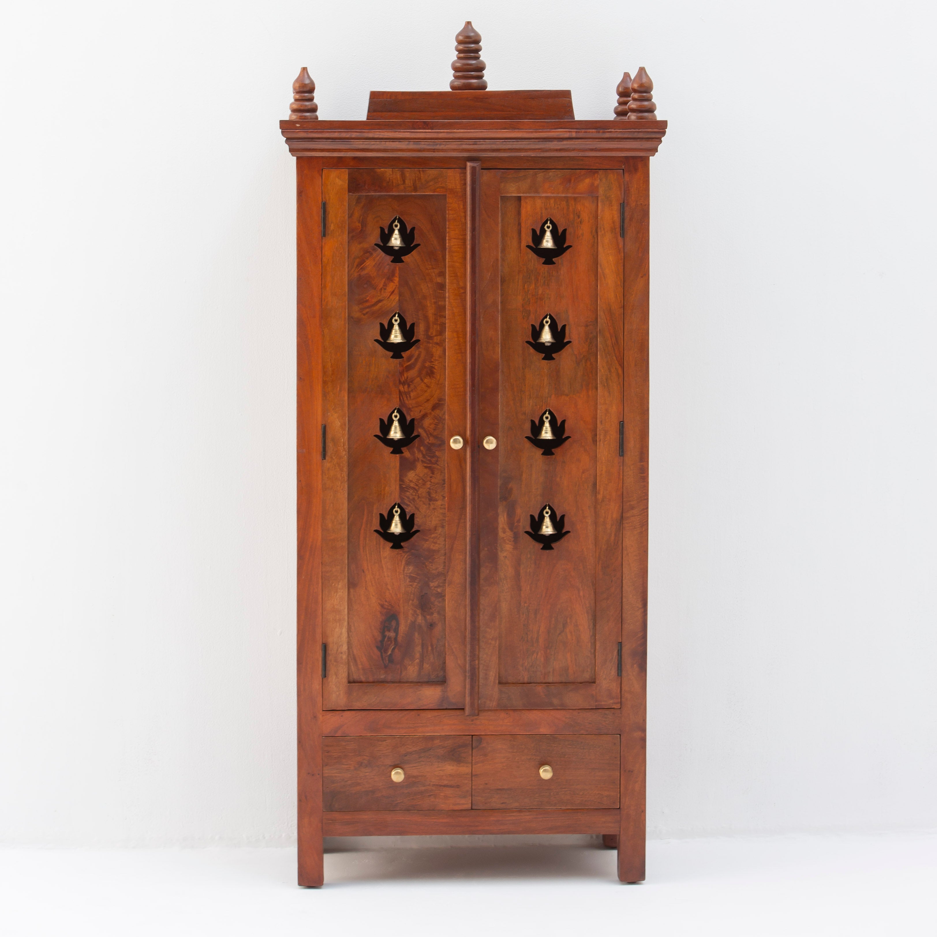 A reverent expression of Indian spiritual tradition, this handcrafted wooden temple is carved from premium mango wood by skilled artisans. Its intricate design honors classical temple architecture, with carefully detailed elements that showcase the natural beauty of the wood grain. Each piece is unique, bearing the subtle variations and character marks of authentic hand craftsmanship. Perfect for creating a sacred space in your home, this temple serves as both a functional devotional piece and a stunning work of functional art that celebrates centuries-old woodworking heritage.