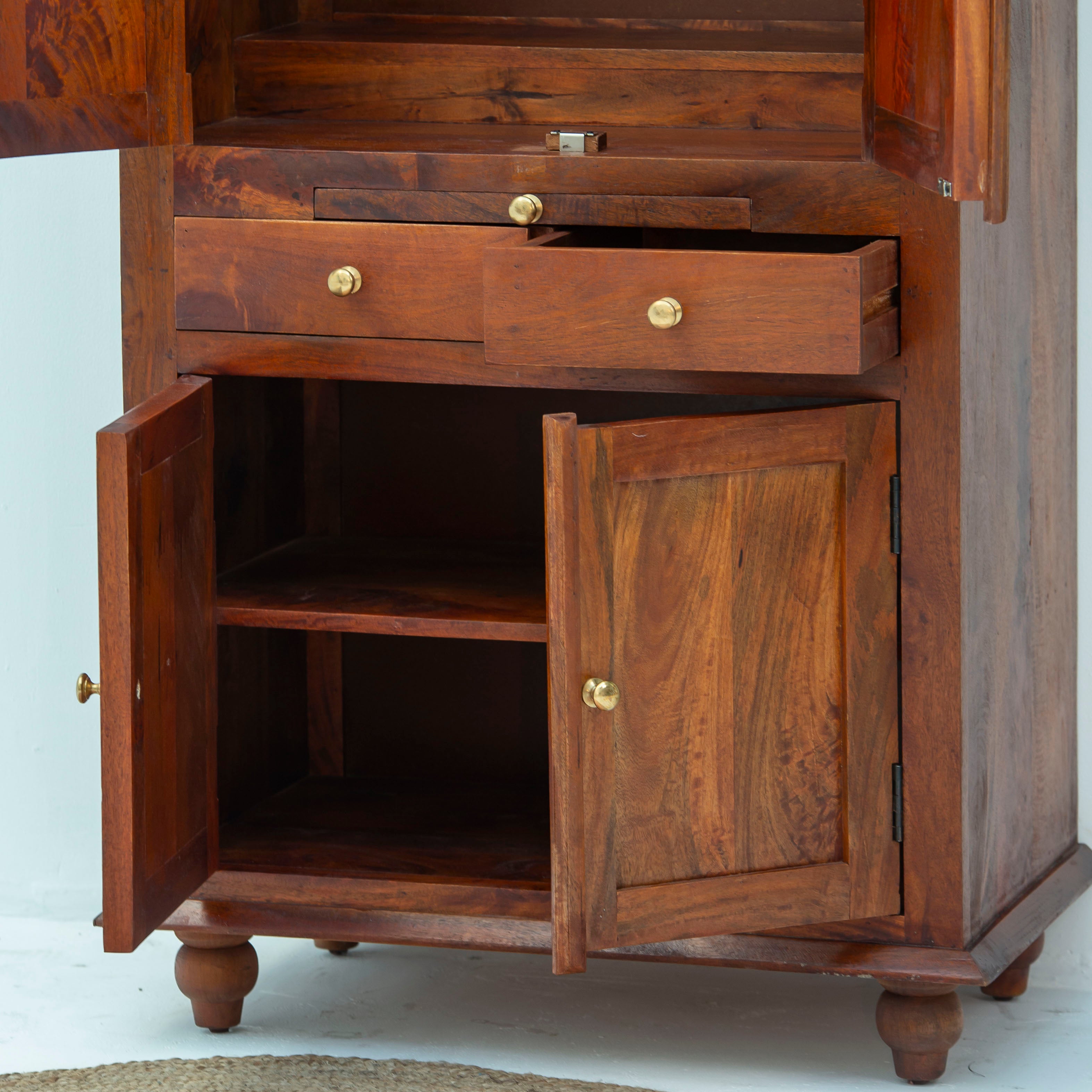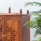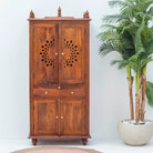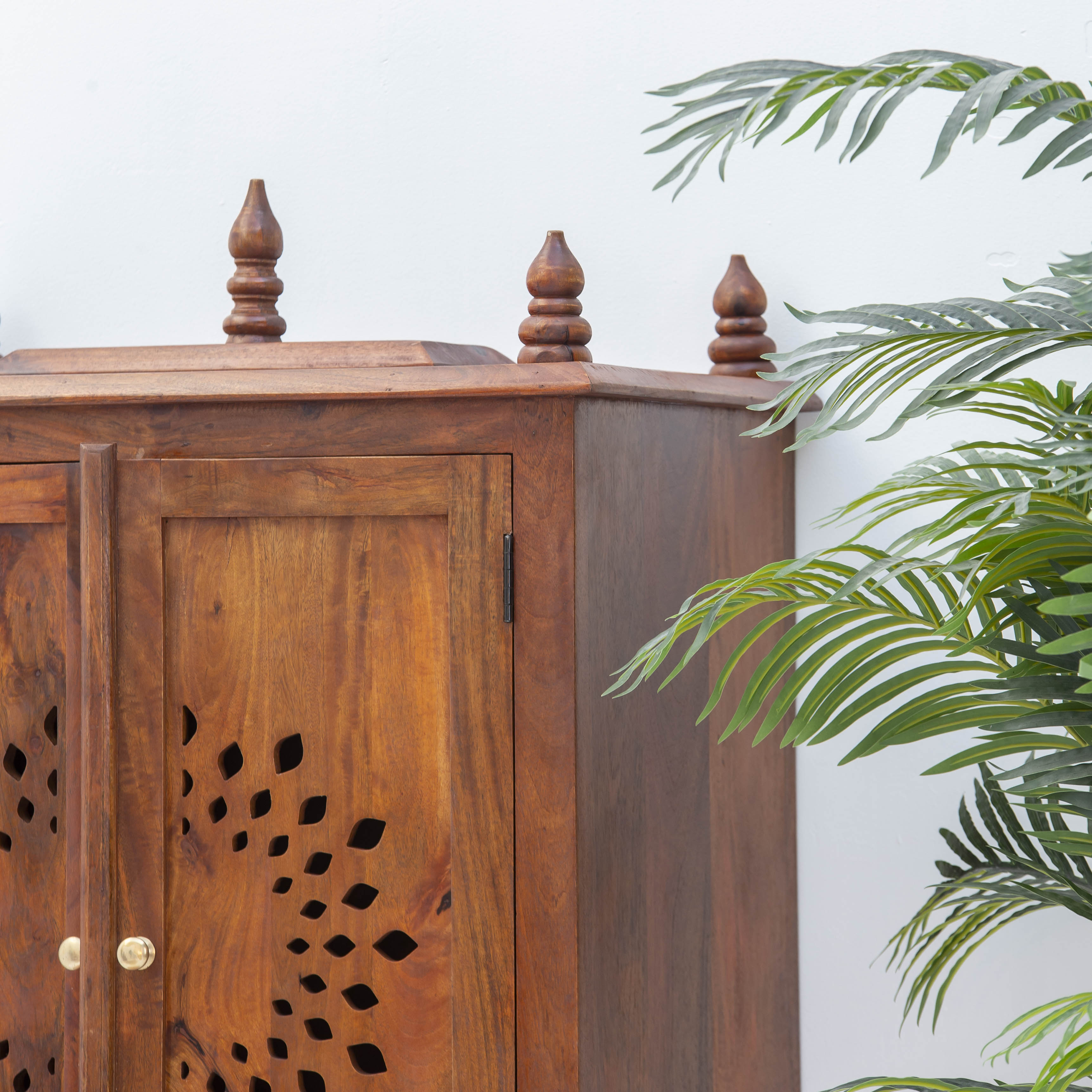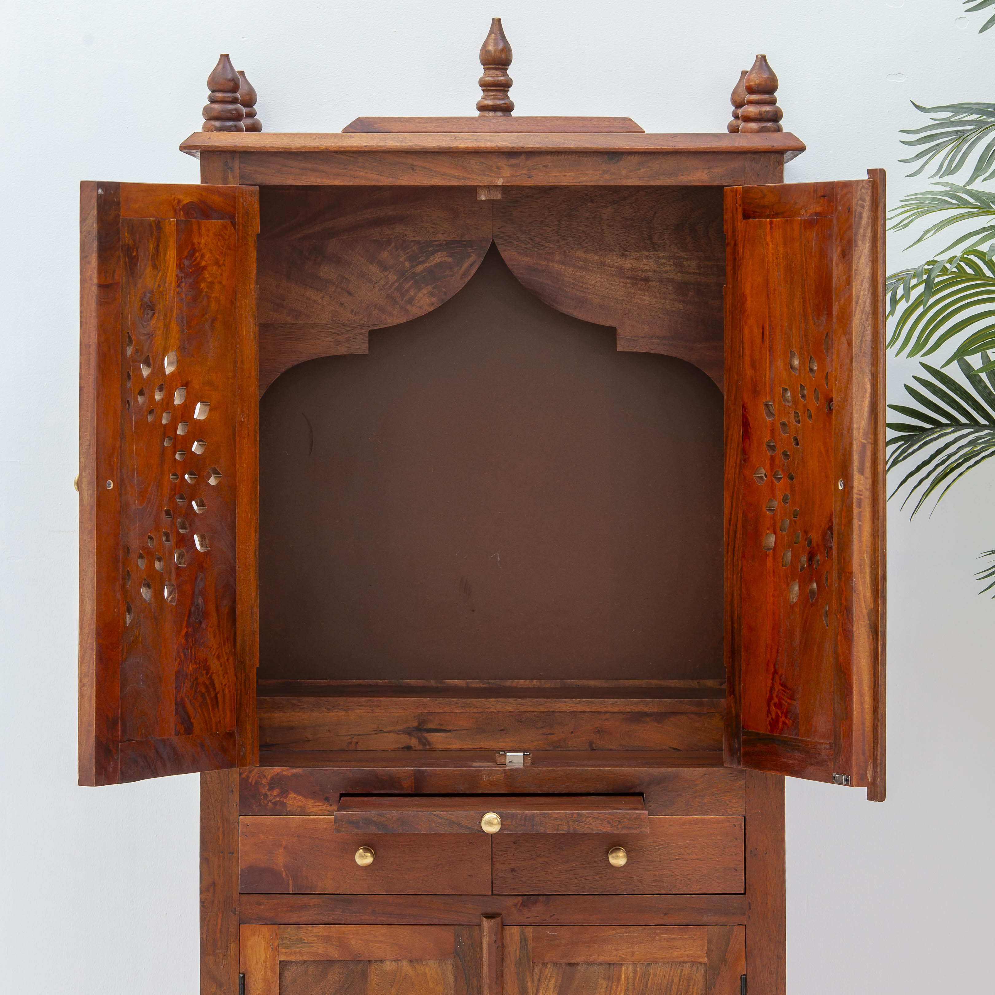 Bring spiritual elegance into your home with this handcrafted wooden temple, meticulously carved from premium mango wood. Each piece showcases authentic Indian artistry and traditional craftsmanship, featuring intricate details that reflect generations of skilled workmanship. The rich, warm tones of mango wood develop a beautiful patina over time, adding character and depth to your sacred space. Perfect for meditation rooms, prayer spaces, or as a meaningful decorative centerpiece, this temple serves as both a functional altar and a stunning work of art that honors cultural heritage.