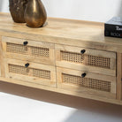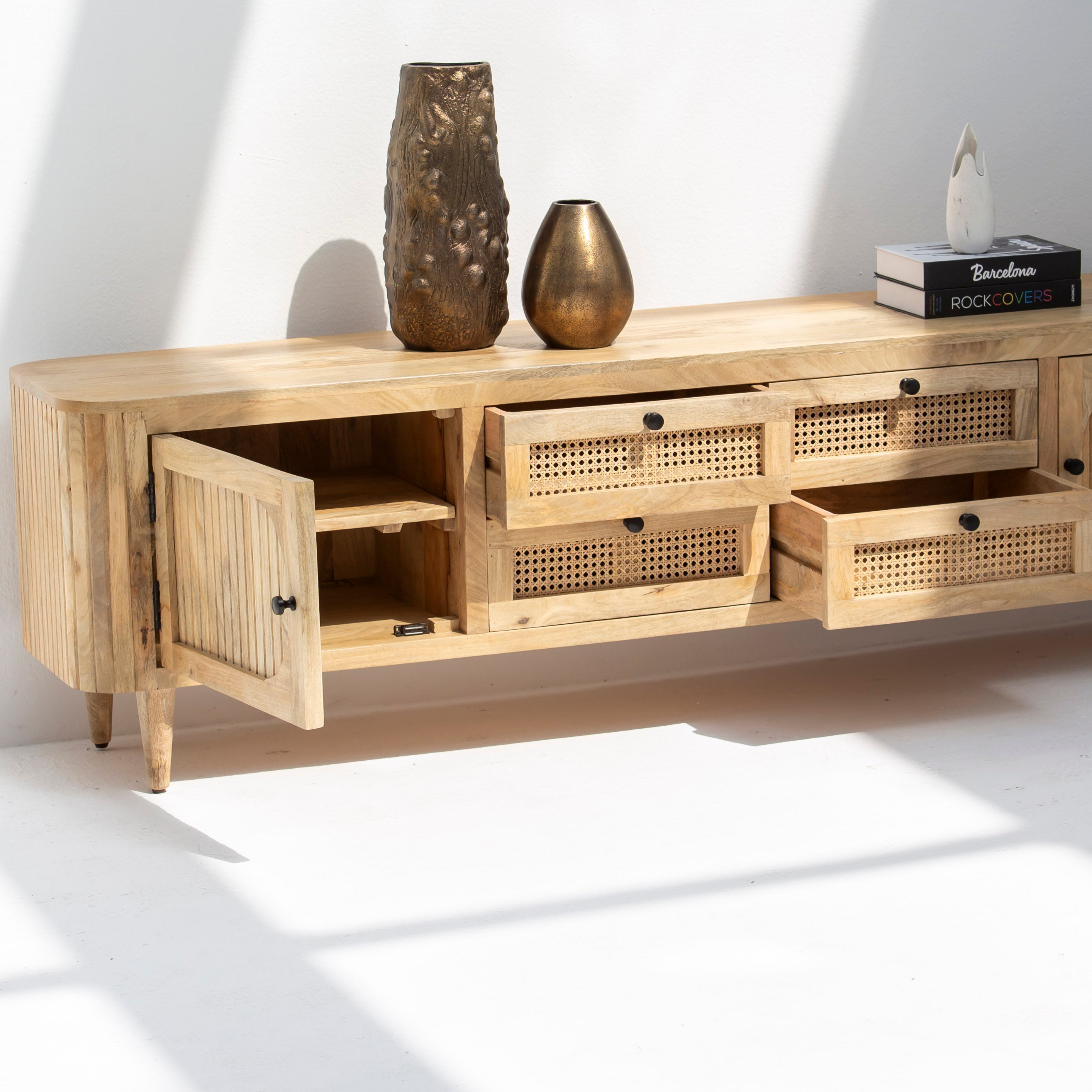 Elevate your living space with the CANOVIA Cane TV Stand, a stunning blend of natural aesthetics and functional design. Featuring authentic cane detailing and a sturdy frame, this piece brings warmth and texture to any room. Perfect for displaying your television while adding a touch of artisanal charm, the CANOVIA stands as a statement piece that complements both modern and traditional interiors. Ideal for those seeking furniture that combines style with practicality.