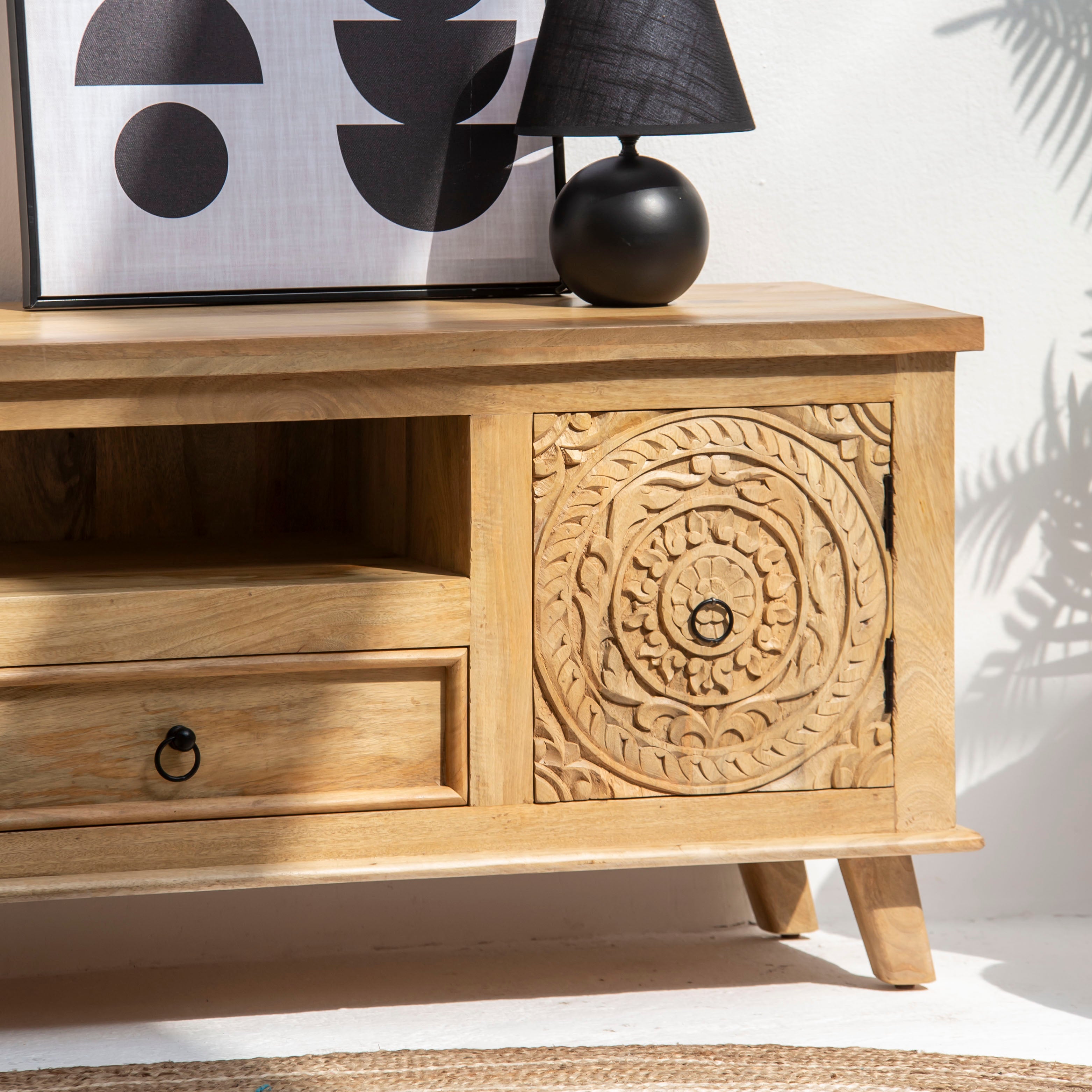 CARVA CARVING WOODEN TV STAND