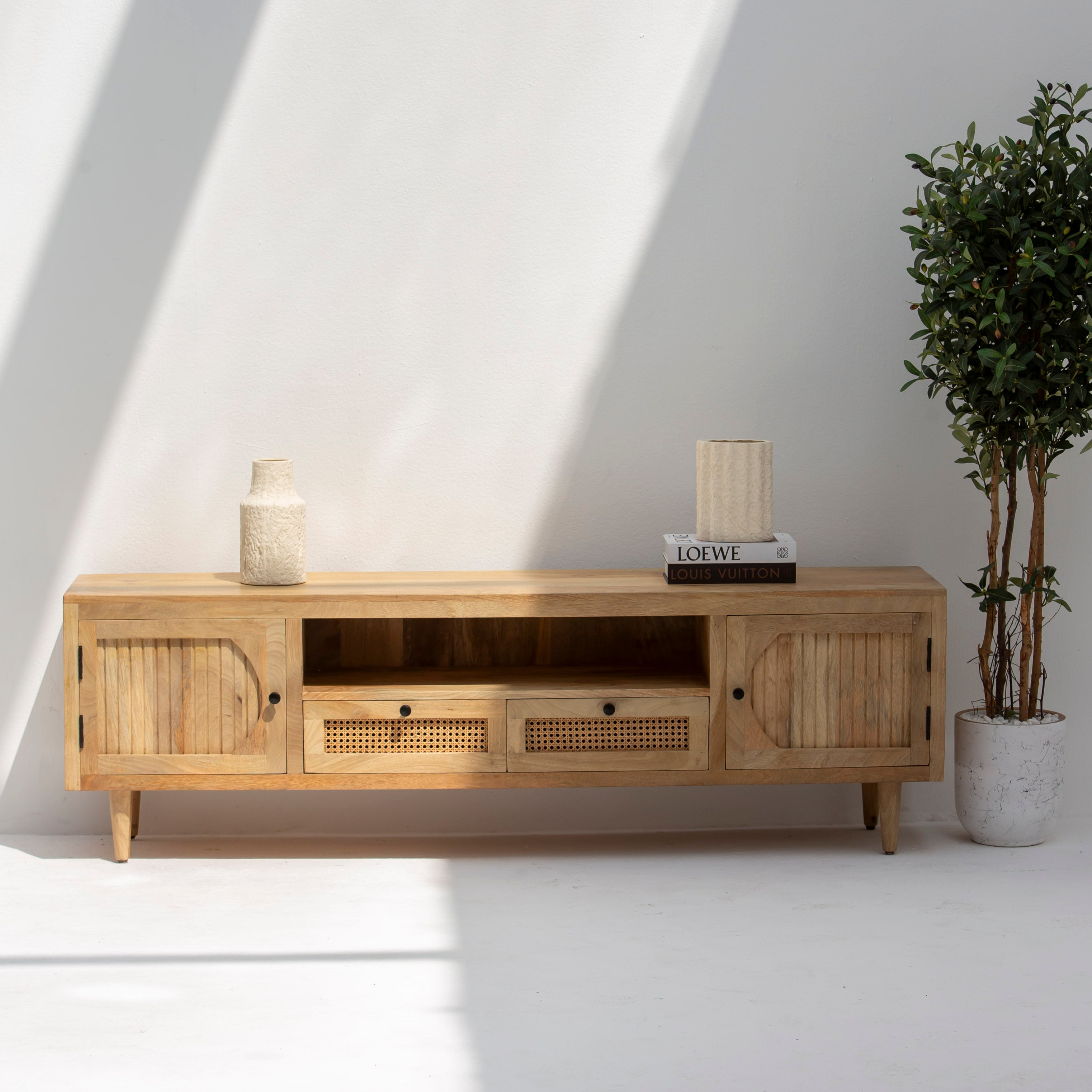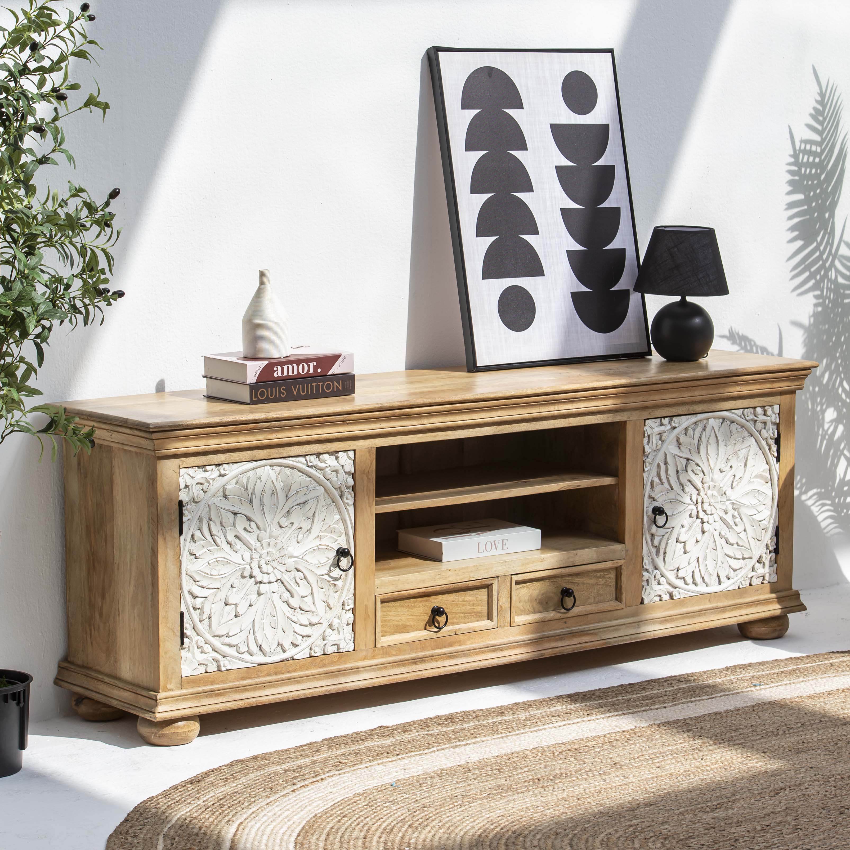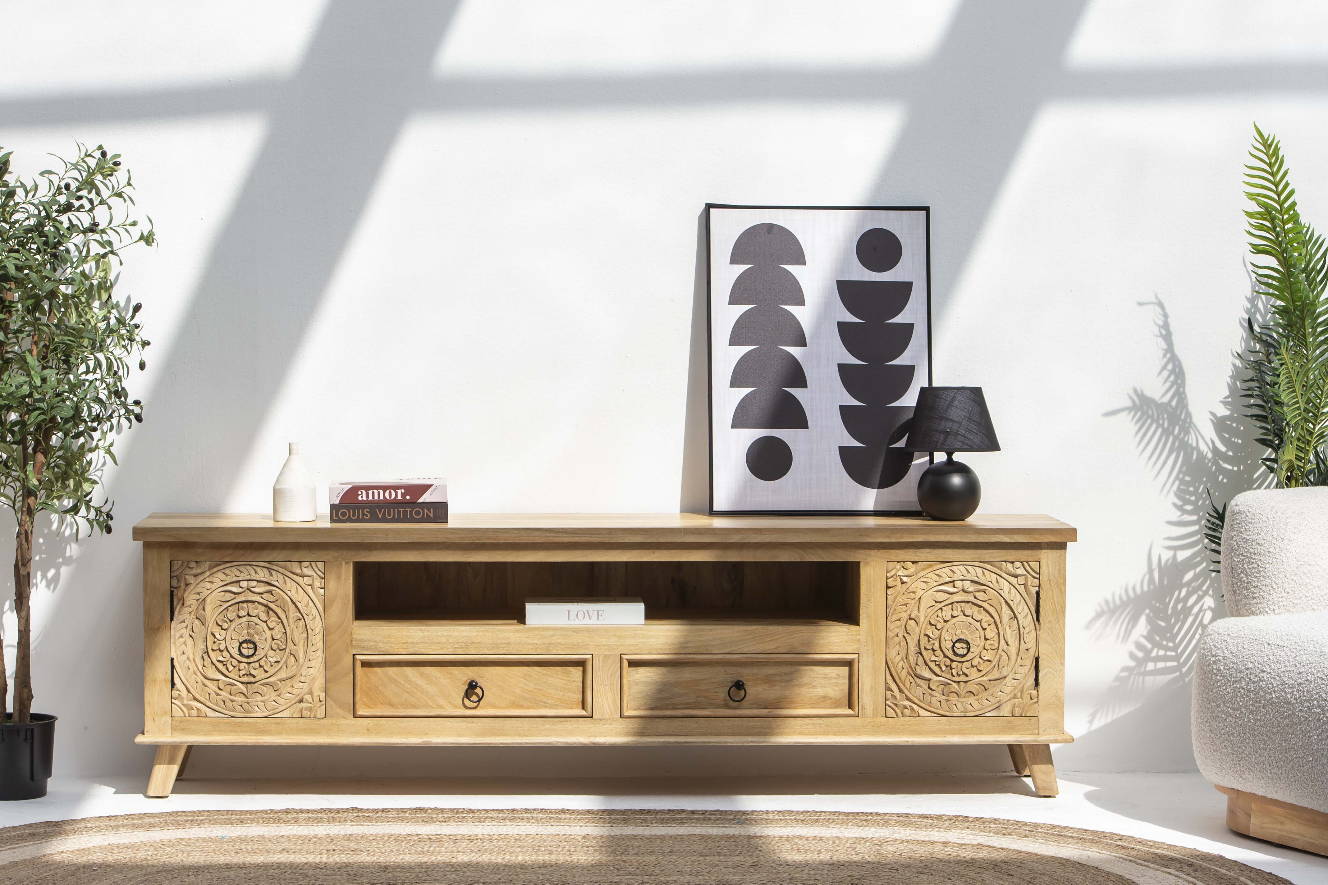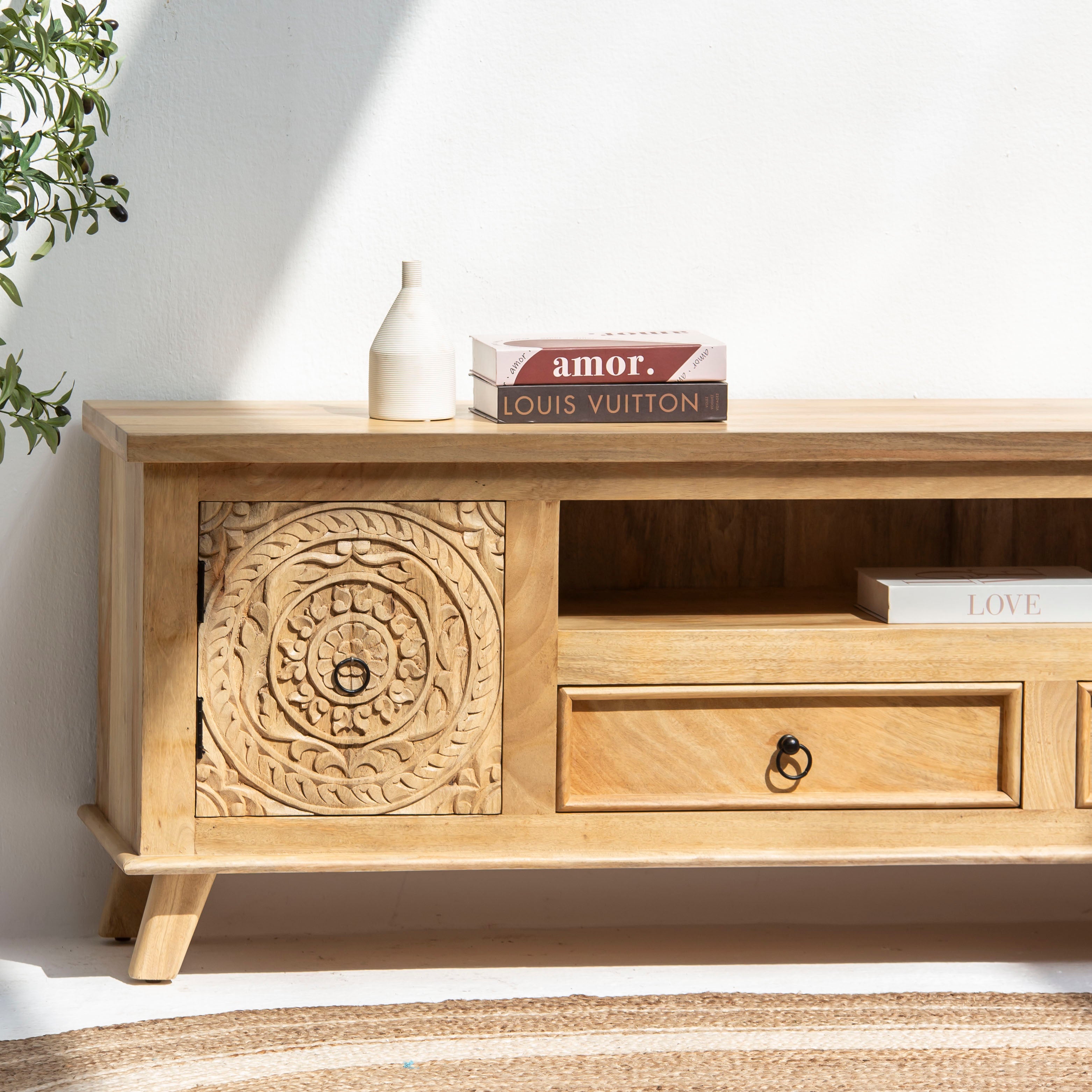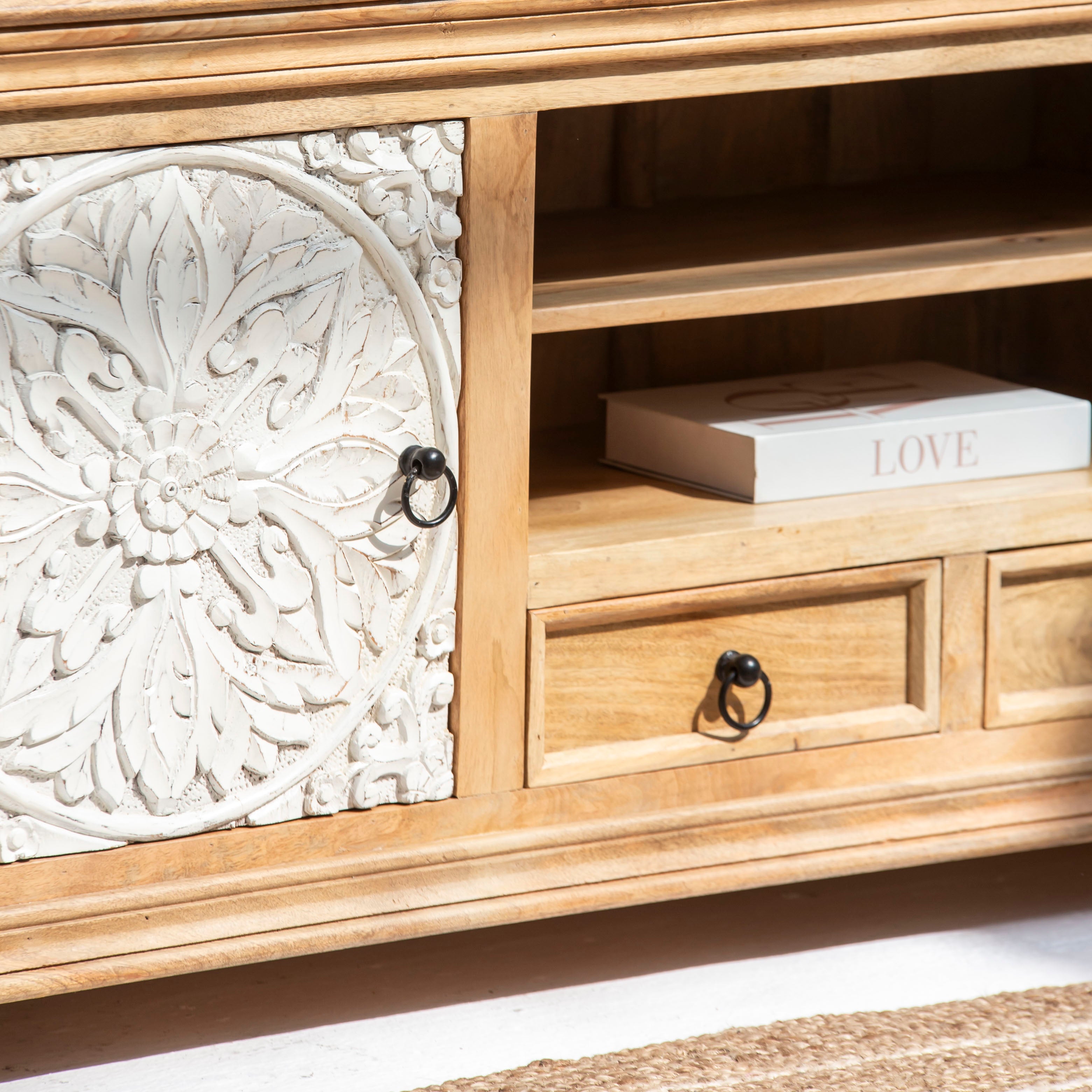 Crafted from rich, durable hardwoods like Sheeshm, Mango, or Teak, these media units feature: