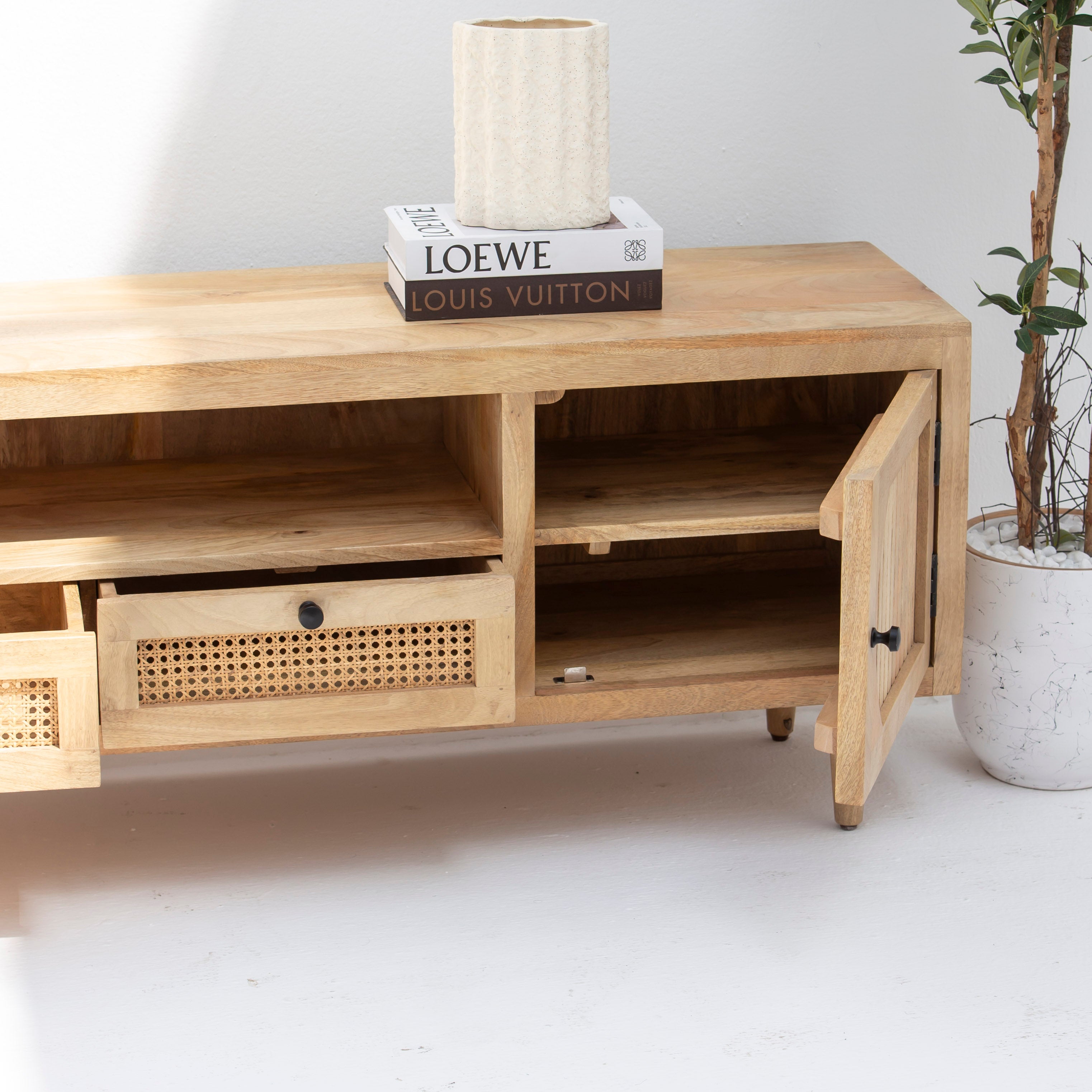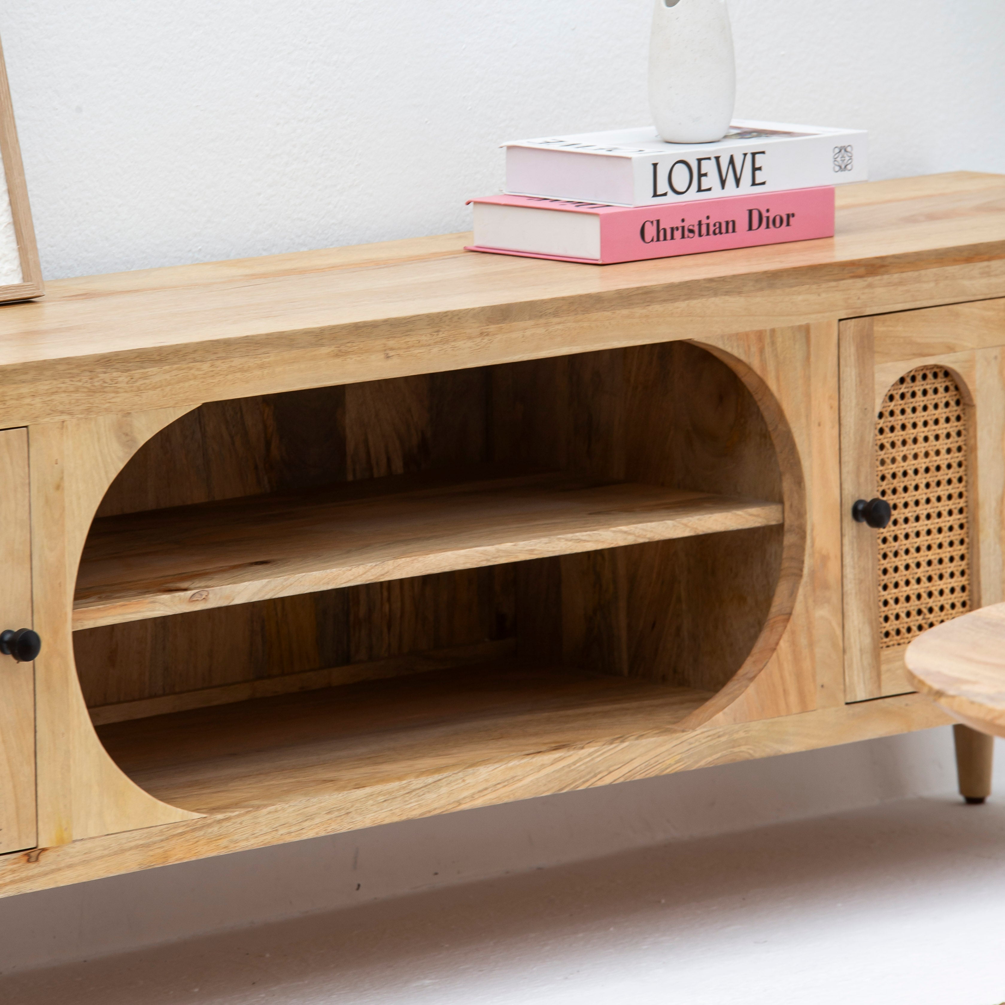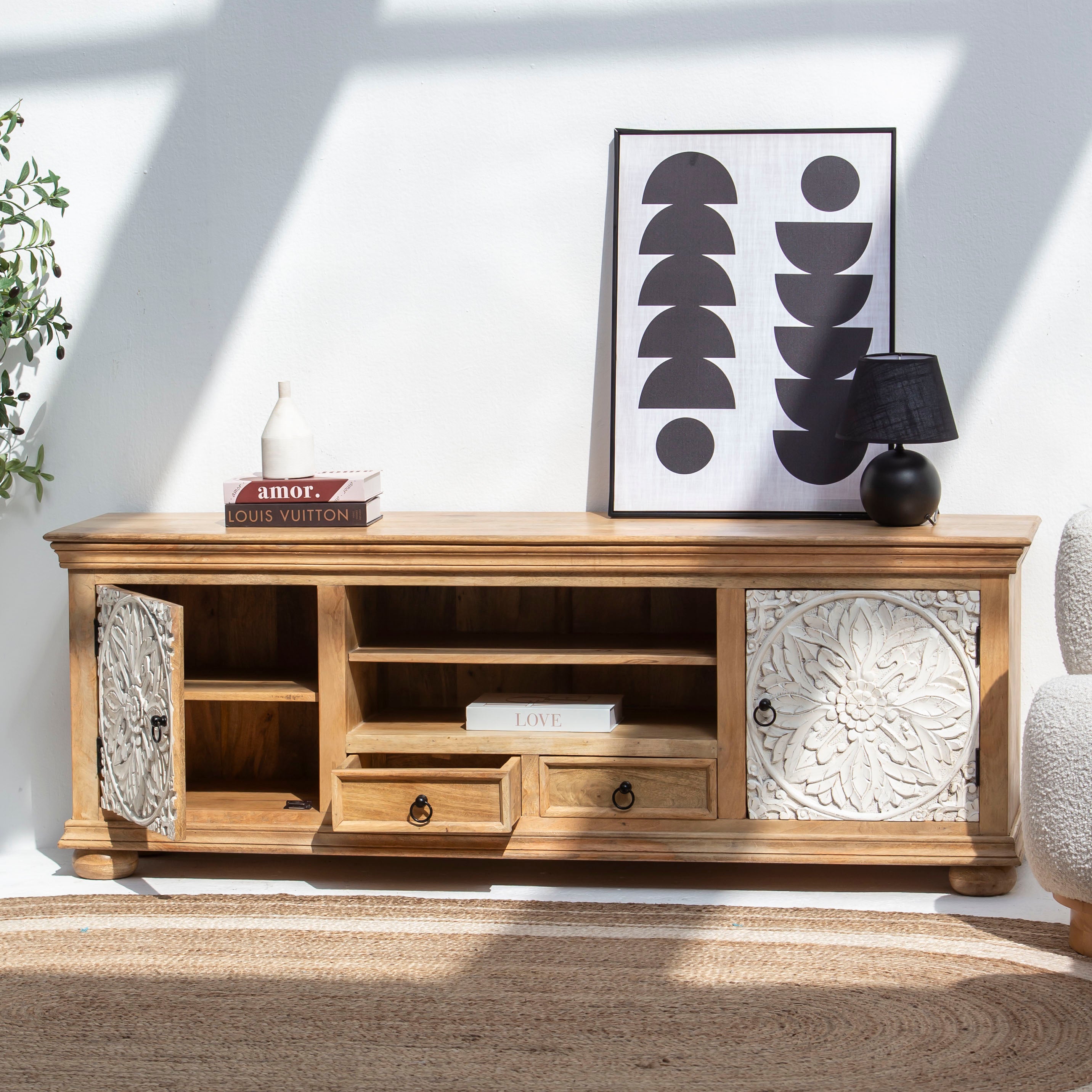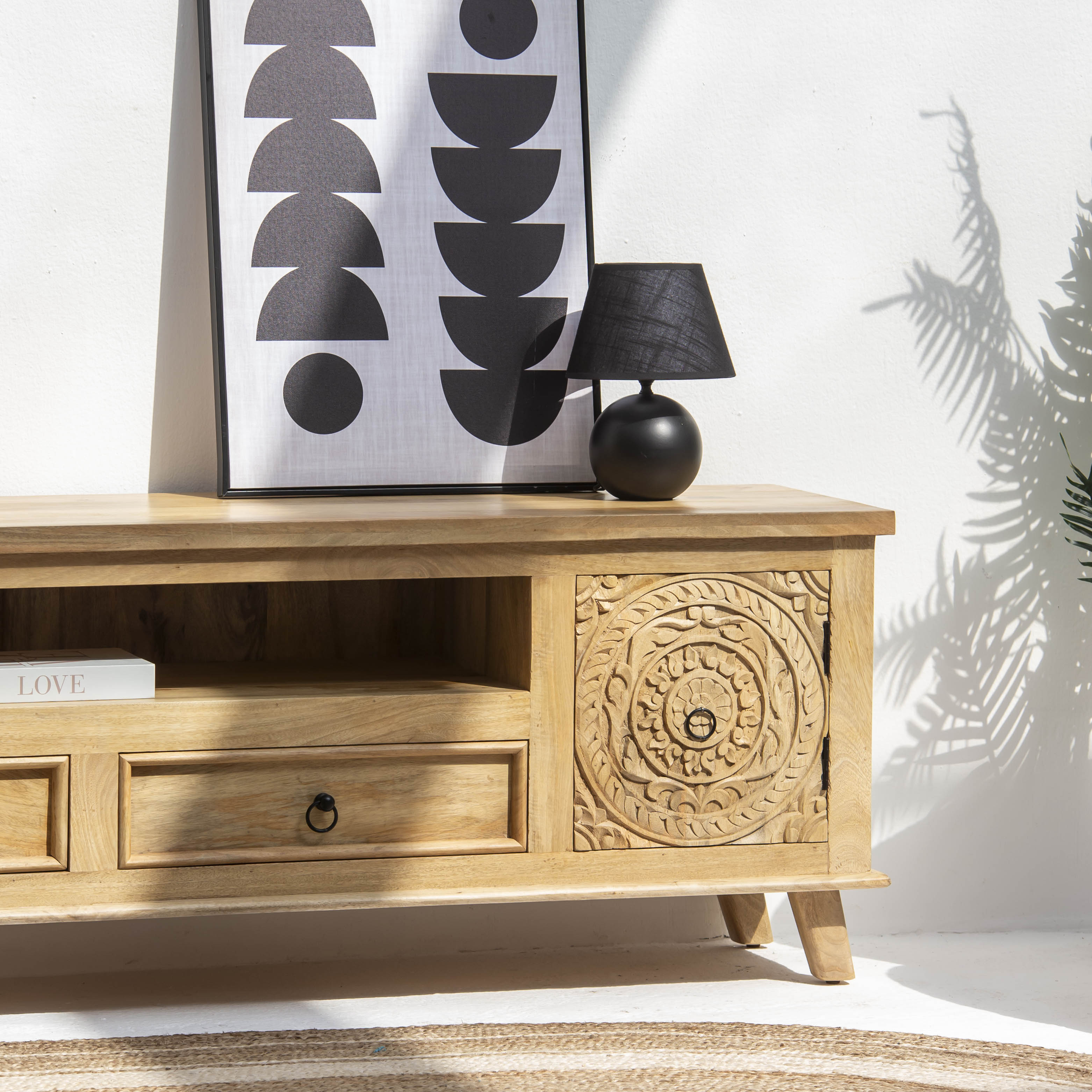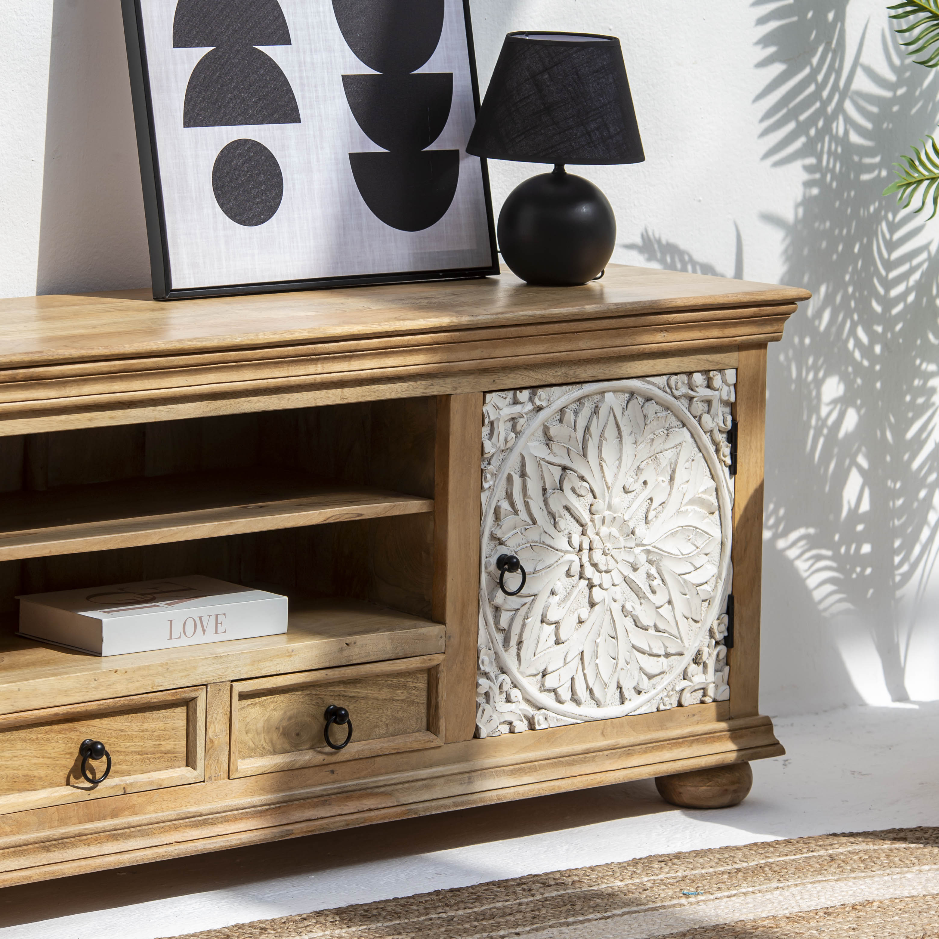 Crafted from rich, durable hardwoods like Sheeshm, Mango, or Teak, these media units feature:
