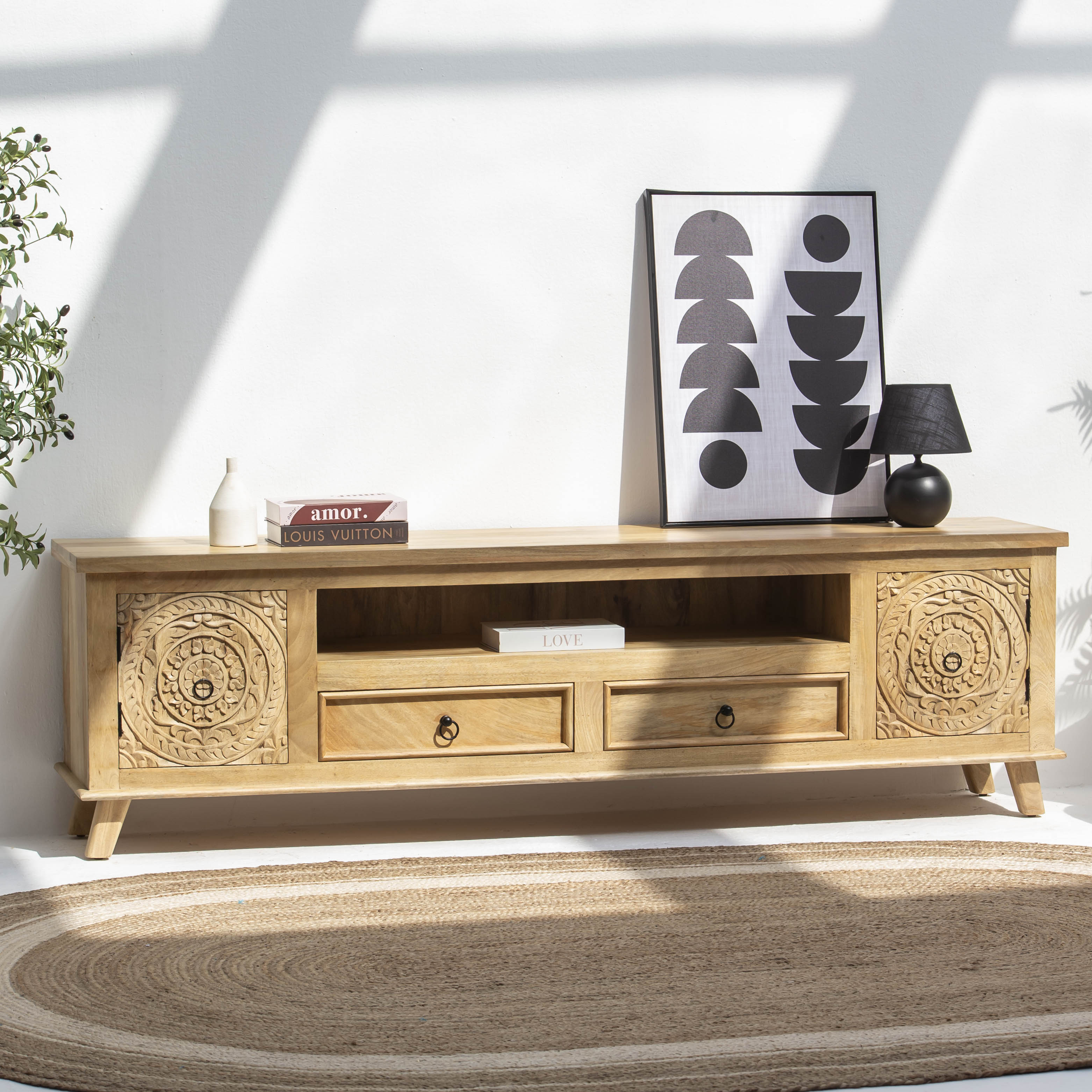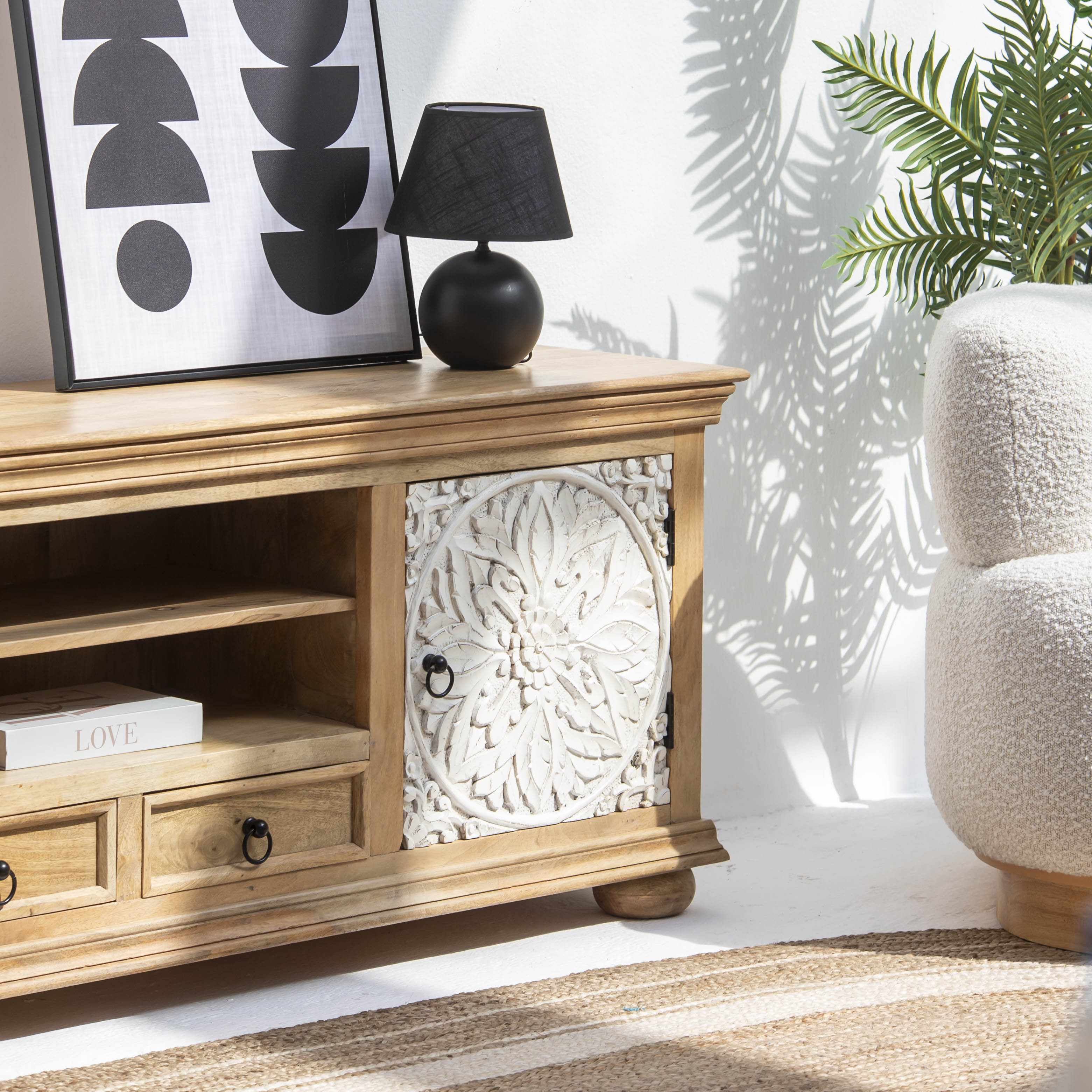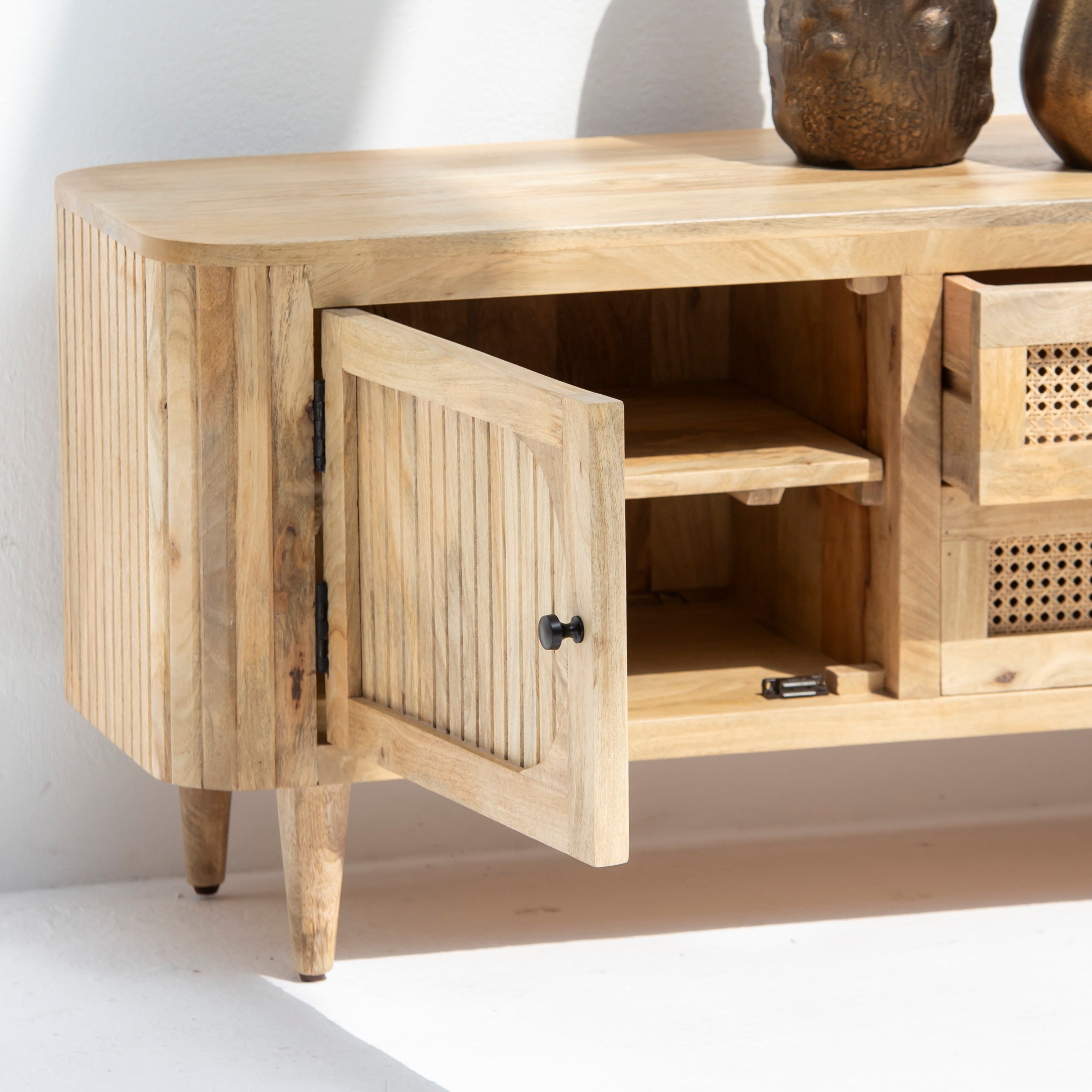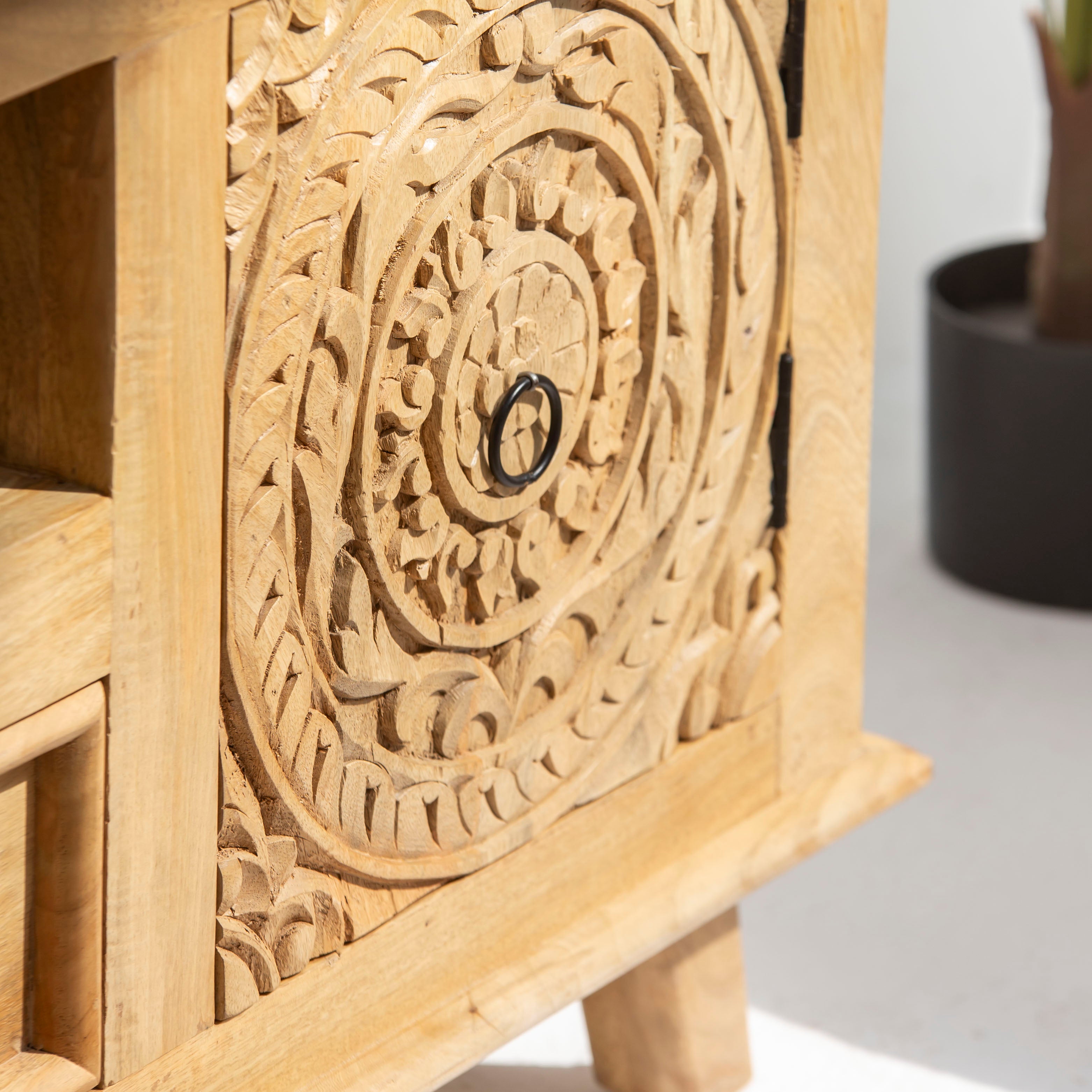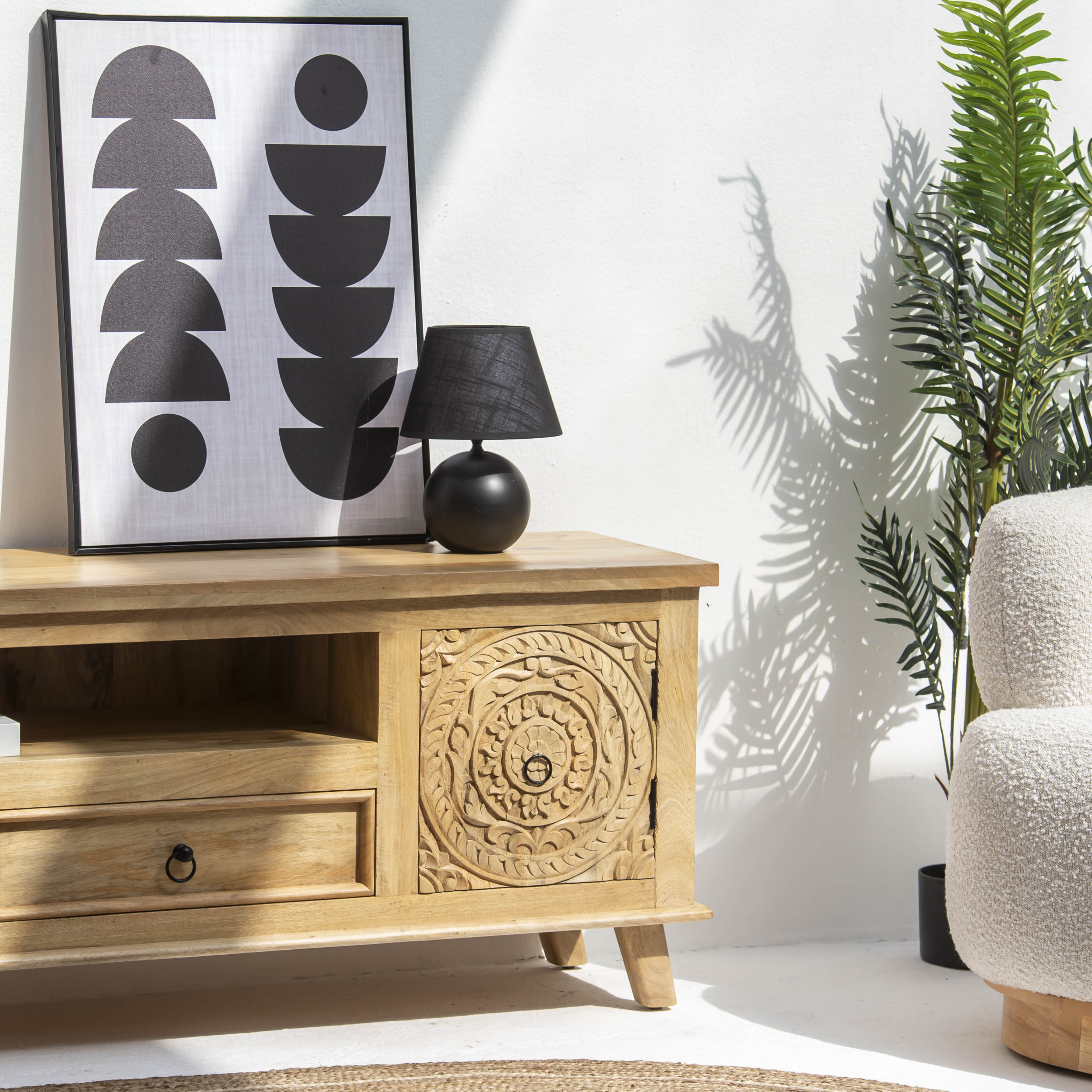 Crafted from rich, durable hardwoods like Sheeshm, Mango, or Teak, these media units feature: