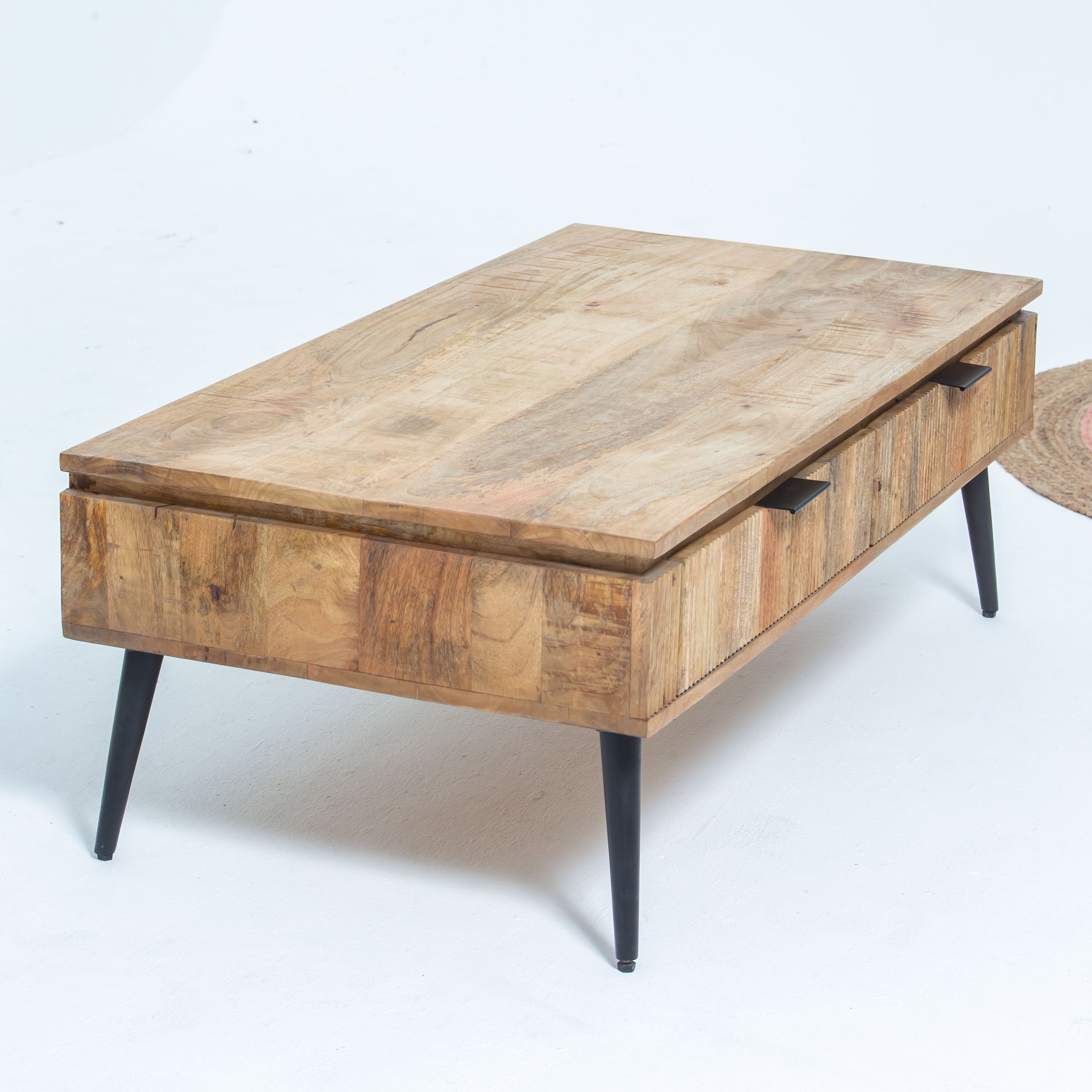 Discover the timeless elegance of our Fluteline Wooden Two Drawer Coffee Table, a handcrafted masterpiece from India. Constructed from premium mango solid wood, this table combines durability with natural beauty, showcasing the wood's authentic grain and warm tones. The two spacious drawers provide practical storage for remote controls, magazines, and living room essentials, while the sturdy frame ensures lasting stability. Perfect for those who appreciate artisanal craftsmanship and sustainable materials, this coffee table brings both functionality and character to any interior space.