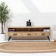 The MANGOEDGE Four Drawer TV Stand combines authentic craftsmanship with functional design. Constructed from solid mango wood in its natural finish, this Indian-made piece showcases the wood's warm, rich grain patterns. Four spacious drawers provide ample storage for media equipment, remotes, and accessories, while the sturdy frame supports most television sizes. The natural wood construction ensures durability and develops character over time. Perfect for those seeking sustainable, artisanal furniture that balances style with practical storage solutions.