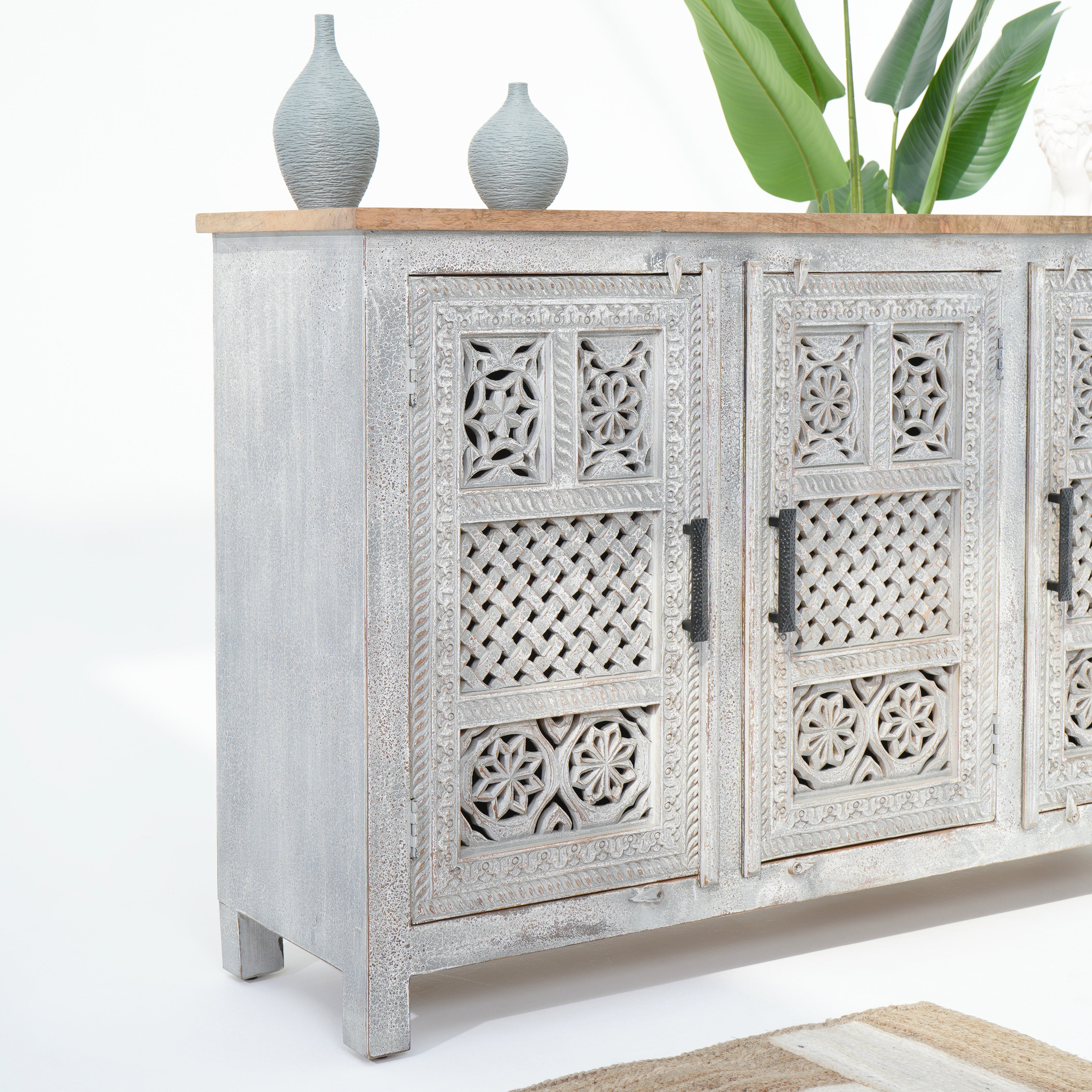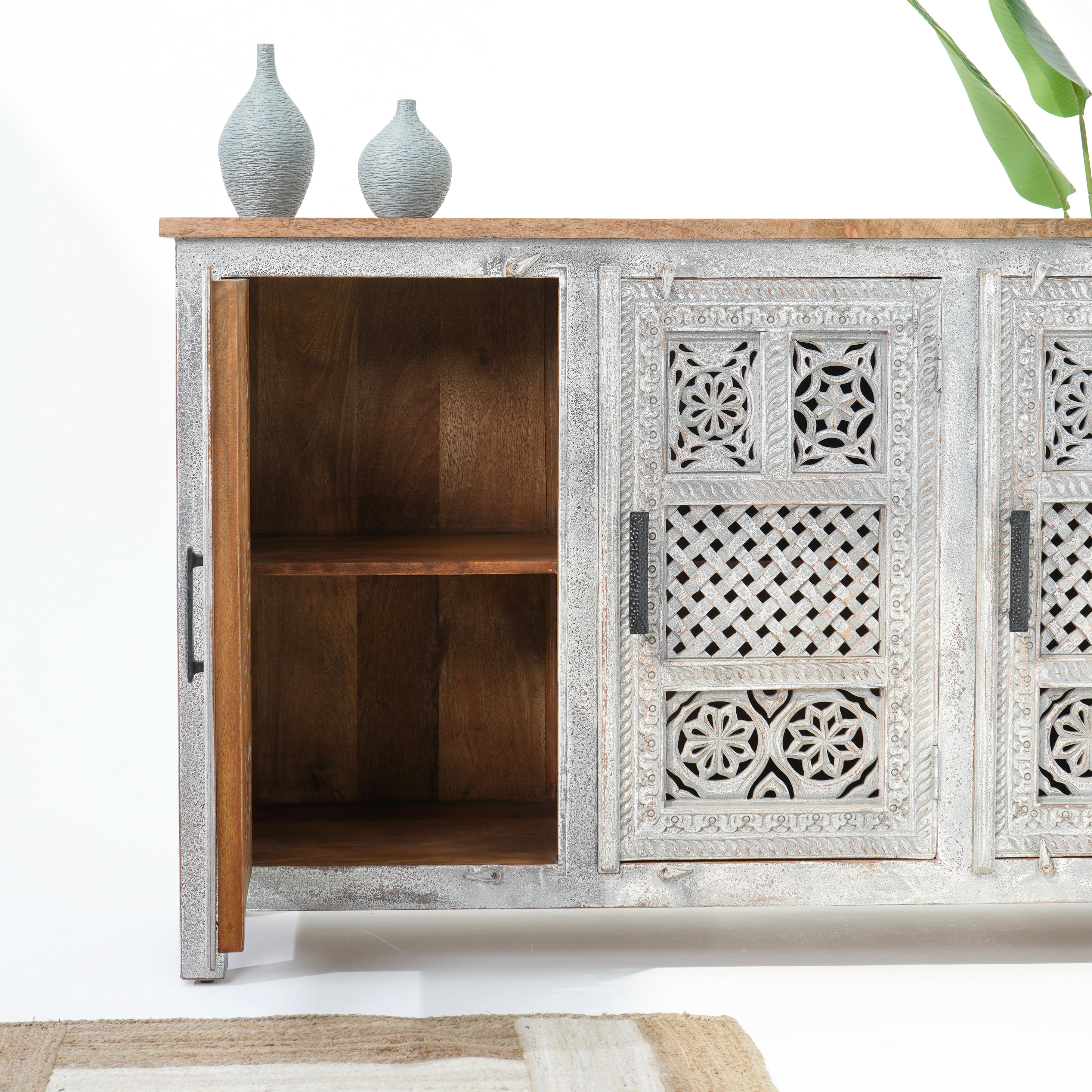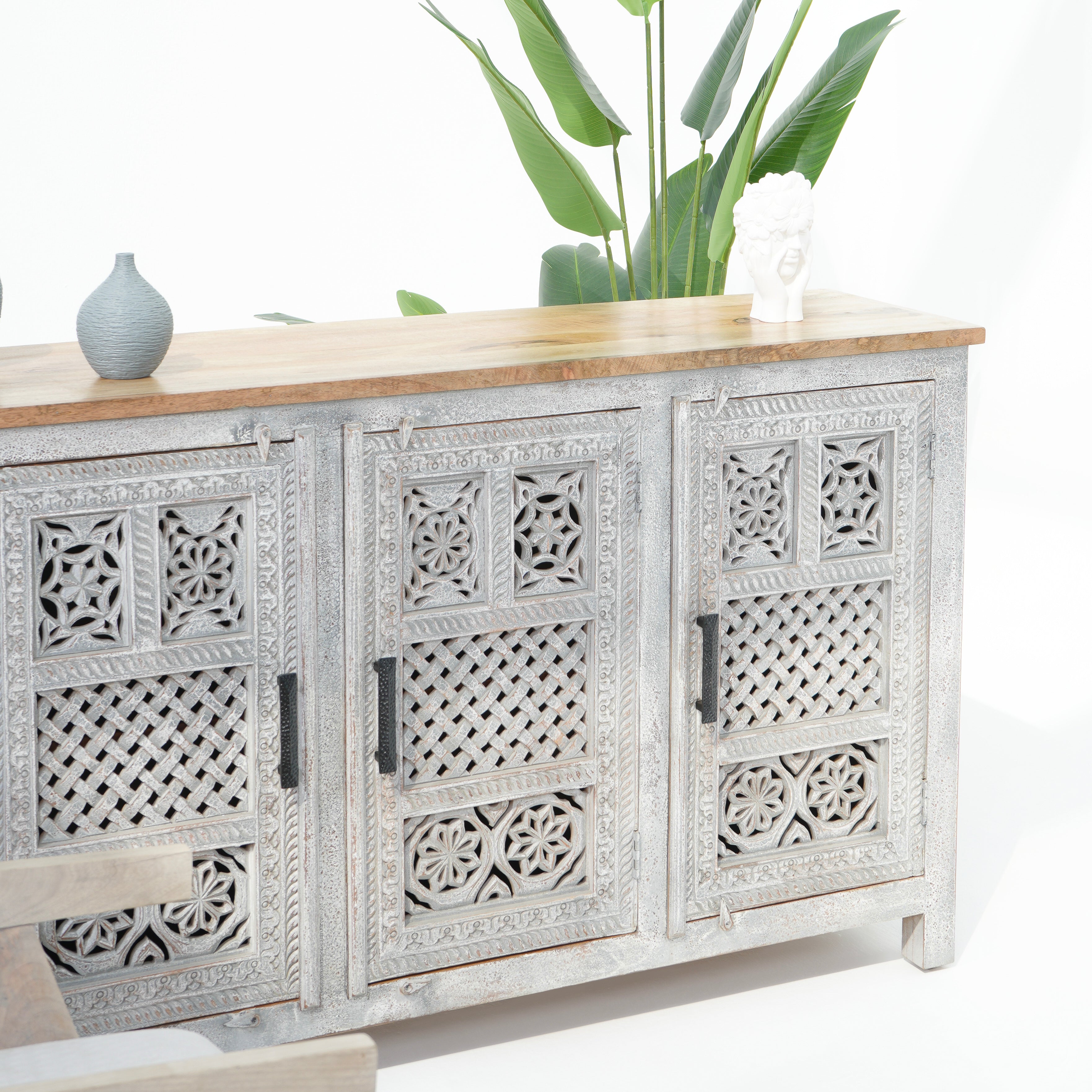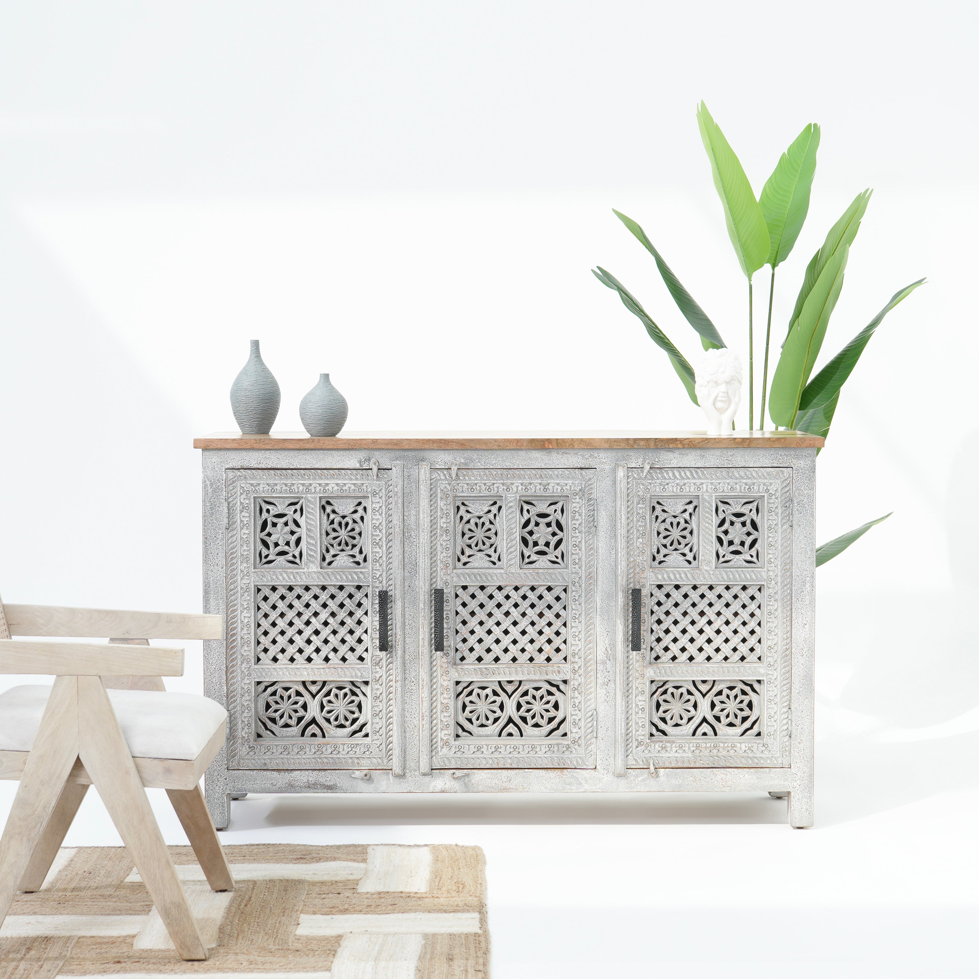 The Harmony Three-Door sideboard offers a perfect blend of style and functionality. With its spacious compartments behind three doors, it provides ample storage to keep your living or dining area organized. Crafted to complement various decor styles, this sideboard supports your need for both practicality and elegance in your home.