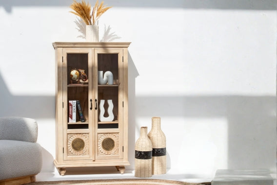 The LUWIN LINING Wooden Bookshelf combines functional design with natural beauty, crafted from premium mango wood sourced from India. This sophisticated storage solution features a lined door that conceals shelves while maintaining an elegant aesthetic. The sturdy construction and warm wood tones make it an ideal choice for organizing books, décor, and collectibles in any room. Perfect for those seeking durable furniture that balances style with practicality.